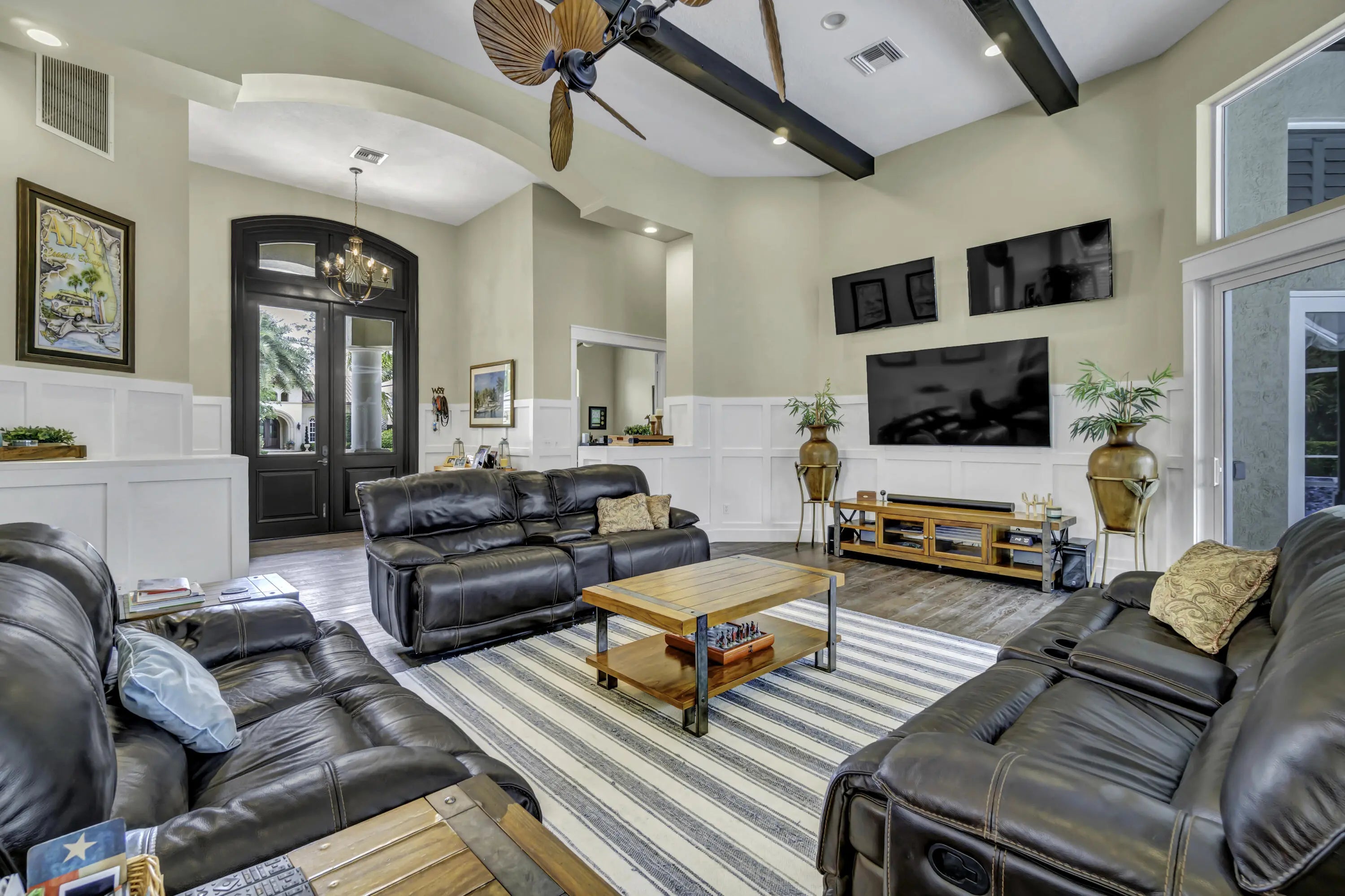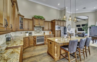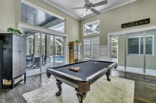 Over 5600 sq ft of perfection with a 5 car garage!! Newly renovated (2025) home offers 4 bedrooms, 5 bathrooms, PLUS office, GUEST HOUSE (Mother in Law suite) with kitchenette and mini split AC! Beautiful custom wood floors in living areas plus tongue and groove wood ceilings in several areas as well as wood beams in the living room. The entire home is protected by hurricane rated impact glass windows and doors, updated and refreshed marble patio/pool with screen enclosure, updated bathrooms, custom closets, gutters, garage space for 5 cars with circular paver drive, batten board throughout living areas, extra fridge in the laundry room and backs to the 4th green of Mayacoo Lakes CC (optional membership). Enjoy the golf course view while lounging in your heated pool and spa. Breakers West offers 2 optional private Golf Clubs both offering golf, tennis and social memberships. 2 manned guard gates, roaming security and roaming first responders. 15 min to PBIA and Downtown WPB. 15 minutes to Wellington's Equestrian Facility. 20 min to Palm Beach island and world class beaches. 5 min to Kings Academy, 15 min to Oxbridge Academy, 20 min to Rosarian Academy & Palm Beach Day Academy.