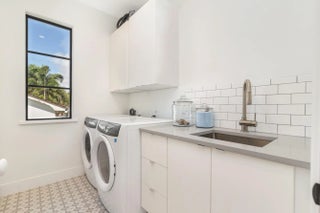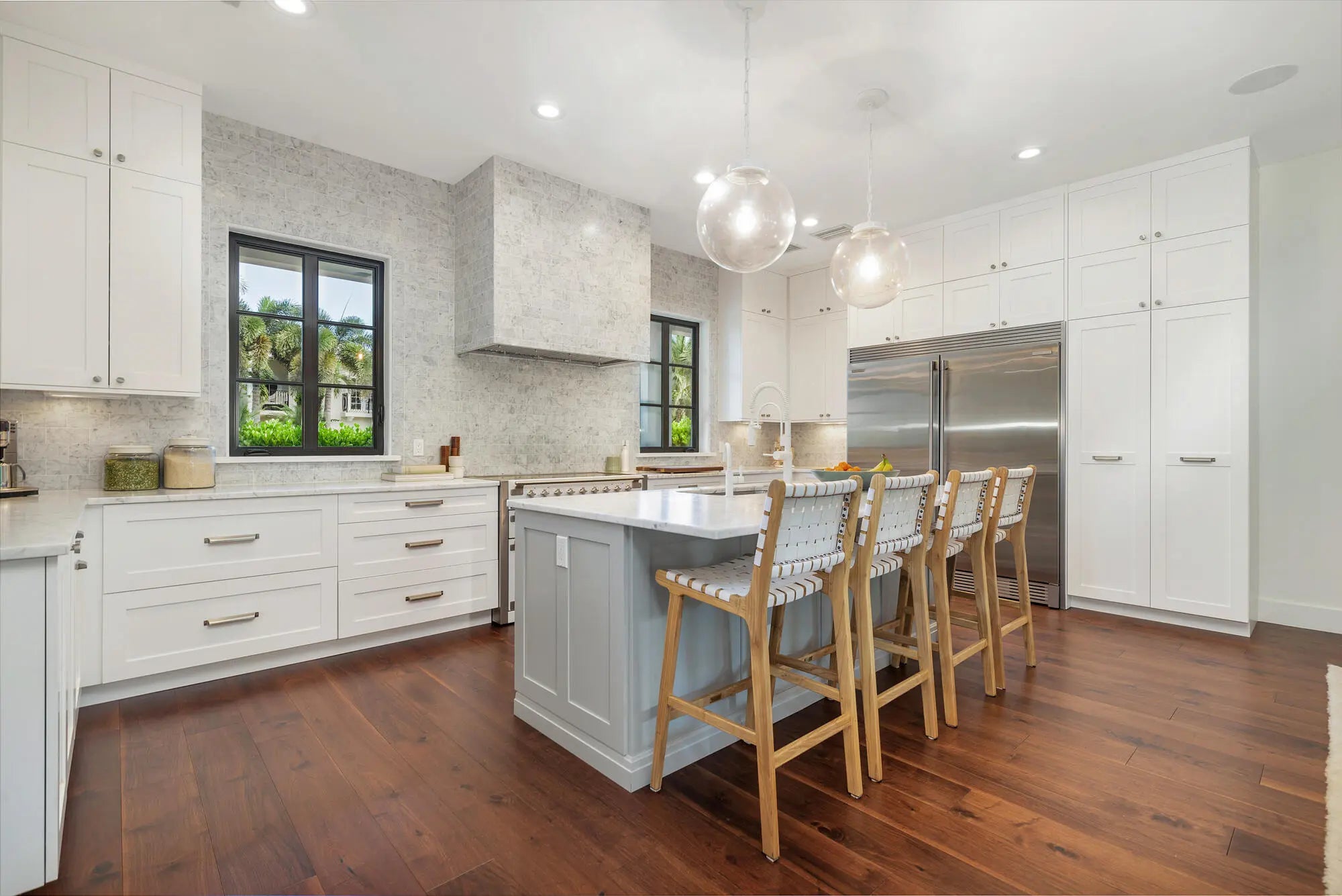 Located in the heart of SoSo on the Intracoastal block, this beautifully designed 4 bedroom, 3.5 bath home offers nearly 3,000 square feet of luxurious living space. The heart of the home features an open-concept layout where the kitchen, dining, and living areas blend seamlessly. A chef's kitchen with an AGA Elise range, dual dishwashers, and an oversized island opens to the dining area, which includes a custom bar with wine cooler and beverage fridge. The main-floor primary suite offers a dual-sink vanity, Roman tub, separate shower, private water closet, and a generous walk-in closet. Upstairs, you'll find a junior primary suite, two additional bedrooms with a shared Jack and Jill bath, and a convenient laundry room. Outdoors, a covered loggia overlooks the pool surrounded by lush, mature landscaping, a spacious yard, and an outdoor shower, perfect for relaxed Florida living. Ideally located near the Flagler Drive bike path, Worth Avenue shopping, The Blue Door, La Sirena, and the new world-class golf destination, The Park, this home truly combines comfort, style and convenience.