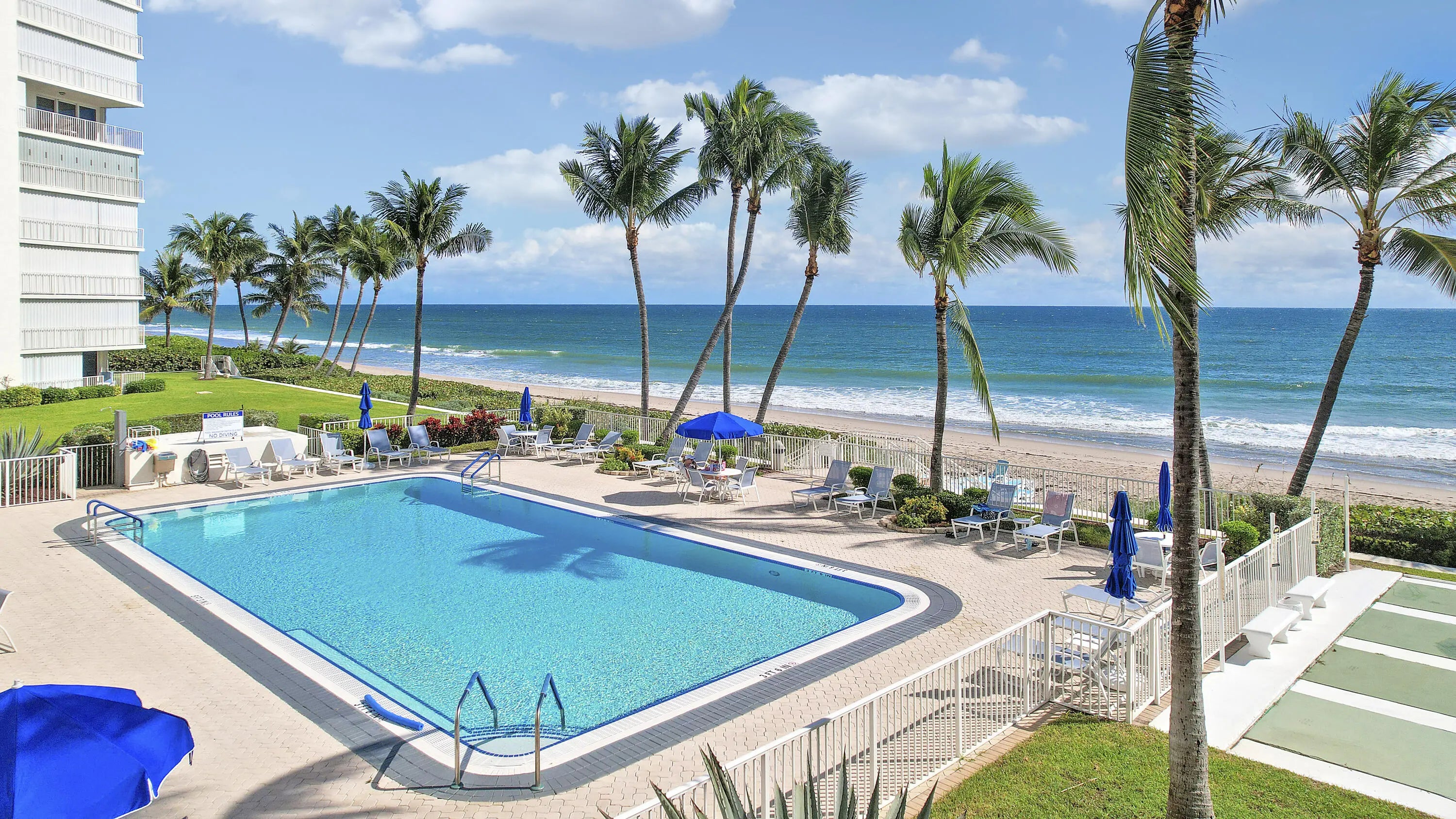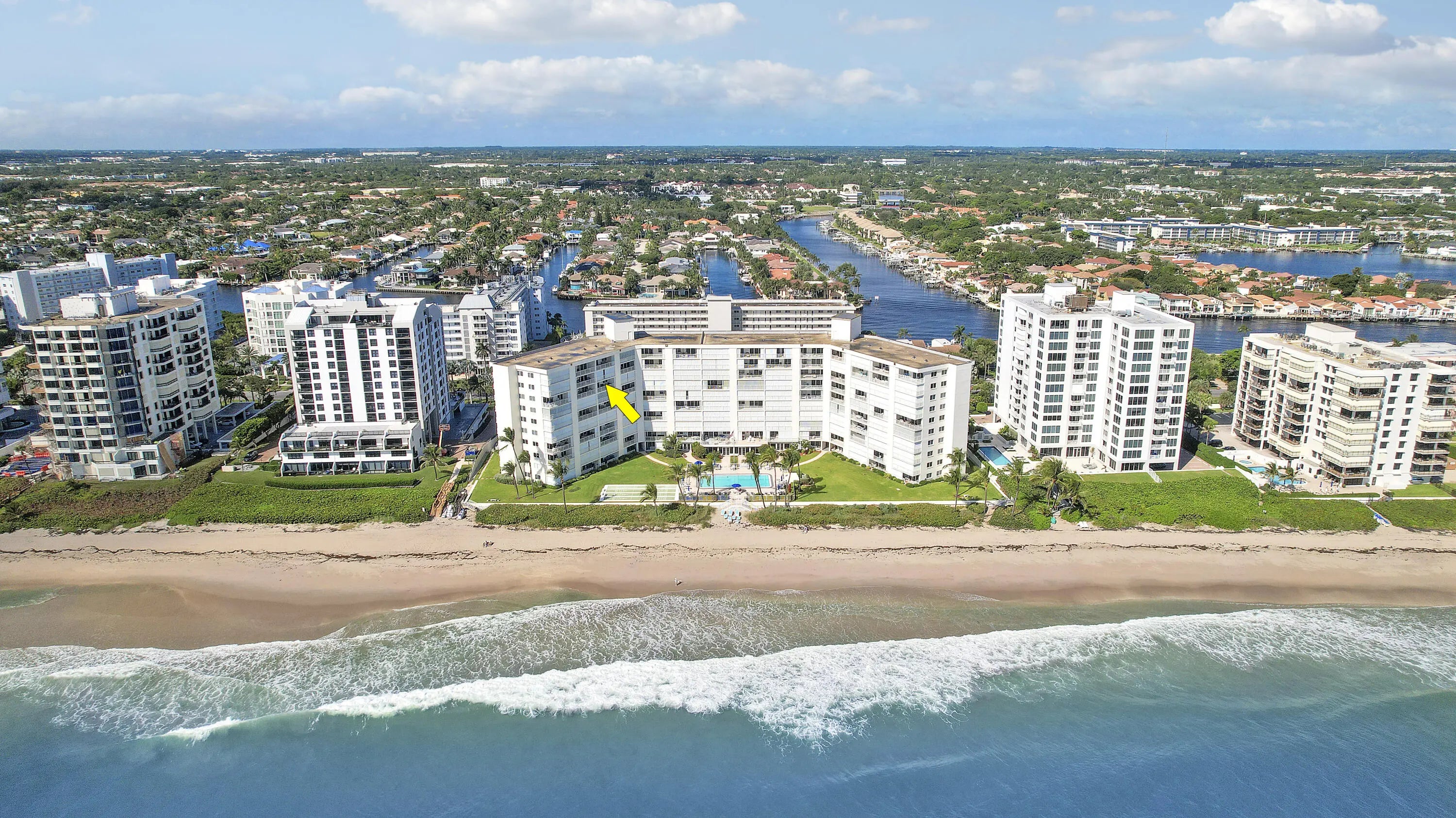 Wake up to the sound of the waves and panoramic ocean vistas from this direct oceanfront condo at Penthouse Towers in Highland Beach. This 8th floor 2-bedroom, 2-bath condo offers an open, light-filled layout designed to capture the beauty of the Atlantic from every angle. The private balcony overlooks endless blue water and sandy shoreline, the perfect spot for morning coffee. Inside, enjoy a split-bedroom floor plan, galley kitchen and move-in-ready interior ideal for seasonal or year-round living. Complete accordion storm protection for peace of mind. PH Towers features an oceanfront pool, fitness equipment, club lounge, and private beach access, No Special Assessments. Located between Delray Beach and Boca Raton on A1A, PH Towers offers the best of South Florida's coastal lifestyle.