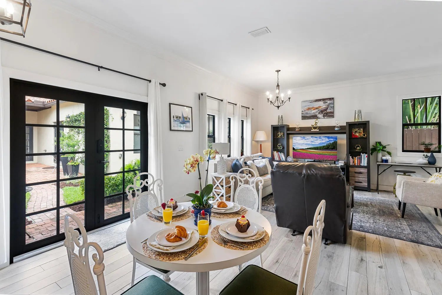Casa Poinsettia, a design led Spanish Revival retreat in Historic Old Northwood. Custom built in 2017 and awarded the Preservation Infill Award for Best New Build/Renovation, this CBS home blends timeless architecture with modern livability. The main house offers three bedrooms and two baths with authentic archways, tall ceilings, and curated interiors. A chef's kitchen with gas appliances, a custom hood, and wine storage opens to the great room for easy entertaining. The private primary suite features a spa inspired bath with designer finishes. A separate one bedroom guesthouse includes a full kitchen and living area. A lush patio, mature landscaping, long driveway, and alley access complete this award winning property near LaMarina, Northwood Village, PBI, and beautiful Palm Beach.