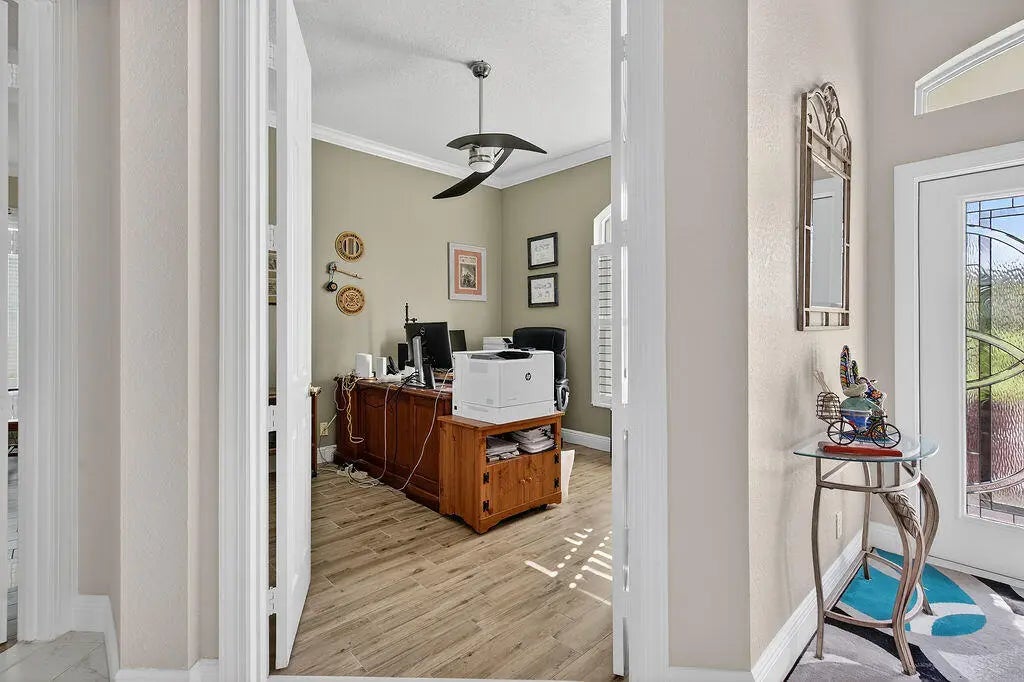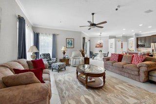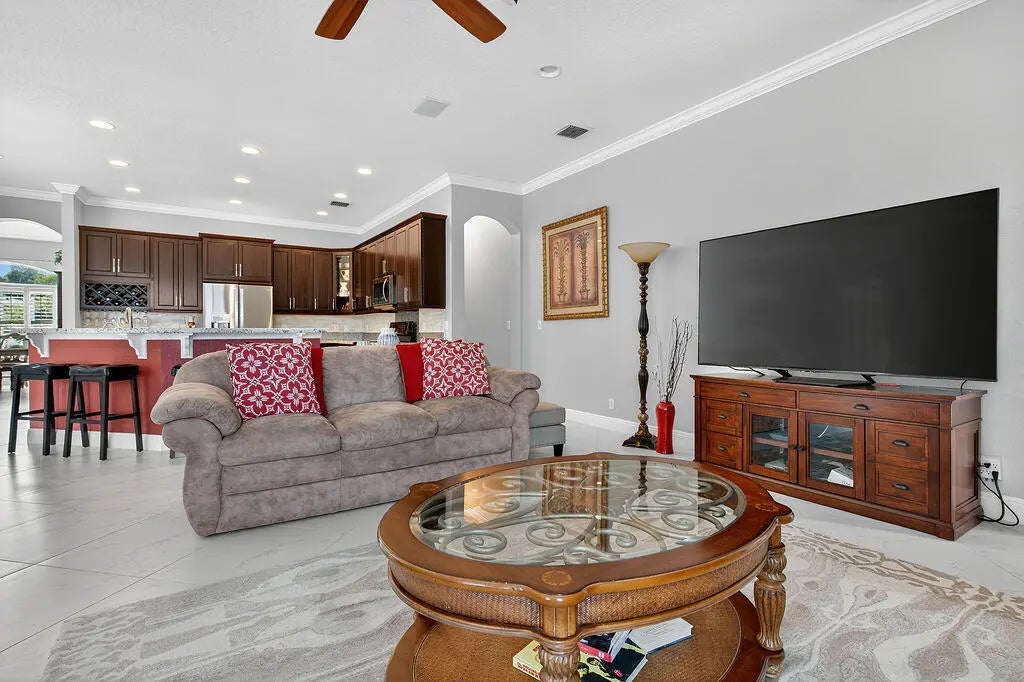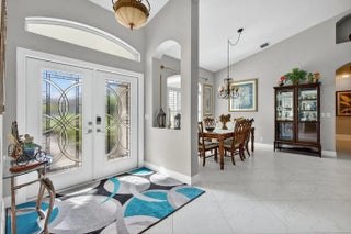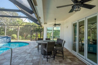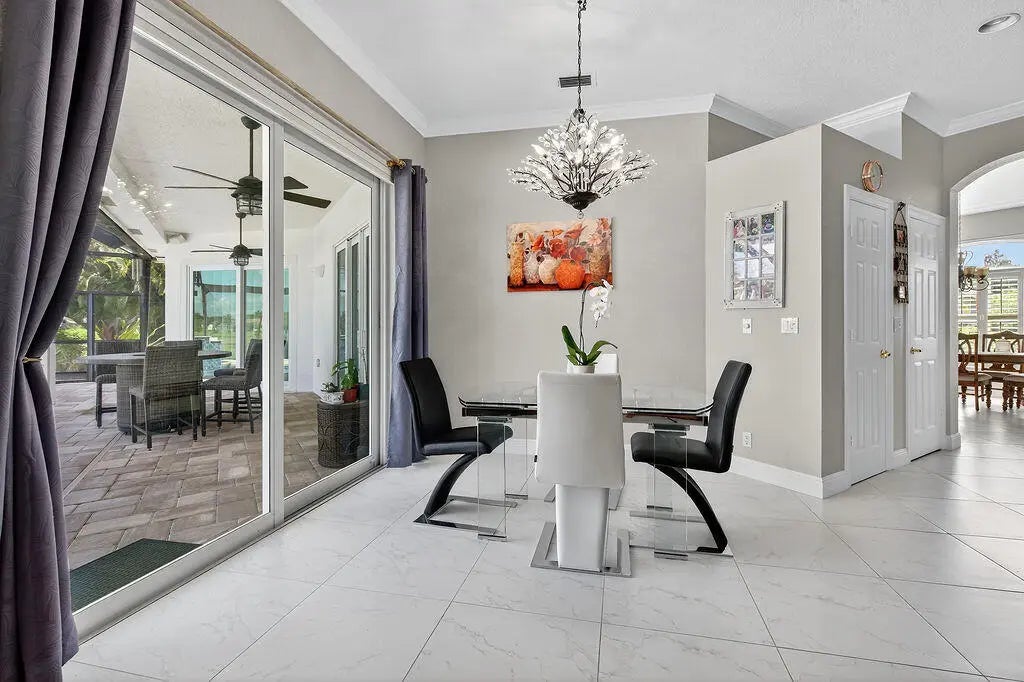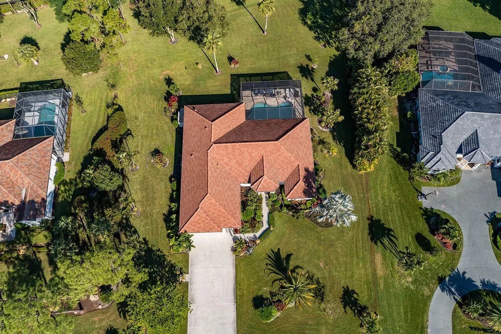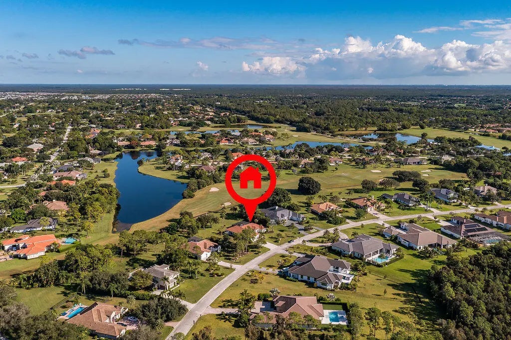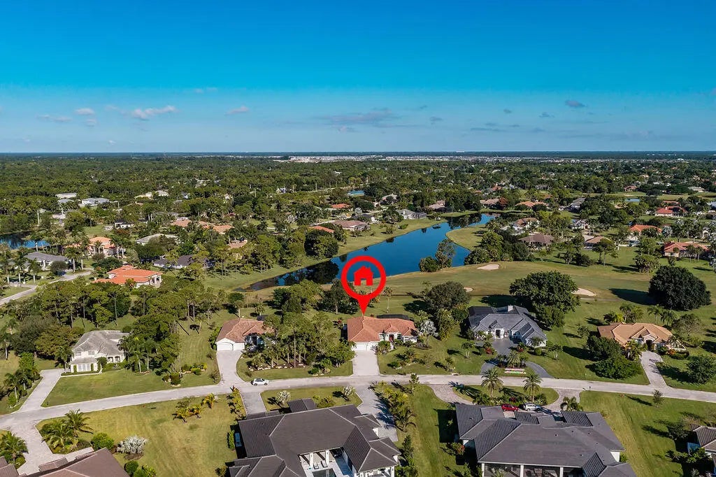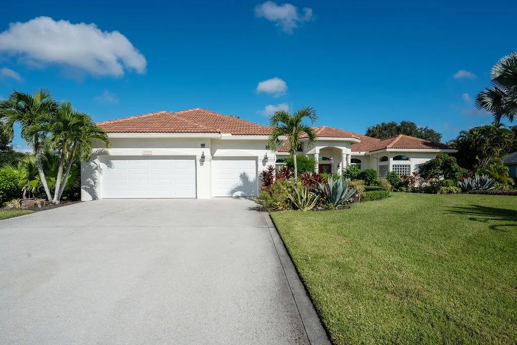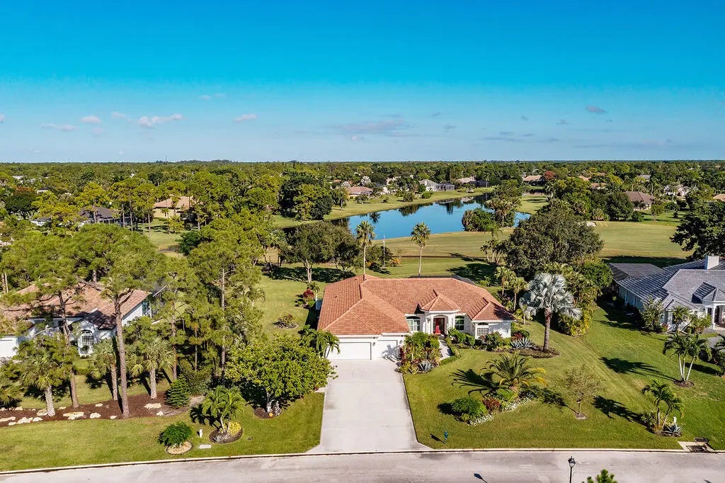 Fabulous move-in ready 5 BR + office, 4.5 BA home with pool, new roof, impact windows complete, Sits on a stunning 1 acre lot in Bayhill Estates. This one story home offers 3,600 SF of living space with a split floor-plan and magnificent views of the18th hole of the PGA Estate Course and a sparkling lake. Generously sized rooms and 24'' porcelain tile give the home a modern feel. The updated kitchen opens to the family room and breakfast area, all overlooking the tranquil lanai and golf course. Large primary suite with 2 walk-in closets and luxurious renovated bathroom. All other bathrooms have been renovated as well. The outdoor living is just as stunning as the interior with a pool with lanai that was replaced in 2015, lush landscaping and lighting and plenty of yard space beyond.