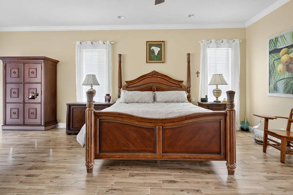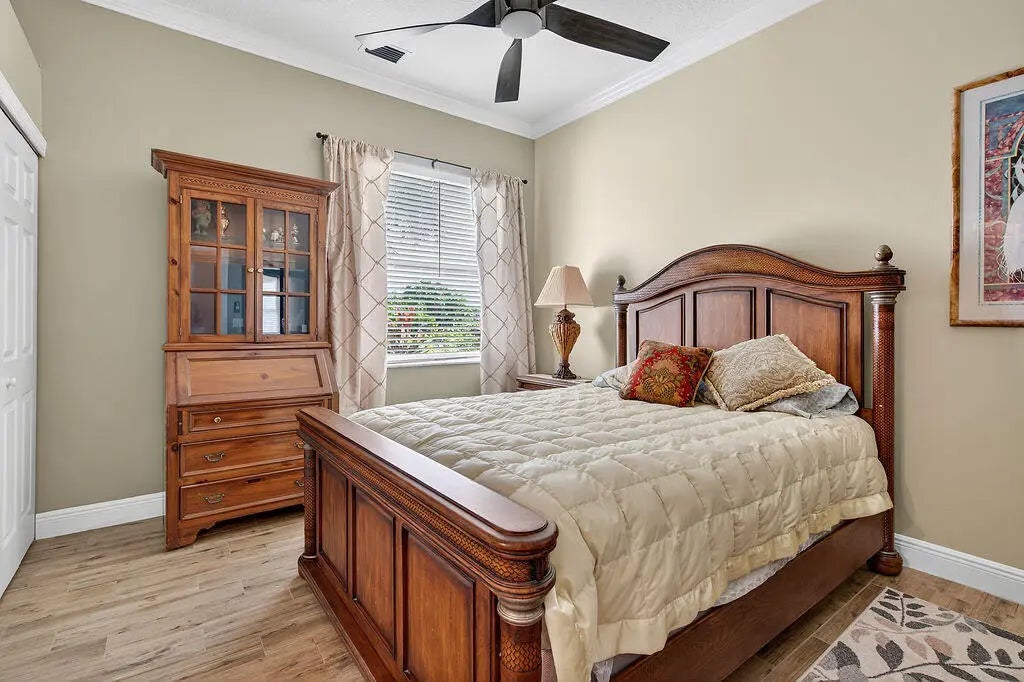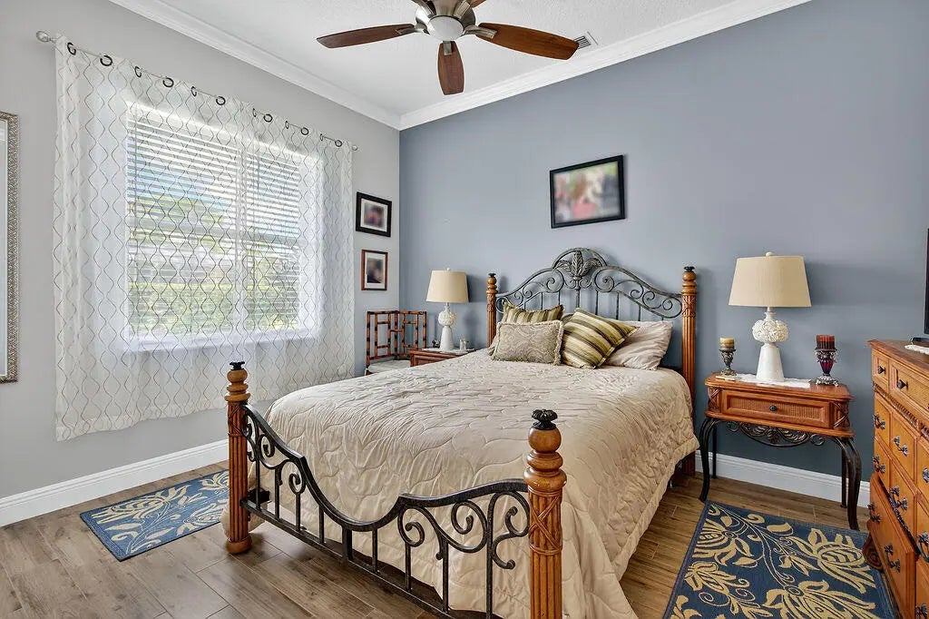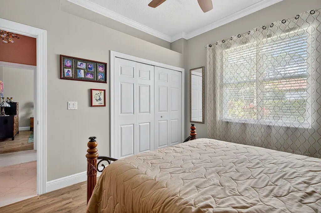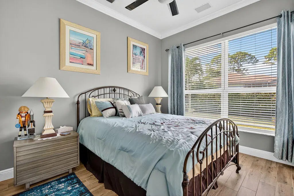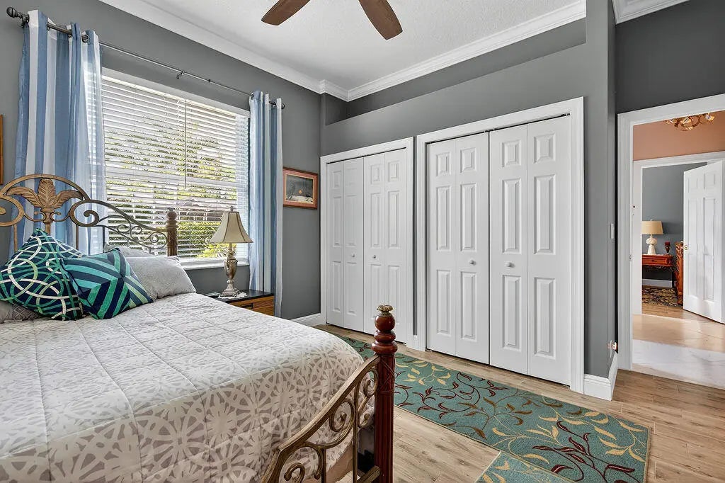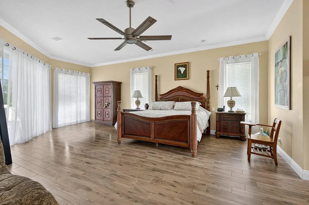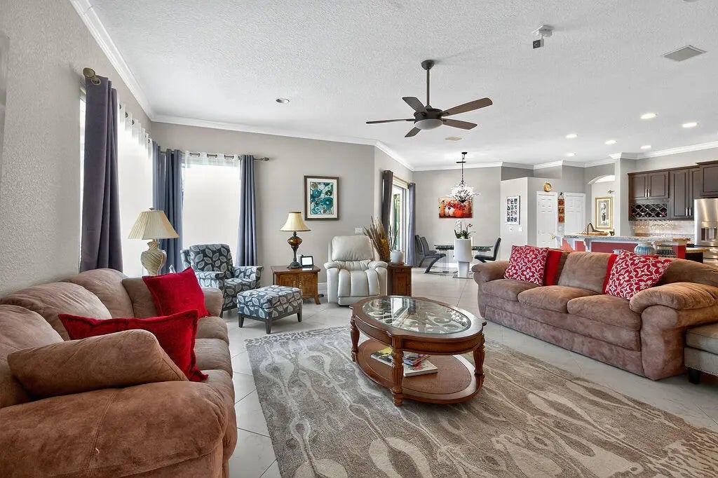 Fabulous move-in ready 5 BR + office, 4.5 BA home with pool, new roof, impact windows complete, Sits on a stunning 1 acre lot in Bayhill Estates. This one story home offers 3,600 SF of living space with a split floor-plan and magnificent views of the18th hole of the PGA Estate Course and a sparkling lake. Generously sized rooms and 24'' porcelain tile give the home a modern feel. The updated kitchen opens to the family room and breakfast area, all overlooking the tranquil lanai and golf course. Large primary suite with 2 walk-in closets and luxurious renovated bathroom. All other bathrooms have been renovated as well. The outdoor living is just as stunning as the interior with a pool with lanai that was replaced in 2015, lush landscaping and lighting and plenty of yard space beyond.
