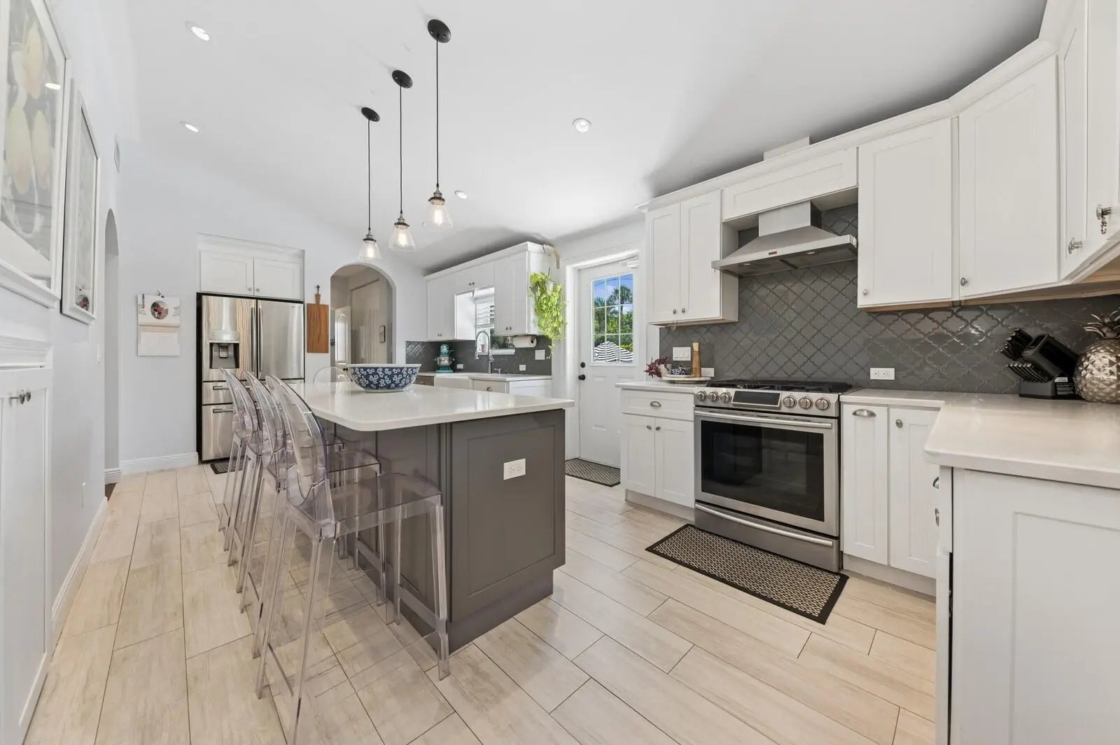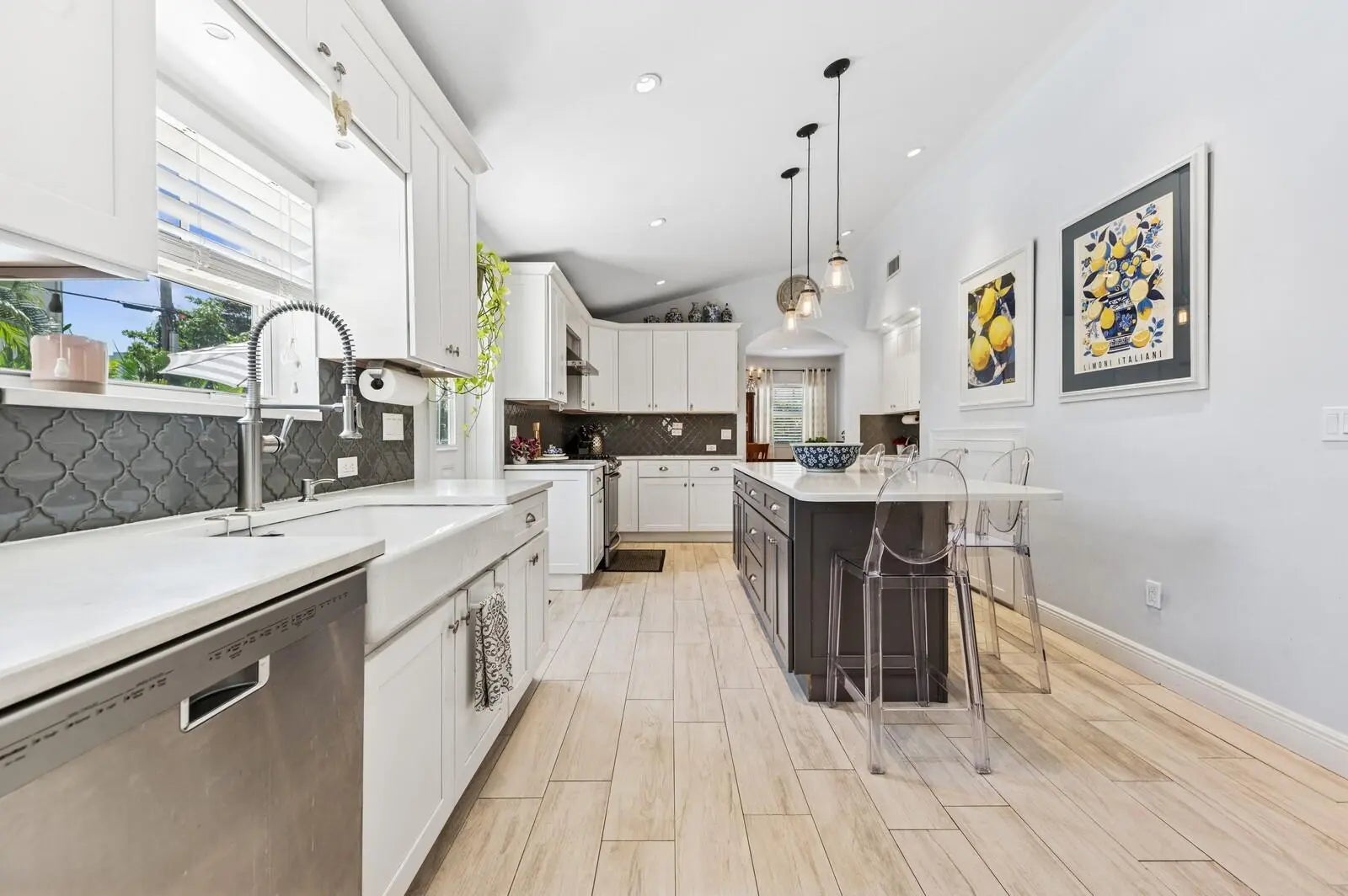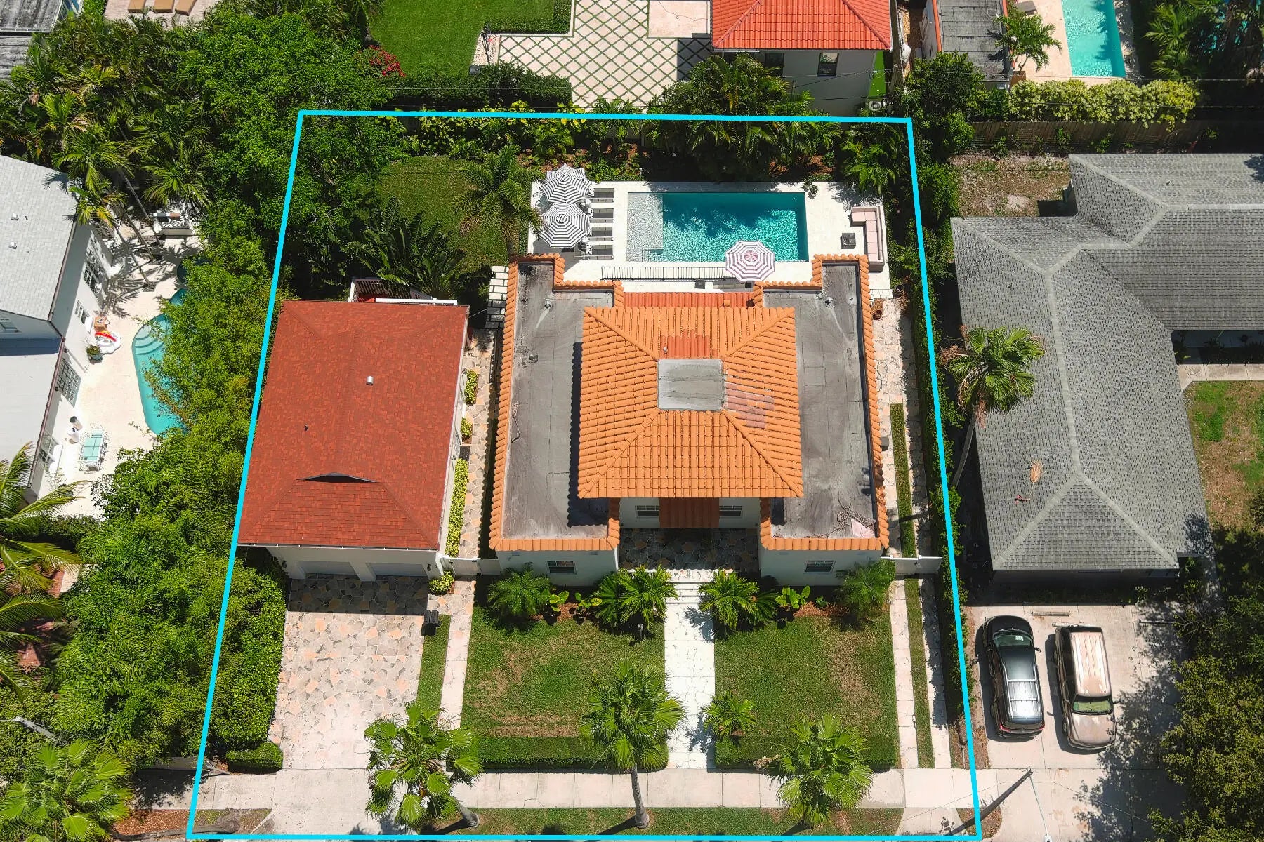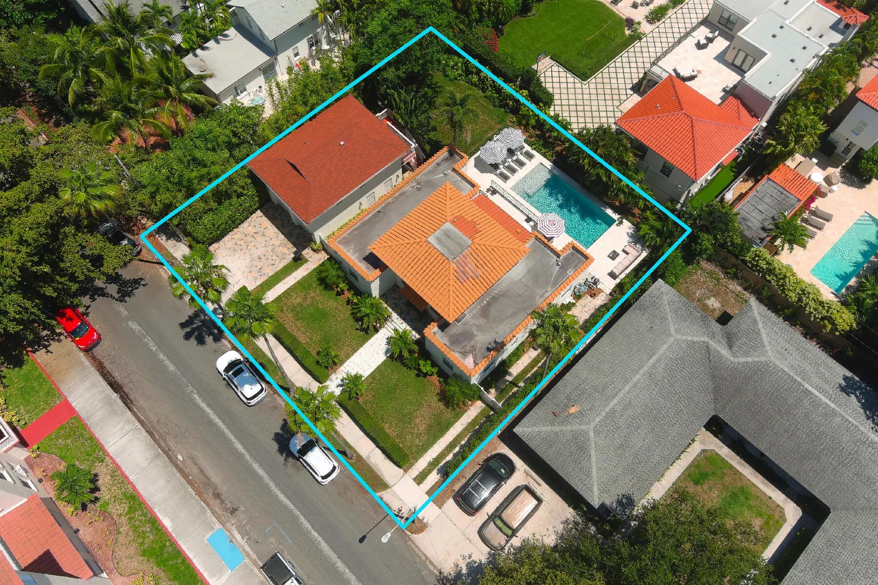 Newly Priced! This Unique Opportunity in Desirable El Cid, has more Boxes Checked, than Not! Its's on 3 Lots, giving it 100 feet of Frontage or a Total of 10,000 Sq. Ft., It's Zoned MF32 (city)/MULTI-FAMILY RESIDENTIAL (HIGH DENSITY) DISTRICT, It has a Two Bedroom, 1 Bath, Garage Apartment that is currently renting for $2,500.00 monthly Plus Utilities & The 4 Bedroom & 3.5 Baths Residence & the Apartment/Guest House have been Completely Remodeled, Reimagined & Updated with the Finest Materials & Appointments! (The Windows in the House & the Apt. are Hurricane Impact! (Except the 2nd. Floor Front Windows in the House, due to Historic District Regs) & the Doors are Hurricane Impact too! These Features & Benefits make this El CID Marvel a Once-In-A-Lifetime Opportunity! Besides the Main Residence & Garage Apartment, there is also a Spectacular 30 Foot Designer Salt Water Swimming Pool with a Decorative Sun Deck in the Pool & an Umbrella Holder, A Large Patio Surrounding the Pool, a Raised Terrace with a Tumble Marble Floor & a Decorative Wrought Iron Fence & Gate off the Kitchen for Entertaining! This is Literally a Compound for a Large Family, with Diverse Needs or for a Buyer who is looking for a property, that offers Multiple Uses! It's in a Prime 1st Block Location, as its between Dixie Highway & South Olive Avenue! The Front Entry is from a Large Stone Porch with a Covered Entrance leading to the Gracious Living Room with Hardwood Floors, A Wet Bar with a Quartz CounterTop, a Hammered Copper Sink, a Wine Cooler & a Stunning Chandelier! The Extra Large, Totally Undated & Reimagined Kitchen is over 20 feet Long with a White Washed Ceramic Faux Wood Floor; the Hub for Indoor & Outdoor Entertaining! It has a Magnificent Island, with 3 Pendant Lamps, that is Bathed in Quartz as are the CounterTops with Decorative Ceramic Tile Backsplashes! There are Newer Samsung Appliances including a 4 Door French Door Refrigerator, a 5 Burner Gas Range with a Custom Hood & a Dishwasher! Also, there is A Porcelain Farmer's Sink, Custom Cabinetry with Pullout Drawers, two Huge Pantries Plus "Le pièce de résistance", a Coffee Bar with another Quartz CounterTop, a Decorative Ceramic Tile Backsplash & an Under the Counter Mounted Stainless Steel Sink; there is also a Door to the Terrace & the Swimming Pool Complex! Adjacent to this Impressive Gourmet's Delight is the Entertainment Sized Formal Dining Room with the Same Floors, Plenty of Windows, a Stunning Chandelier & a Banquet Size China/Linen Closet! (the Wall Scones are Excluded) In addition, there is a Service Hallway, with same Floor, that consists of a Appliance Niche, a Double Door Supply Pantry, a Guest Powder Room with a Pedestal Sink, a Decorative Tile Wall & a Designer Mirror! The Laundry Room with A Newer Gas GE Washer & Dryer (on a Pedestal) & a Laundry Prep Area with Extra Cabinets, A Quartz CounterTop with an Under the Counter Mounted Stainless Steel Sink, a Built-in Ironing Board with Another Convenience Door to the Sideyard, leading to the Free Standing 2 Car Garage! There are Two Separate Sleeping Spaces, both with the Same Hardwood Floors as the Living Room! The Master Bedroom Suite, is Spacious, with a Giant Walk-in Closet & a Fabulous, Newly Created Master Bath with a Marble Floor, an Extra Long Vanity with a Quartz CounterTop, Custom Cabinetry, Linen Storage, a Make-up Area, a Rectangular Sink with a Designer Faucet, 2 Mirrored Mirrors, an Enormous Marble Tile Shower with a Seamless Glass Enclosure & Door & a Designer Showerhead & Accessories, a Bidet & a Comfort Level Commode! On the other side is a Separate Area with Two Large Bedrooms with Large Closets, a Shared Custom Ceramic Tile Bath with Double Bowl Vanity with a Quartz CounterTop & a Built-in Tub Shower with a Designer Showerhead & Accessories! On the Second Floor, there is Entry Hall that leads to Another Private Suite, possibly a 2nd Master Suite, with a Large Bedroom with a Pine Wood Floor & an Extra Alcove Plus a Huge Closet & another Newly Created Ceramic Tile Bath with a Marble Floor, a Large Double Bowl Vanity with a Quartz CounterTop, Designer Mirrors & a Ceramic Tile Shower with a Marble Floor, A Seamless Glass Enclosure & Door & a Designer Showerhead & Accessories! (The Bedroom, Hallway & Bathroom Chandeliers are excluded) There are a Newer Trane HVAC Unit (1st Floor) & a Brand New Cooper & Hunter (9/2025) & 2 (2nd Floor)Tankless Hot Water Tanks! The Grounds of this Exceptional Property consist of the Newly Totally Reimagined & Updated Main Residence, a Large Lushly Landscaped, Private, Fenced Grassy Garden Area, the Spectacular Resort Inspired, 30 Foot Salt Water Gunite Swimming Pool (Child Safety Fencing Included)with a Built-in Decorative Sunning Deck with a Staggered Stairway to the Sumptuous Swimming Area surrounded by an Entertainment Size Patio, Sun Deck & the Detached Two Car Garage with an Extra Storage Room/Workshop & The Second Floor 2 Bedroom, 1 Bath Totally Updated Income Producing Airconditioned Apartment with Separate Utilities or it could be A Fabulous Guest/In-Law Quarters or the Ultimate Home Office Complex! It has a First Floor Laundry Room with a Washer & Dryer, Newer Hot Water Tank & Storage! The unit has an Outdoor Private Staircase that leads to a Spacious, Entertainment Size Porch that leads to Living-Dining Room Combination (21.5x13.7) with Beautiful Miami-Dade Style Hardwood Floors throughout, the Galley Style Kitchen (8.7x9, 4) with Granite CountersTops, Newer GE Appliances including a Refrigerator, Range, Dishwasher & Microwave! A Master Bedroom (11x12) & a Second Bedroom (10, 5x9.9) both with Good Size Closets & an Updated Bath with a Vanity with a Granite CounterTop & Rectangular & a Built-in Ceramic Tile Tub & Shower with a Window! This is a Spectacular Unique Compound on a 100 foot wide, 3 lot Parcel,(there's even a second separate driveway for additional off street parking or for the tenant) in Highly Desirable El Cid! It is A short 