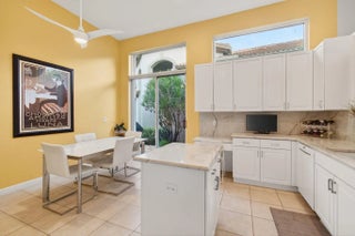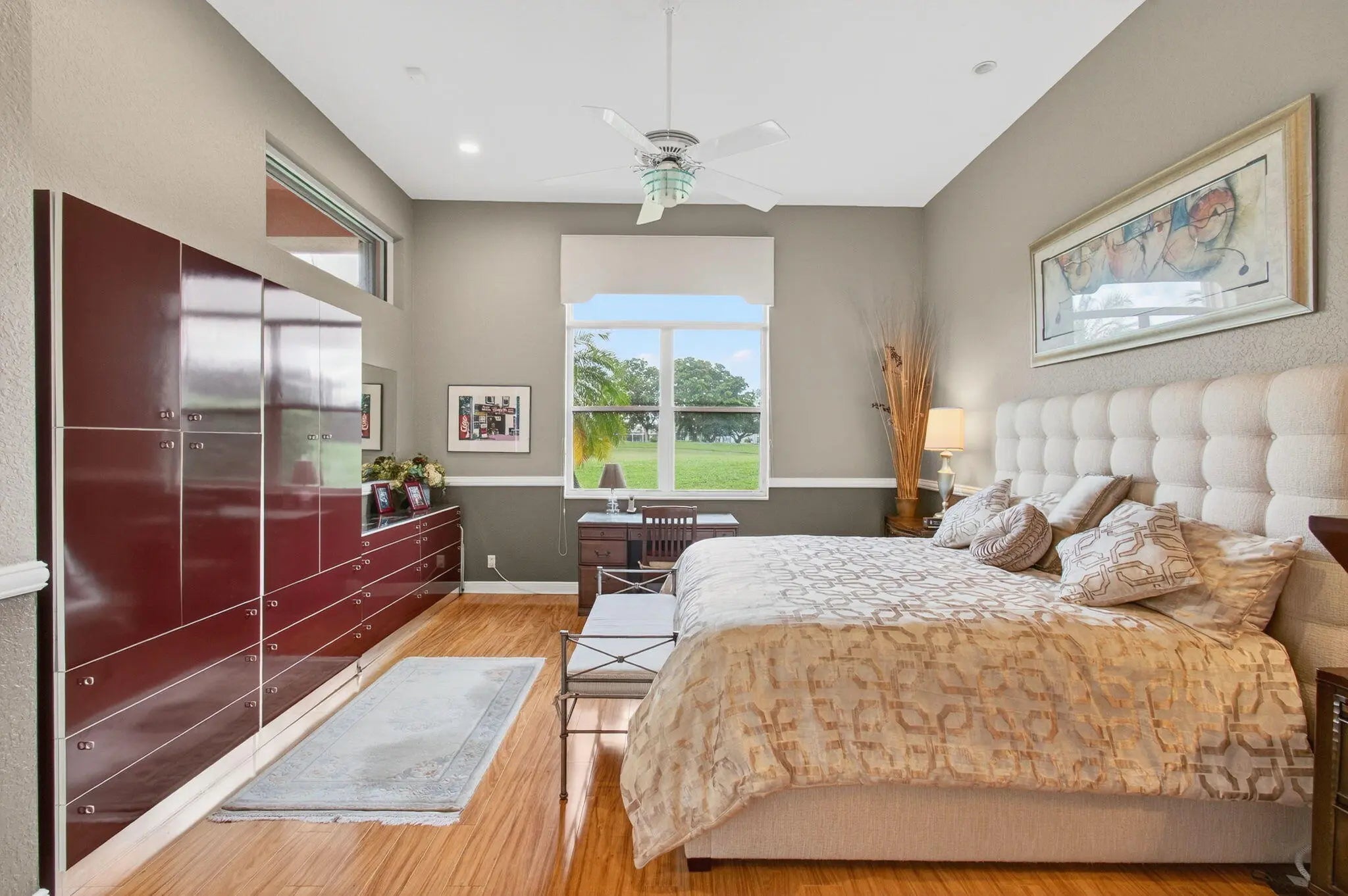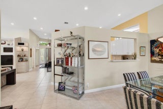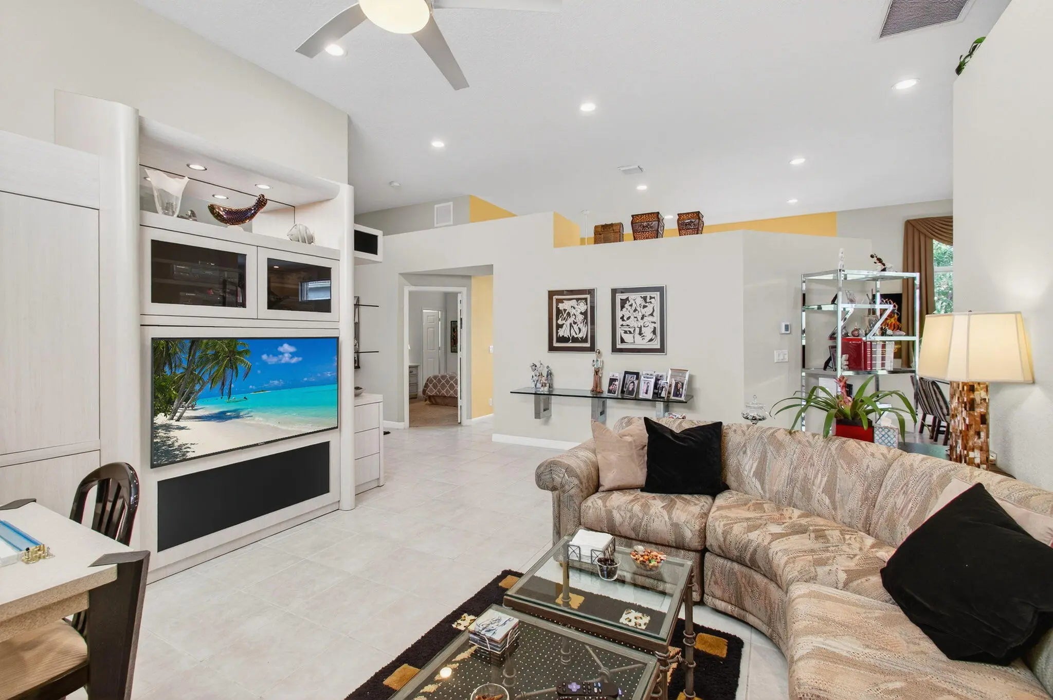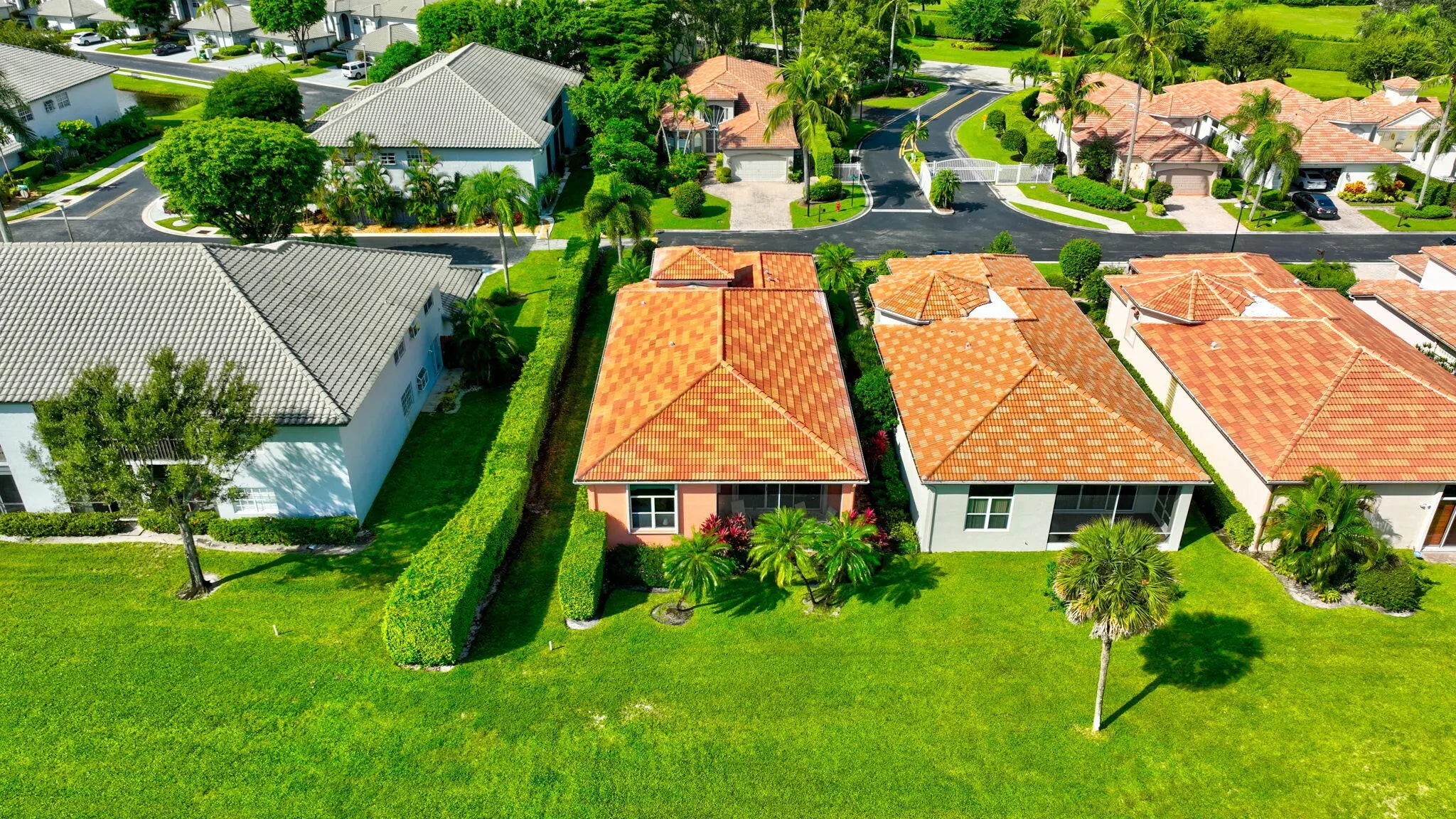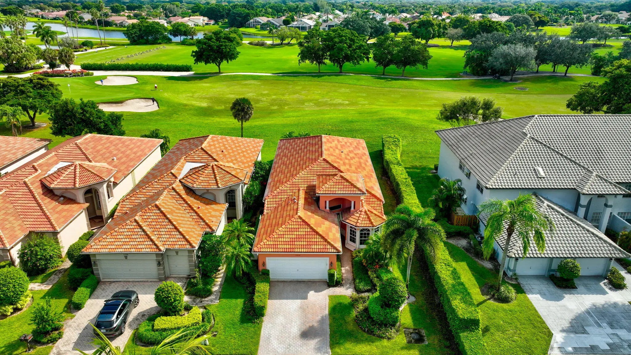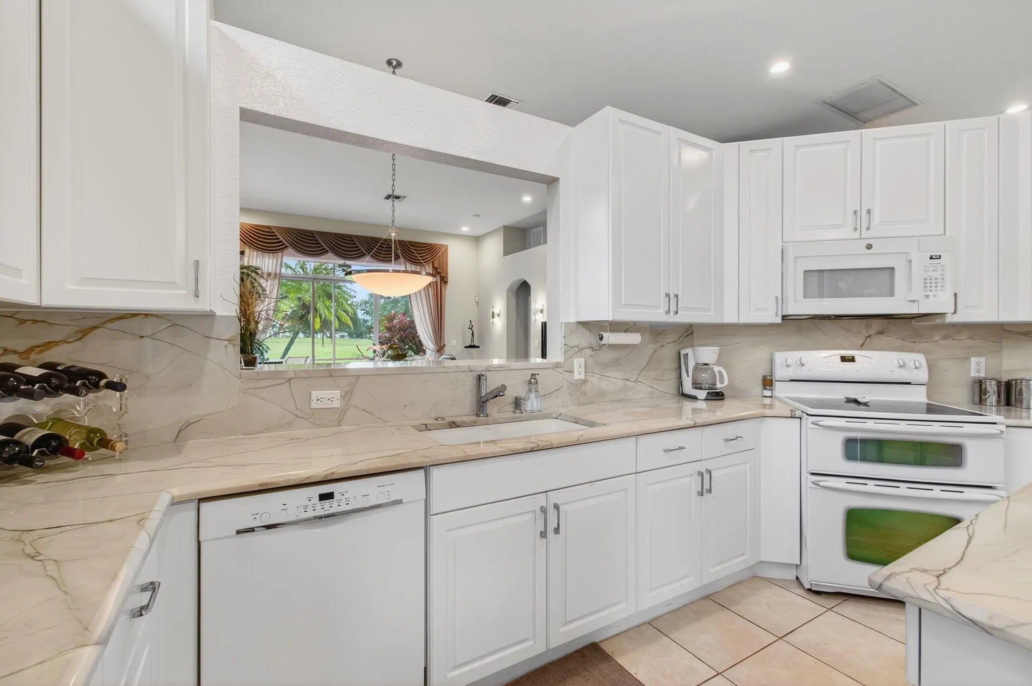 This exquisite home is one of 11 homes at Village at the Green in Indian Spring Country Club community. A model home ight on the 18th hole of the golf course. Three bedrooms 3 full baths and a split bedroom floor plan. Tiled thru out the living areas. Updated eat in kitchen with sliders to side patio, Living-dining room combo, Master bedroom suite is complete with walk in closet and updated contemporary master bath with dual vanities and separate tub and shower. Volume ceilings, accordion hurricane shutters, Generator with buried 500 gal propane tank. AAC 2023 Sliders from liv rm to Screened and covered patio