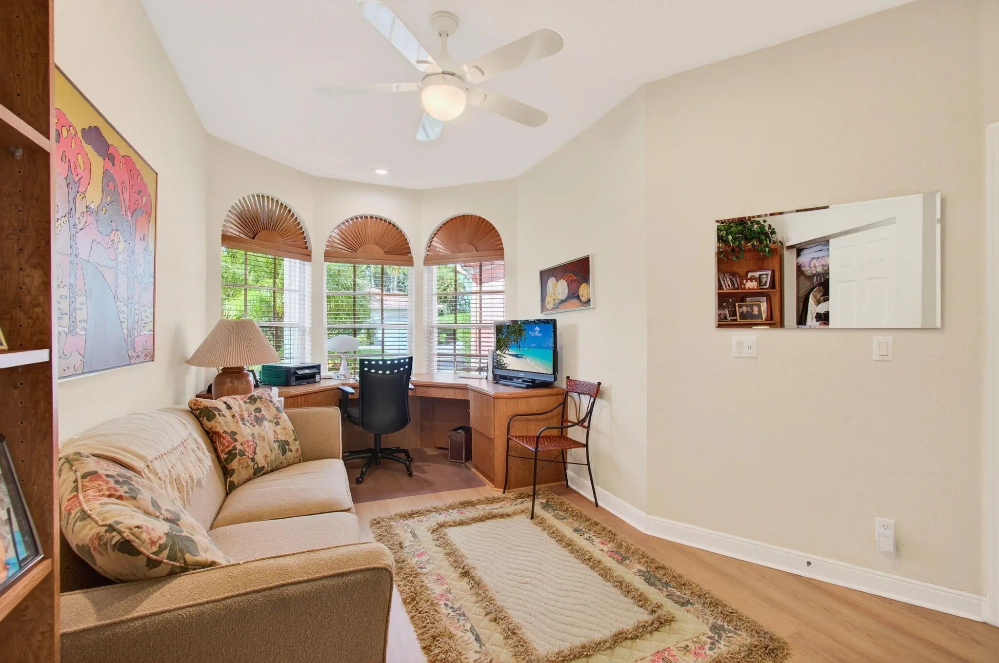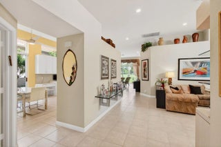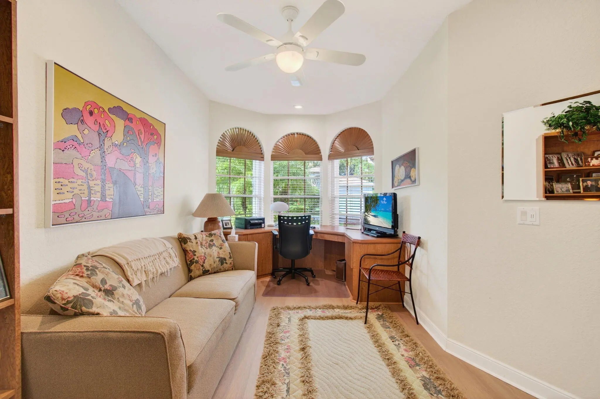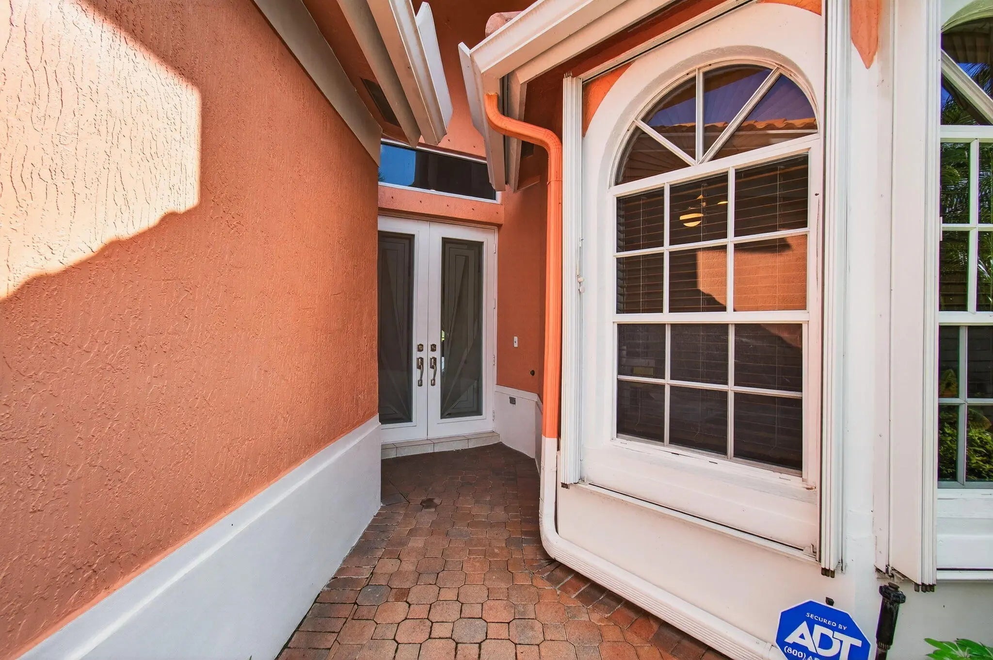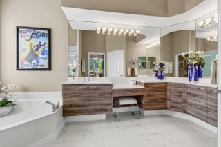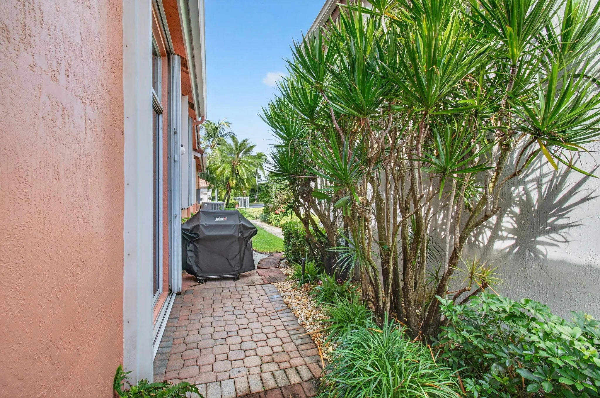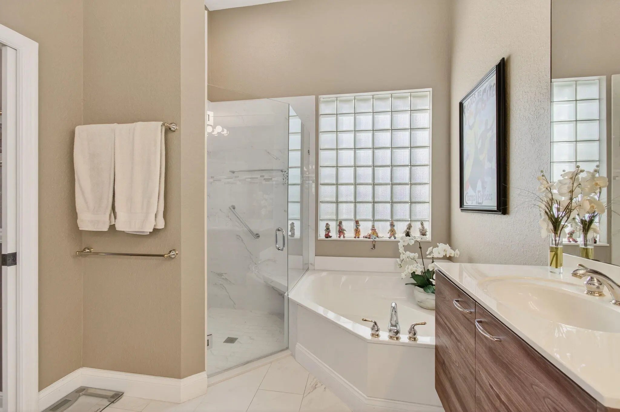 This exquisite home is one of 11 homes at Village at the Green in Indian Spring Country Club community. A model home ight on the 18th hole of the golf course. Three bedrooms 3 full baths and a split bedroom floor plan. Tiled thru out the living areas. Updated eat in kitchen with sliders to side patio, Living-dining room combo, Master bedroom suite is complete with walk in closet and updated contemporary master bath with dual vanities and separate tub and shower. Volume ceilings, accordion hurricane shutters, Generator with buried 500 gal propane tank. AAC 2023 Sliders from liv rm to Screened and covered patio
