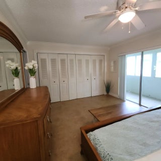 Spectacular open concept 1 bedroom 1.5 bath. This condo is in a very well maintained building with no assessments. The condo was only used about 4 months out of the year. The unit features lights above the kitchen cabinets for that elegant look, microwave is 2020, has double sinks. Most Furniture is from City Furniture and is included with the purchase and is like new. Bed has mattress but does not have the box spring. Newer shelves installed in the spacious hall closet. Abundance of closet space in the large bedroom with bright renovated ensuite. Porcelain tiles with 1/16 '' grout, stylish crown molding. Front Hurricane windows installed, storm panel hurricane shutters are located on the back porch along with paneling for the front door. Kent pool is just a short distance a This is a pet friendly building with restrictions. Century Village is a 55 and over community with plenty of activities for all to enjoy. Just to name a few: Clubhouse Amenities: -Shuffleboard -Bocci Ball -1200 seat theater for shows and movies. -Numerous clubs to join, to include trips in the US and Europe -Hasting's elite fitness center with complete, heated pool, the Lazy River resistance pool chair yoga, pool aerobics plus much more. -Sailing on the lakes of Century Village, don't know how to sail, no worries they have lessons. -Tennis/Pickleball -Indoor saltwater swimming pool, plus 8 swimming pools to choose from throughout the community -Duck Island with pier: picnics, barbeques, gatherings or just relaxation. -Community bus to transport you inside the village and outside the village for shopping, dining and much more. hair salon and barber and manicure pedicure. -Library -Dance/Party room -Pool table and ping pong room -And so much more.