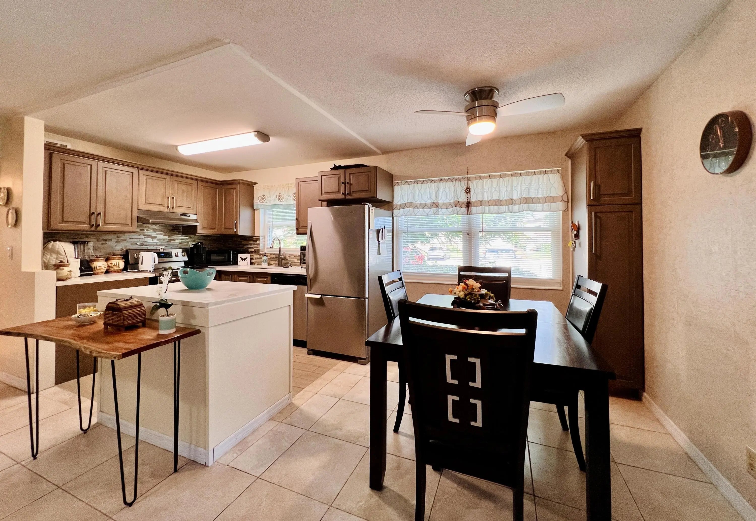 Elegant & Updated First Floor End Unit Corner in 55+ Century Village! Gorgeous Updated & Open Kitchen With Designer Finishes; Quartz Counters, Stainless Appliances, and Gleaming Rich Wood Tone Cabinets. Updated Baths; Full Bath Features A Step-in Shower. Neutral Tile Flooring Flows Throughout. Full Hurricane Protection Provided By Impact Windows AND Accordion Shutters. Lovely Building With Resident Patio and Metal Roof (2016). Sold Furnished As Shown. Fantastic Location Within the Community - Close to the Main Clubhouse, Haverhill Entrance, and the Popular Somerset Pool! Century Village is the Perfect Spot to Enjoy the Florida Lifestyle! Centrally Located in Highly Desirable Palm Beach County Century Village Offers Resort Style Amenities .... shows, movies, clubs, pools, security, and transportation service. The Clubhouse features a theater, indoor pool, card room, community/party room, billiard room, shuffleboard, tennis, pickleball, bocce, and two outdoor pools, Numerous heated outdoor pools throughout the community. Separate fitness center with gym and outdoor heated pool & resistance pool. Two guarded gates and 24-hour roving security patrol.