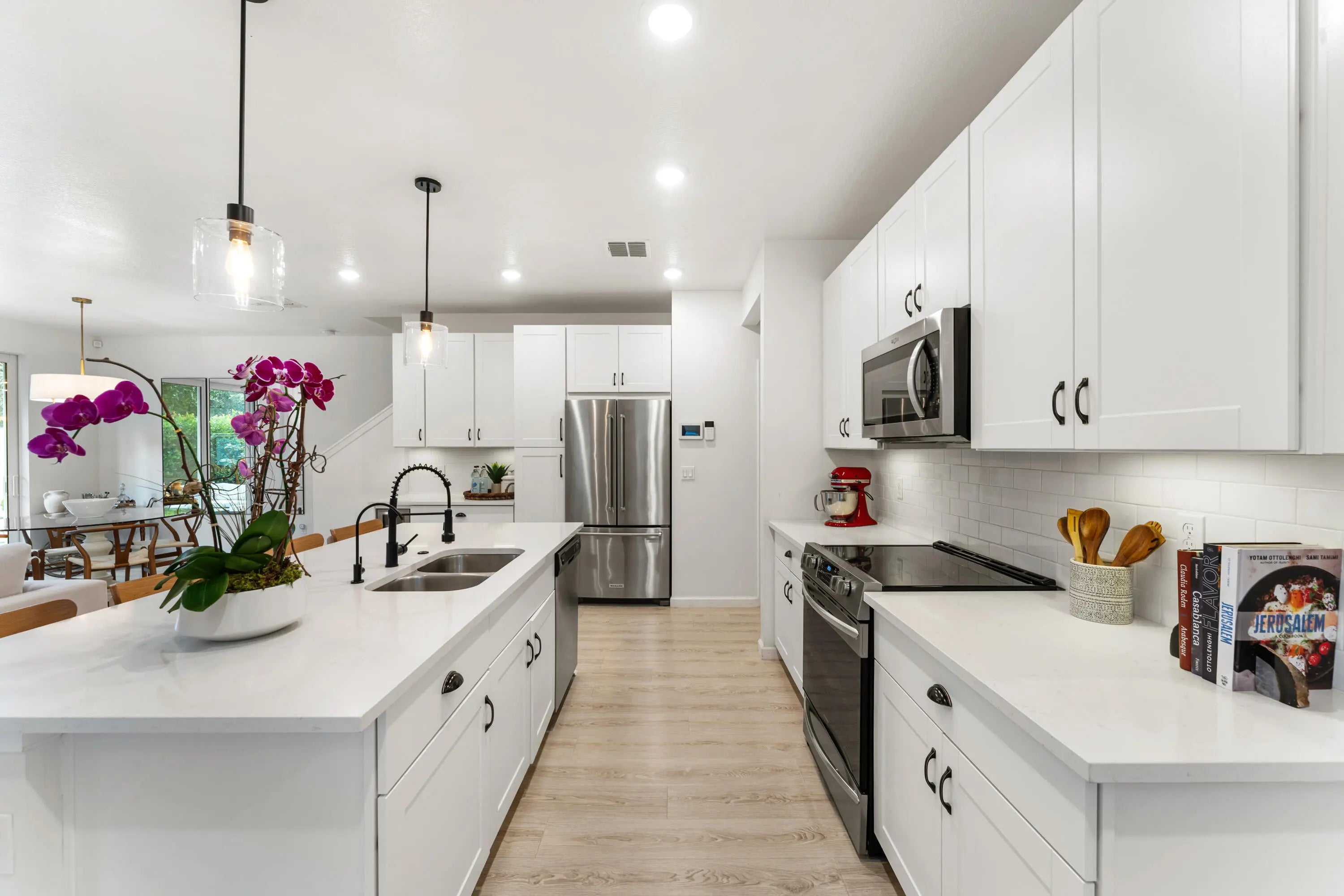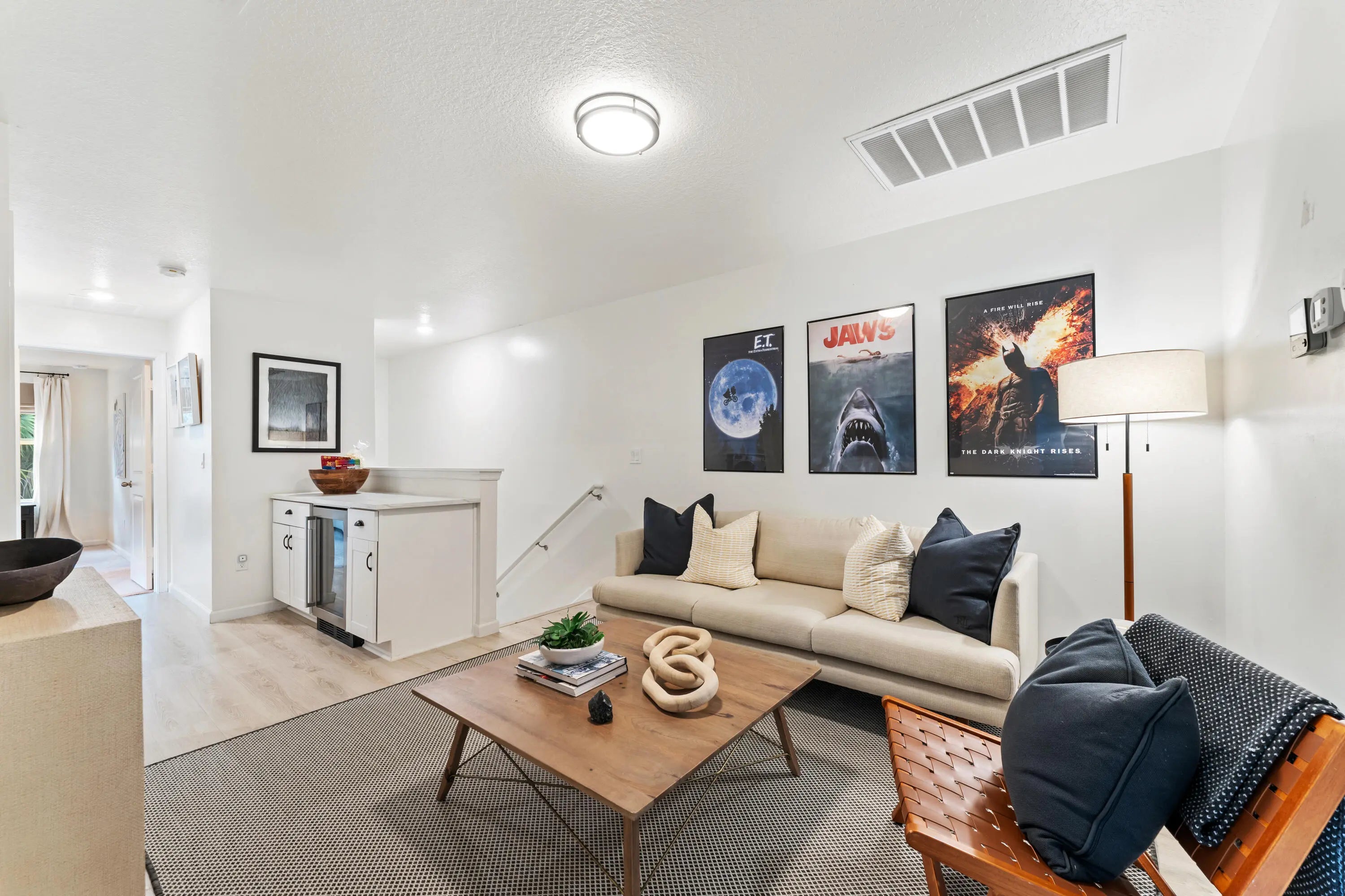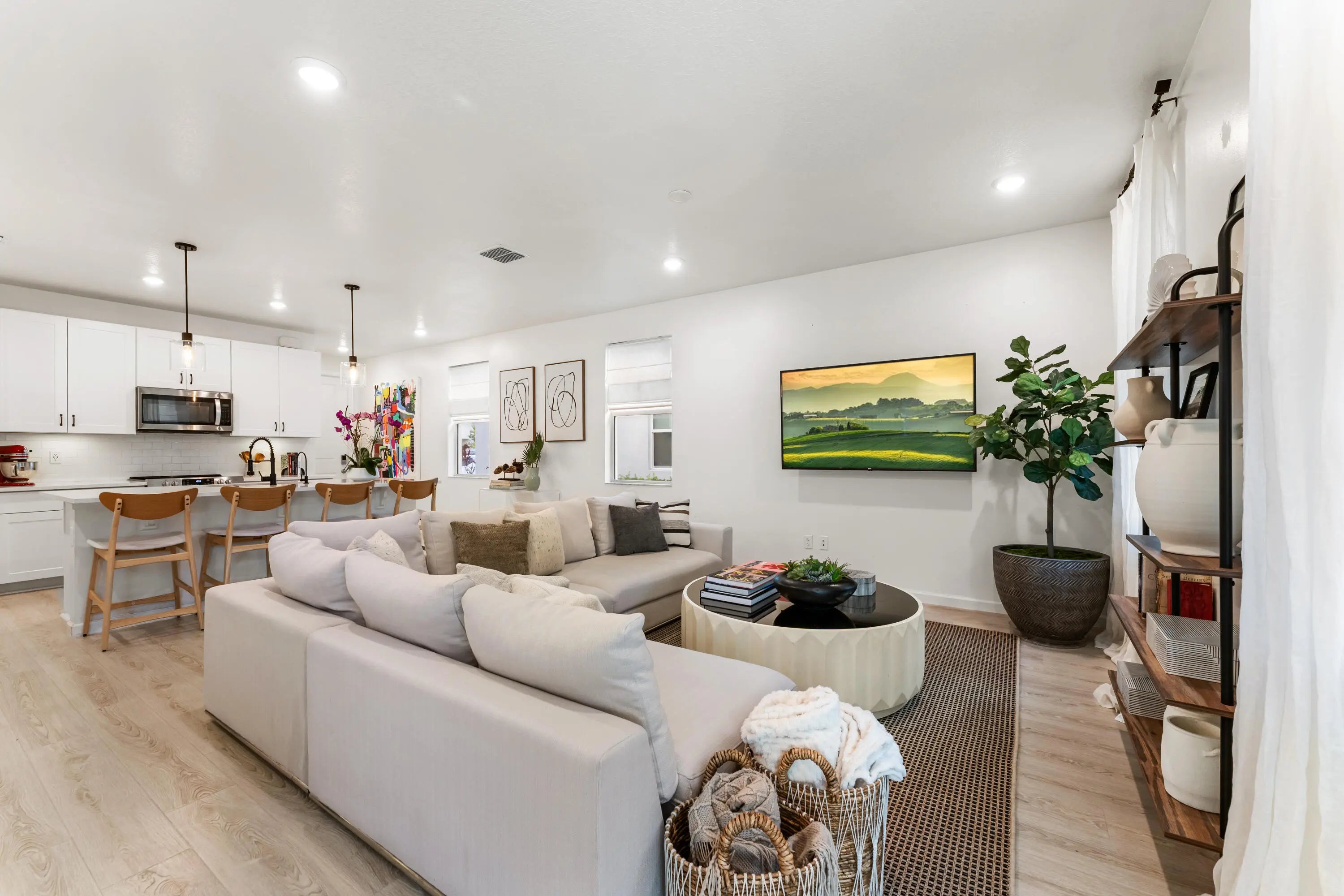 Sophisticated and modern, this 3-bed, 2.5-bath end-unit townhouse in the gated Enclave at Mangonia Park delivers ultimate comfort! The two-story residence welcomes you with high ceilings, abundant natural light, and a seamless open-concept design. The chef-inspired kitchen features stainless steel appliances, sleek countertops, and a pendant-lit island. Upstairs, a versatile loft with a built-in beverage cooler serves as a tranquil retreat. Your primary suite possesses a refreshing ensuite, while the secondary bedrooms share a pass-through bath. A laundry nook and attached 2-car garage add to its functionality. With interstate, the Tri-Rail station, shops, dining, and downtown West Palm just a short distance away, this home offers a relaxing urban lifestyle. Seize the opportunity today!