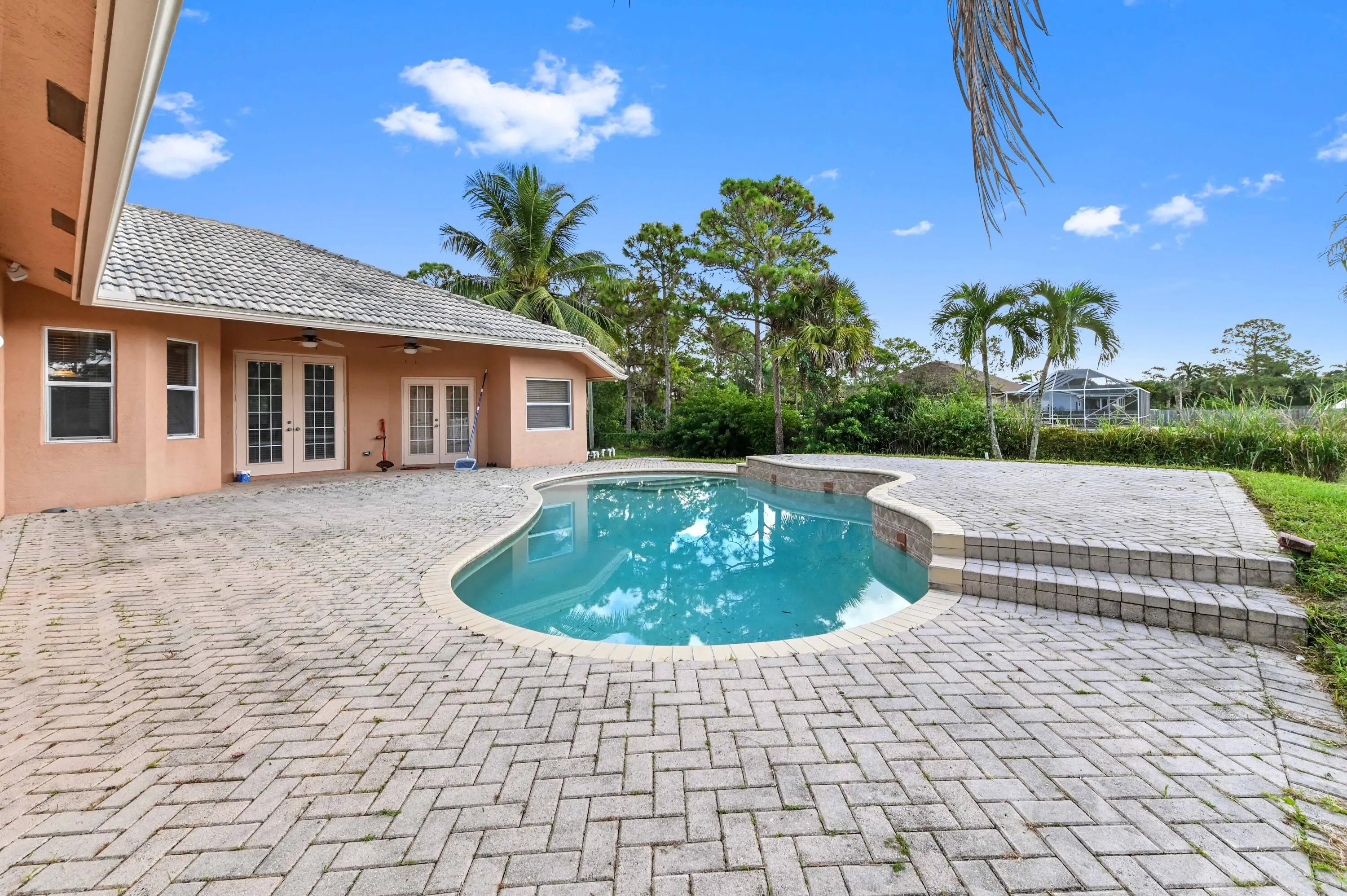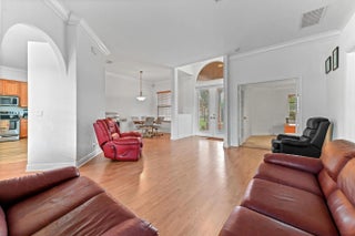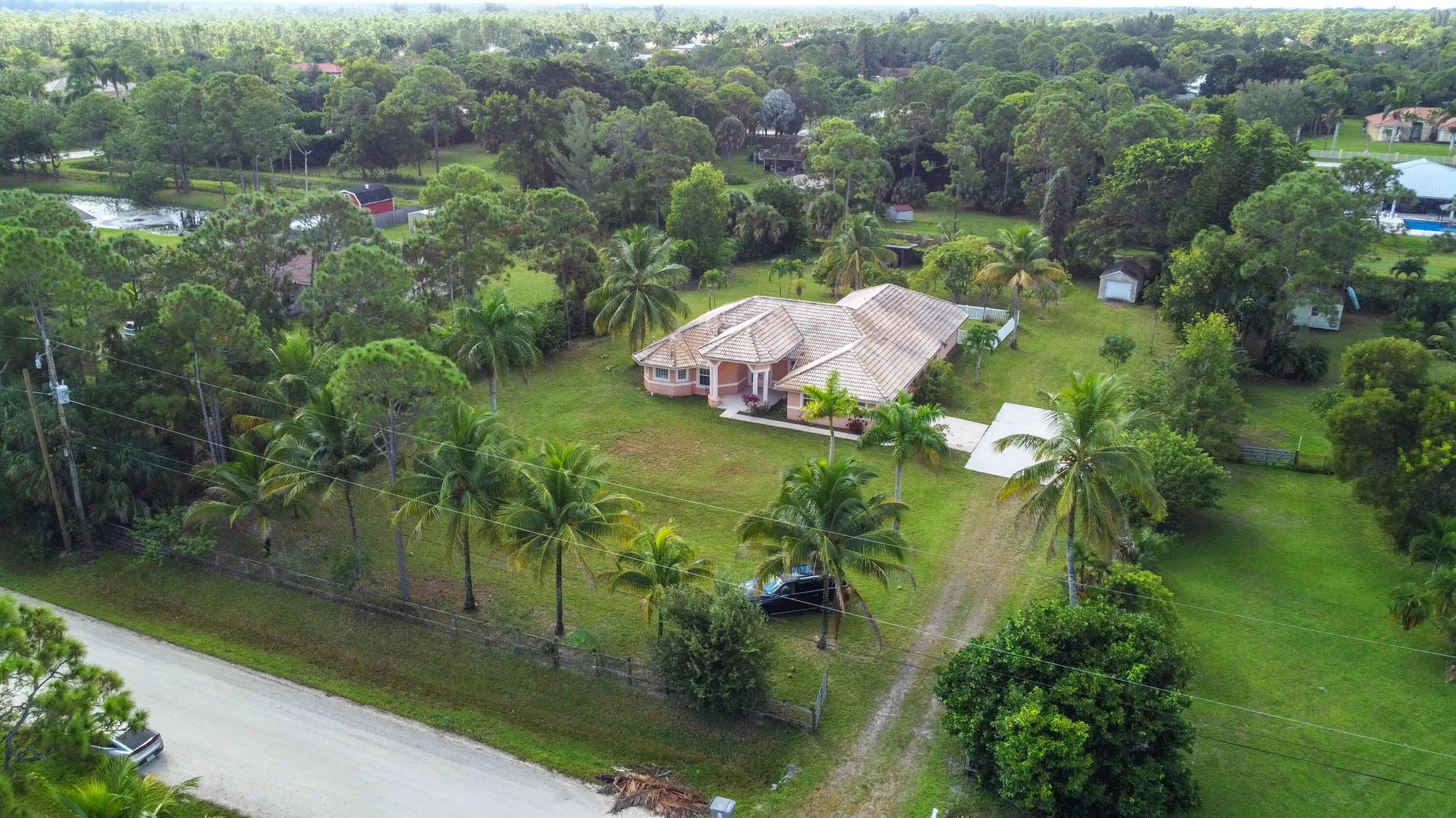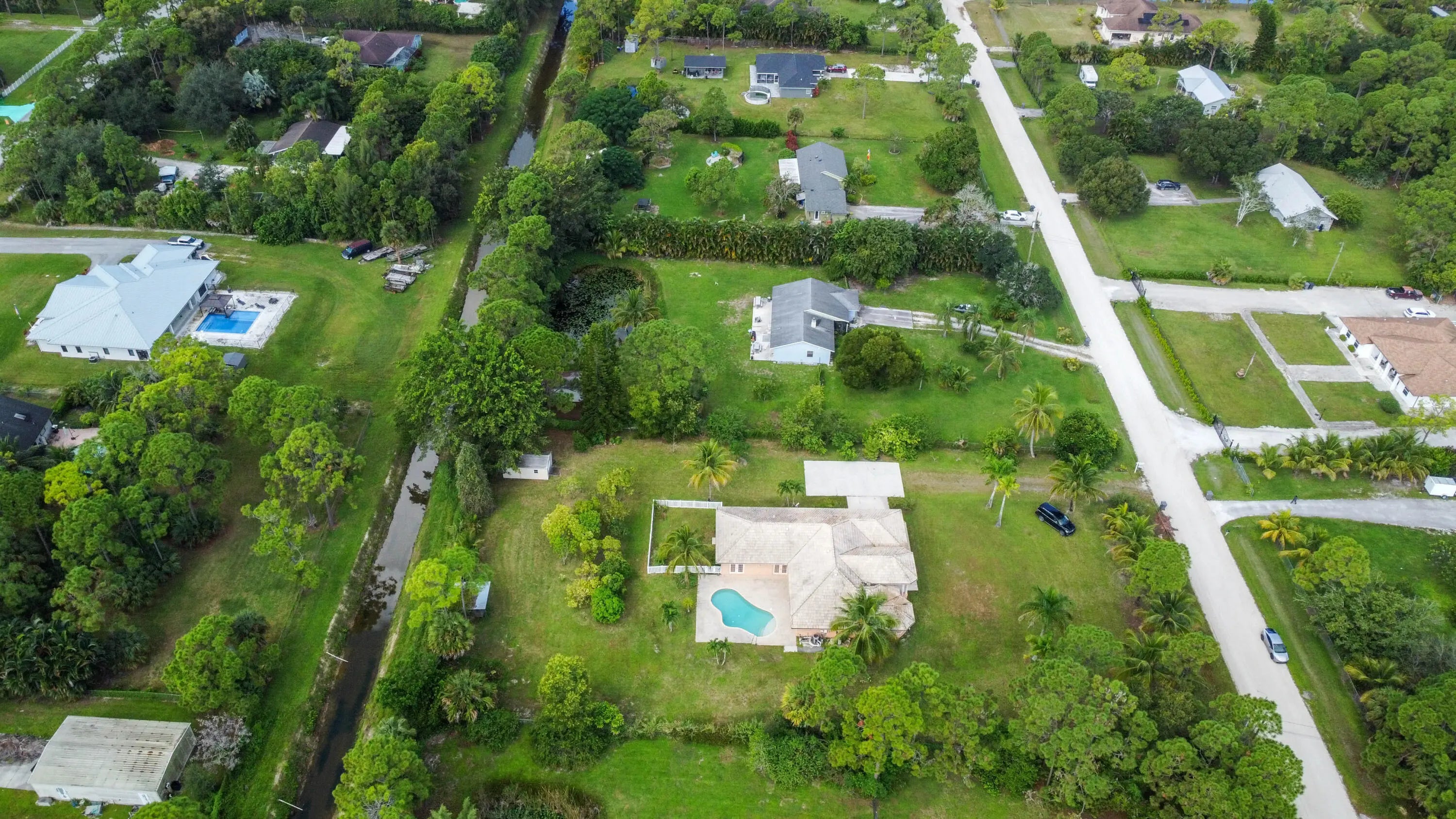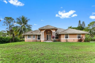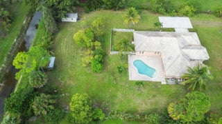 Prepare to be amazed by this truly stunning and feature-rich ranch home, perfectly situated on a fully fenced 1.25-acre canal-front lot in a highly desirable Acreage location. This magnificent property was designed for luxury and comfort, featuring five bedrooms and three baths, all meticulously planned. Step inside to discover a spacious and elegant interior boasting designer features, including knockdown textured walls and ceilings and stylish wood laminate flooring throughout the main areas. The home offers both formal living and dining spaces, complemented by a truly huge family room perfect for large gatherings. The heart of the home is the gourmet kitchen, which features granite counters and a suite of designer appliances. The masterful layout includes a highly sought-after three-way split bedroom plan, ideal for privacy or accommodating an in-law suite. The deluxe master suite is a true sanctuary, boasting a beautiful tray ceiling, an elegant gorgeous bath, and convenient His and Hers closets. Functionality is paramount, with a side-entry garage and a spacious utility room complete with a folding area and laundry tub. This great home is located just minutes from fine shopping, dining and much more!