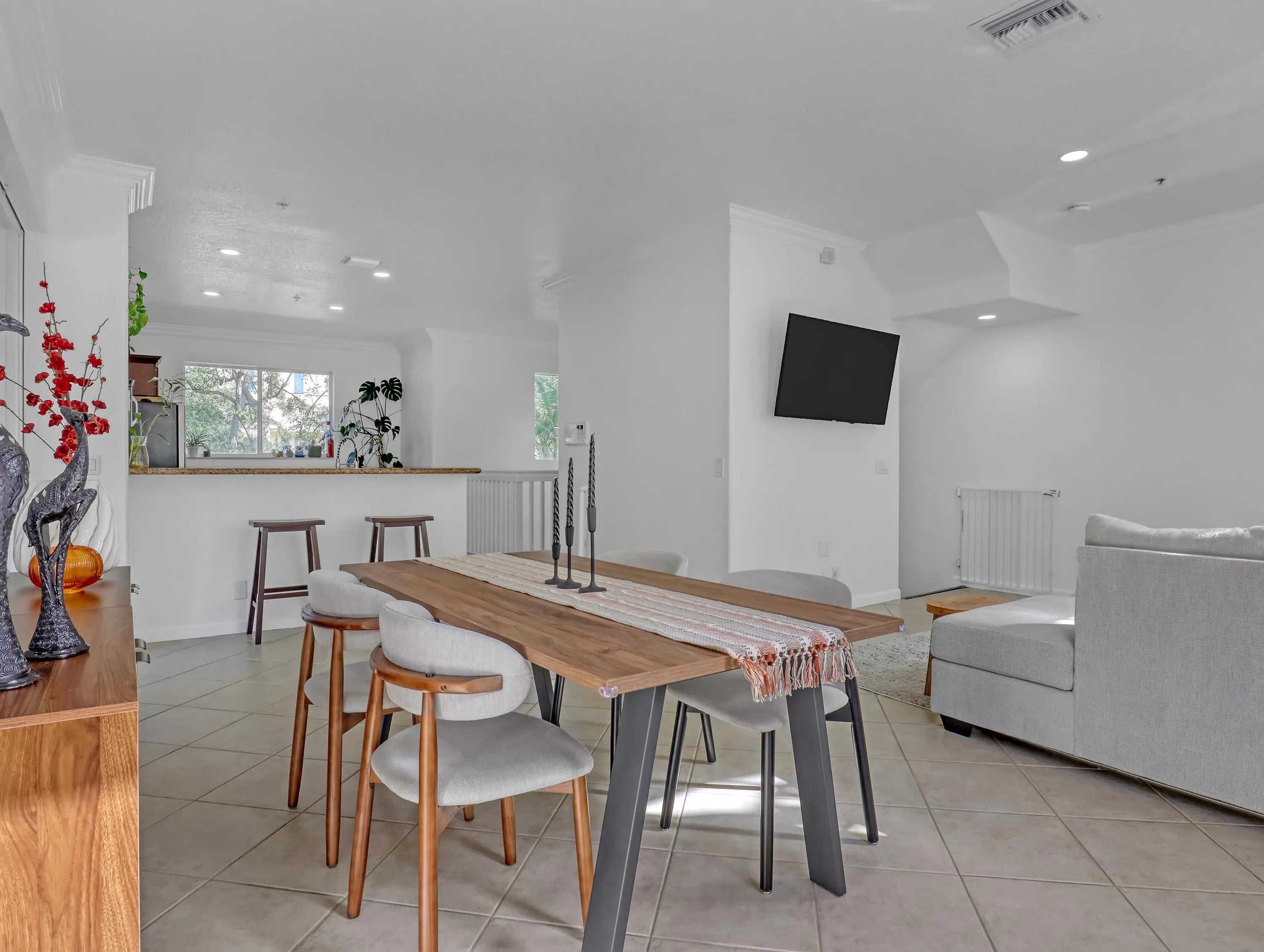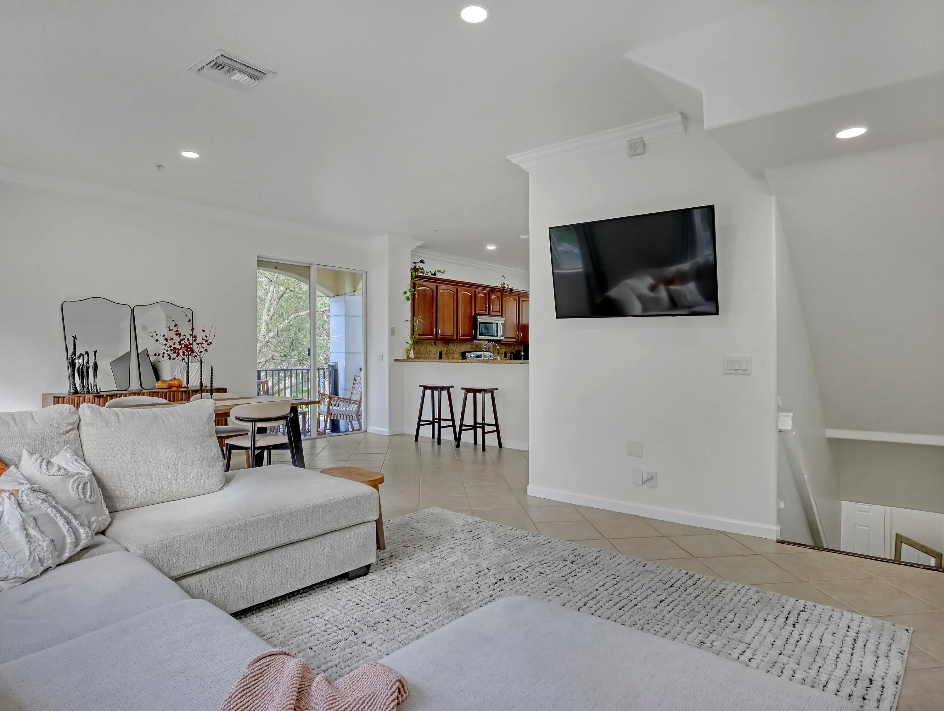 Welcome to Parkside Square, a hidden gem in Boynton Beach. This beautifully maintained 3-story end-unit townhome offers 3 bedrooms plus a den, 2.5 baths, and a 2-car garage with over 1,800 sq. ft. of bright living space. Enjoy an open-concept second floor with a spacious living and dining area, island kitchen with wood cabinetry, stainless steel smart appliances, and a covered balcony with tranquil views. The primary suite features dual vanities, a soaking tub, separate shower, and walk-in closet. Updates include new AC (2024), washer/dryer (2024), hurricane shutters, updated bath, epoxy garage floor, garage mini-split, fresh paint, and new lighting. Low HOA with pool, gym, pickleball, basketball and playground. Close to shopping, dining, I-95, and beach.