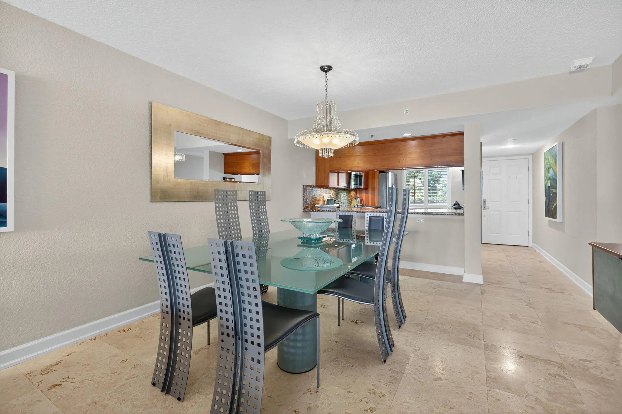 A beautifully updated and decorated 2-bedroom, 2-bath condo plus a flex room located Seaside in desirable Ocean Bluffs North community. With a Brand New HVAC unit, this light-filled residence features elegant filled Travertine marble flooring throughout and a spacious open porch offering tranquil views. Ocean Bluffs North is a gated (non-manned) community where residents enjoy access to a community pool and tennis courts. For beach lovers, a community gate provides access to the beach/ocean. Located in an elevator building for added convenience, this home is perfect for those seeking a relaxed coastal lifestyle. Whether you're looking for a permanent residence or a vacation getaway, this property is a must-see - you won't be disappointed