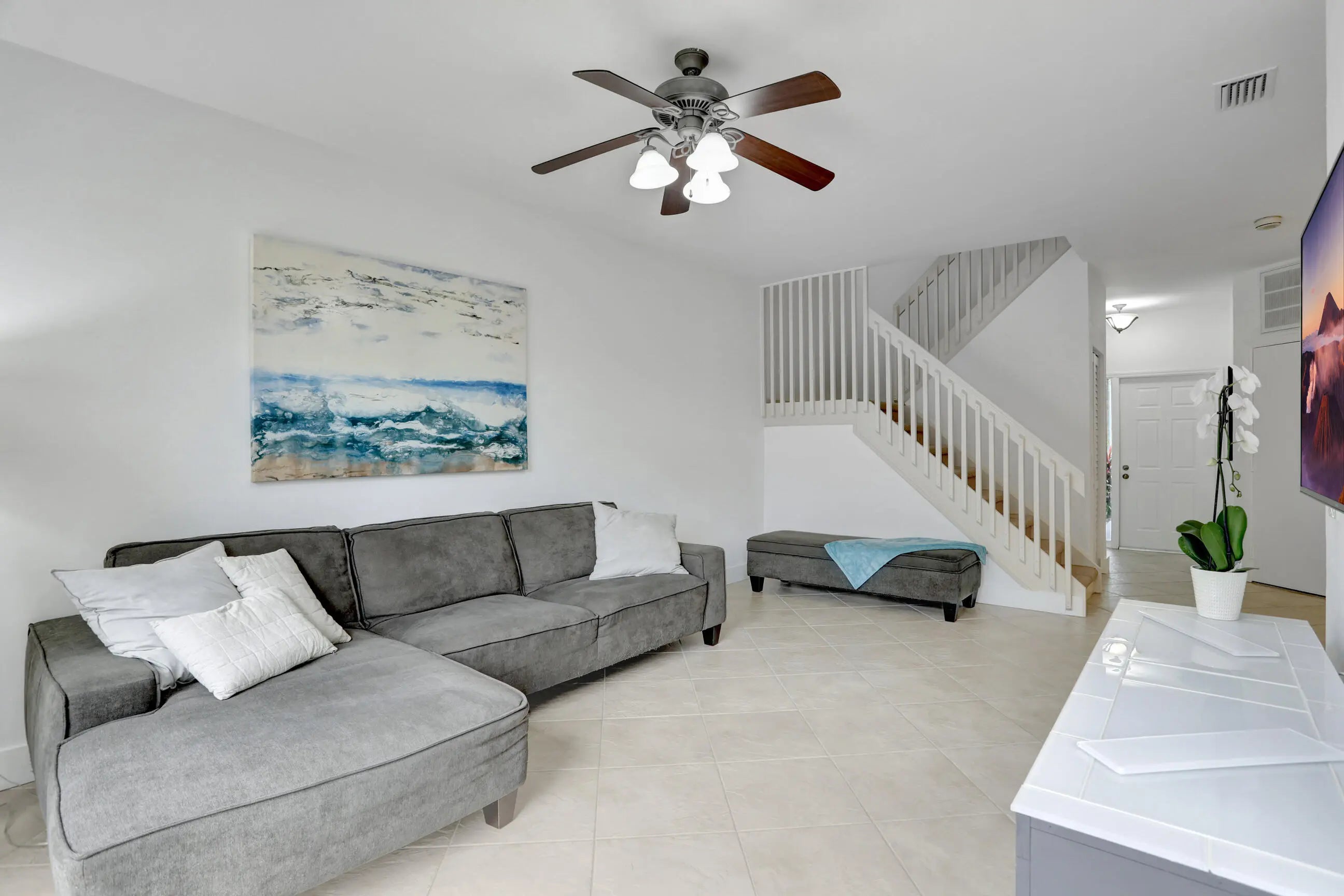 Attention: MOTIVATED SELLER! This Cortina home is in the non-mandatory Boca Pointe Country Club Community offers a renovated kitchen with all newer appliances, NEWER PIPES, ceramic tile floors in all living areas, 3 spacious bedrooms and 2.5 baths (half bath has been completely renovated), a separate laundry room located on the second level, and a 1 car garage. The first level has been renovated; second floor needs TLC. The screened-in patio area offers a wonderful, private space to enjoy your morning coffee or a quiet afternoon. The HOA provides exceptional value, covering basic cable, internet, roof, building insurance, landscaping, and all exterior maintenance, including a fabulous community pool. Nestled in the highly desirable, A-rated school district, this home is minutes from Boca's best beaches, Mizner Park, Town Center Mall, and top dining destinations. Boca Pointe is non-mandatory equity community & is centrally located to beaches, hwys, shops & restaurants. Buyer Approval; Commercial Vehicles Prohibited; Interview Required; Lease OK w/Restrict; Tenant Approval. Pictures shown are from when property was rented.