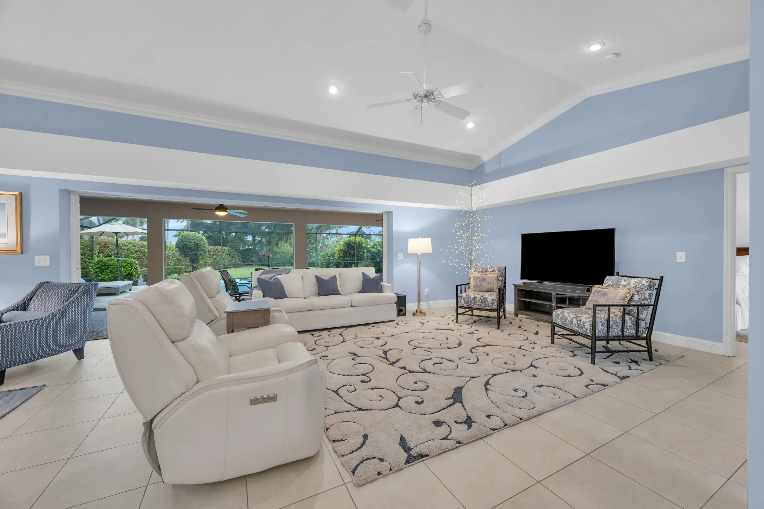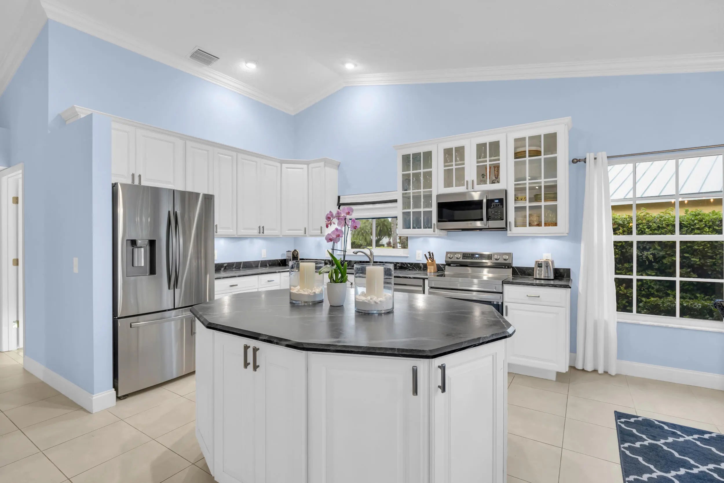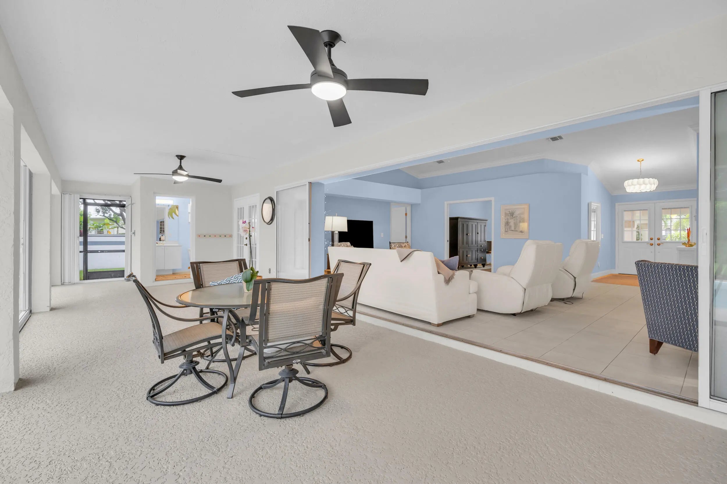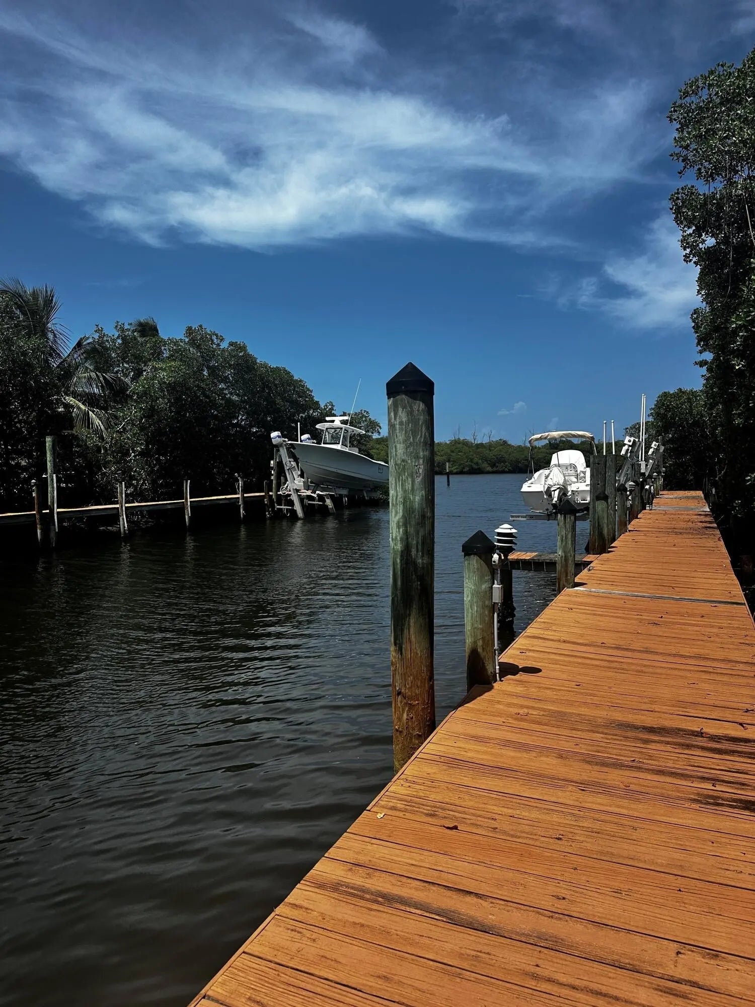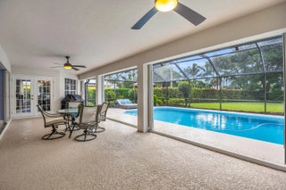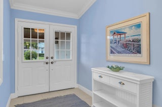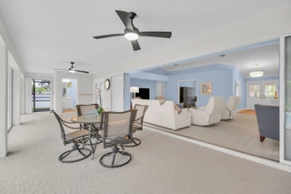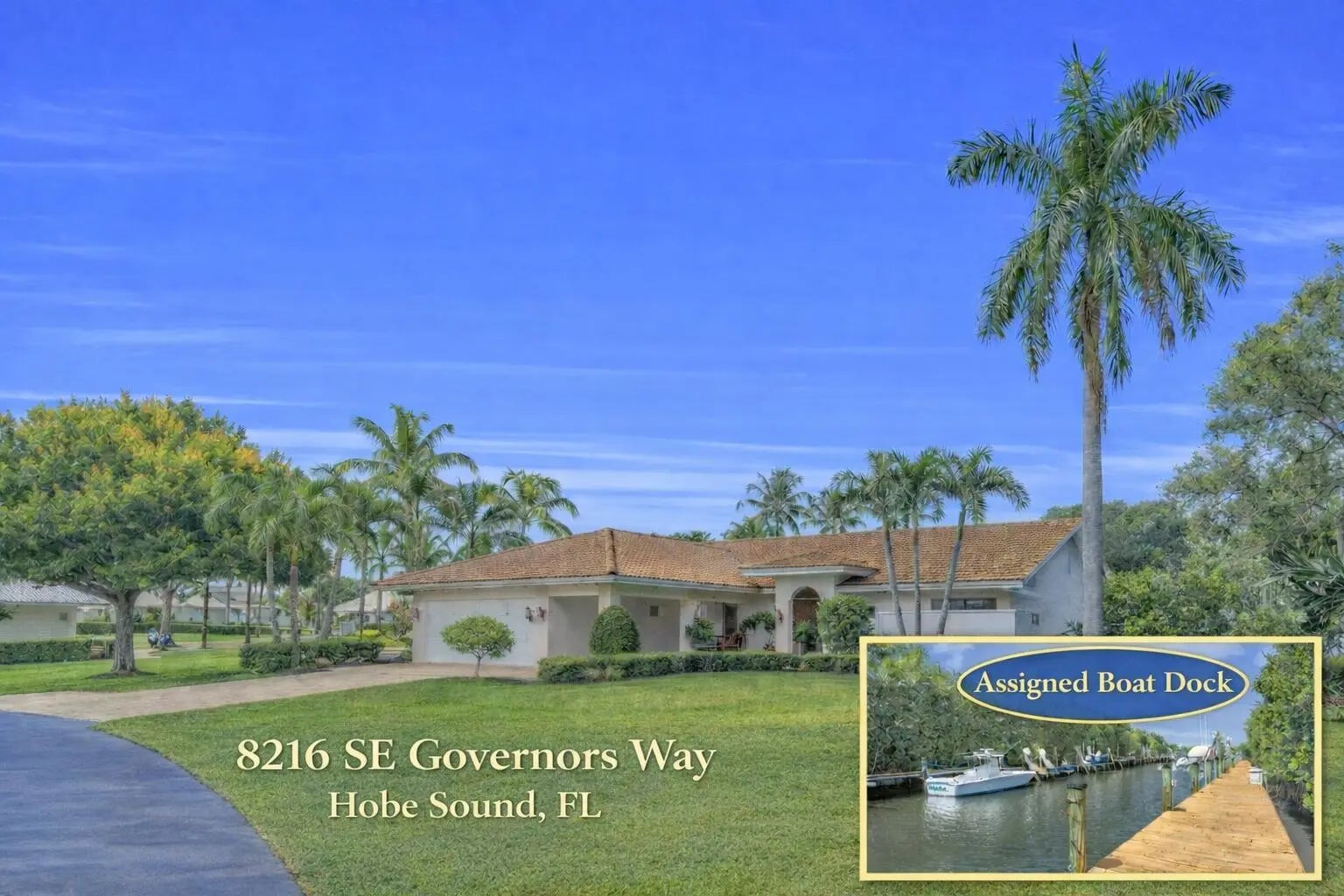Single family home located in the gated waterfront community of Governors Landing. Enjoy coastal living in this beautifully maintained 3 bed 2.5 bath home. 35-foot assigned DOCK is included, ideal for boating enthusiasts & those seeking a relaxed Florida lifestyle. Open concept floor plan & volume ceilings. Kitchen features a sandstone counters, newer appliances & inviting dining area. Large covered & screened lanai includes half bath & outdoor shower, Primary suite offers dual sinks, walk in custom closet, separate tub & shower. All new interior solid core wood doors. 3rd bedroom includes murphy bed, perfect for spare bedroom/den or office. 2 car garage with custom cabinetry & epoxy floor. Accordion shutters and 2015 roof. Only a 5 min drive to the scenic Jupiter Island beach.