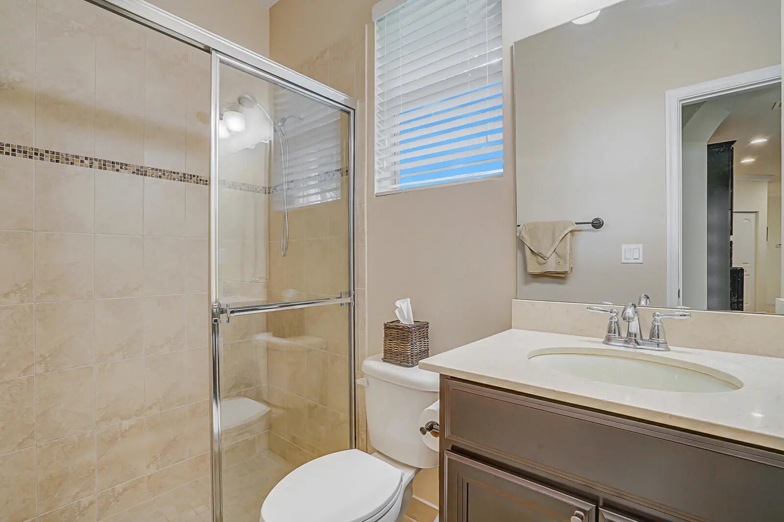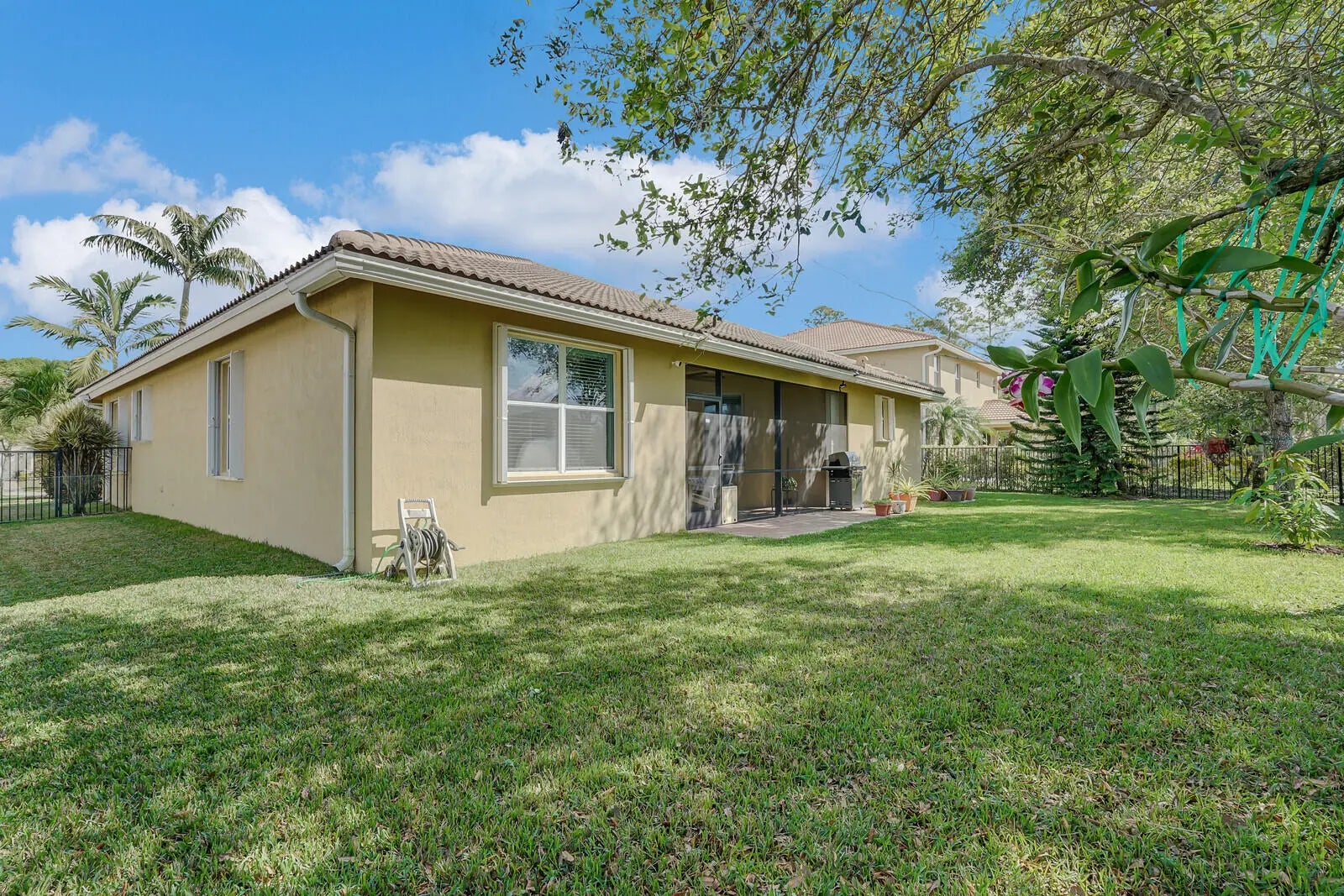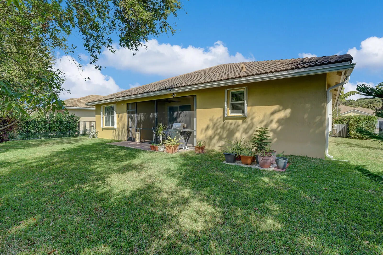 The new year is here-your perfect home awaits! Don't miss this opportunity to own a beautiful home in a prime location, yet private, minutes from shopping, dining and PBI Airport. Step inside to an open floor plan-perfect for entertaining, hosting game nights, or creating formal living spaces. Home has all-tile floors, crown molding, 9' ceilings and updated lighting and ceiling fans throughout. The spacious primary suite offers an ensuite bath with a large walk-in shower & custom built in shelving in closets. One guest room has a space saving hide-a-bed that stays. One bath has a Safe Step jetted tub/shower for ultimate relaxation after a long day. The kitchen is a chef's dream with granite tops, 42'' cabinets, and plenty of counter space and storage. Enjoy a... screened-in patio and a fully fenced yard big enough for a pool and pets. Have peace of mind with a home warranty that's transferrable to 2027 and $5k toward closing costs. Additional updates include AT&T Fiber internet, a newer A/C (2022), a new microwave (2025) and plenty of thoughtful touches throughout. Schedule your showing today. Welcome home!