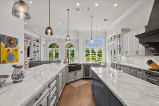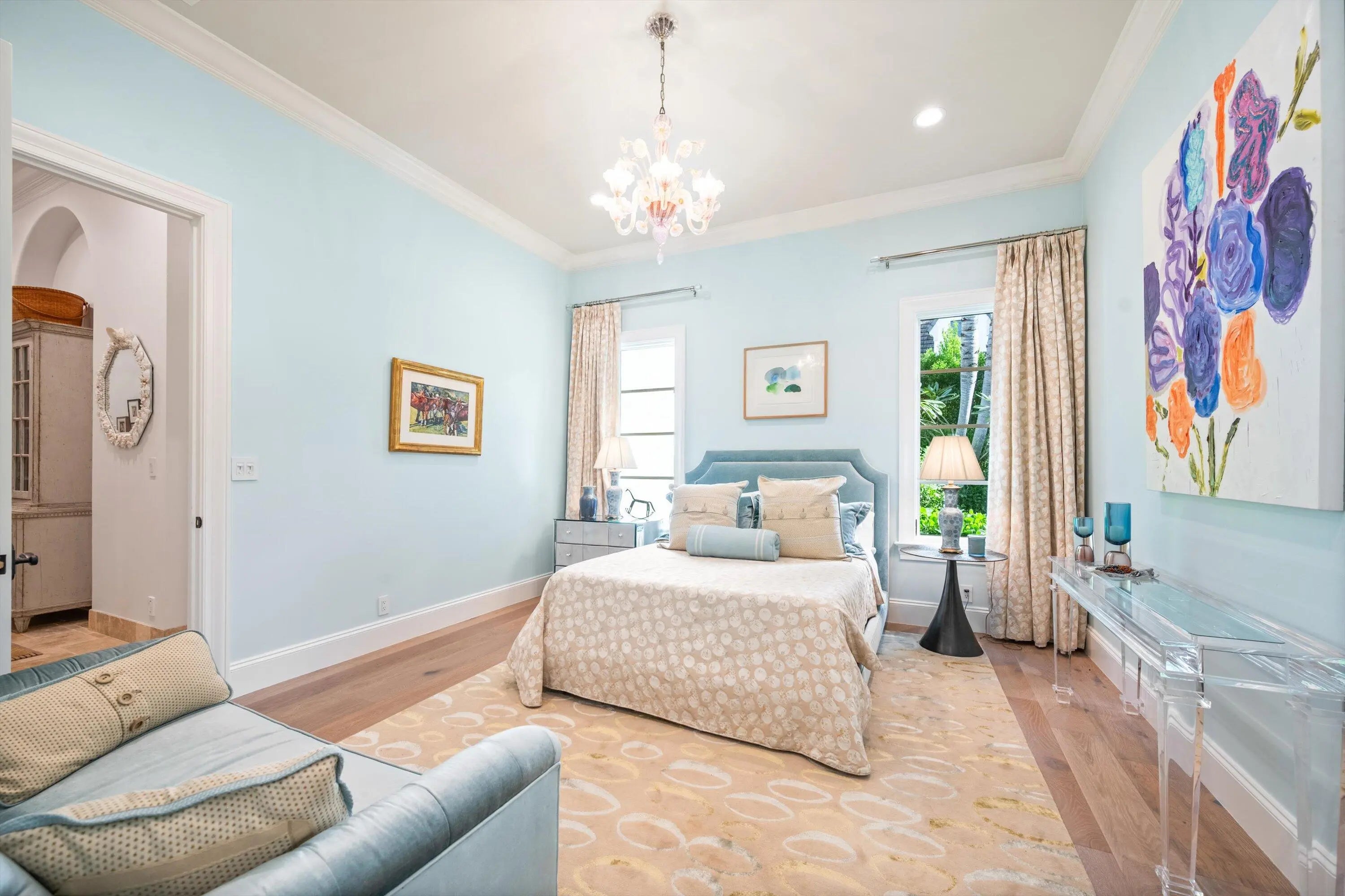 Exuding sophistication and timeless appeal, this stunning Cypress Island estate epitomizes luxury living within the prestigious Palm Beach Polo Golf and Country Club. Perfectly situated on a serene waterfront lot, the residence offers nearly 6,000 square feet of refined single-level living with 4 bedrooms, 6.5 bathrooms, and a 3-car garage. Sunlit interiors reveal a gourmet chef's kitchen appointed with Wolf appliances, a glass-enclosed walk-in wine cellar adjacent to the formal dining area, and an elegant living room anchored by a beautifully crafted fireplace. The owner's wing provides a private sanctuary featuring a sitting area, dual baths, and generous dressing spaces, while three spacious guest suites each include private baths and walk-in closets. Outdoors, lush landscaping frames an entertainer's paradise with multiple covered loggias, a fully equipped summer kitchen, full cabana bath, and an oversized saltwater pool overlooking tranquil water views. A rare opportunity to own a masterfully detailed residence in one of Wellington's most coveted enclaves.