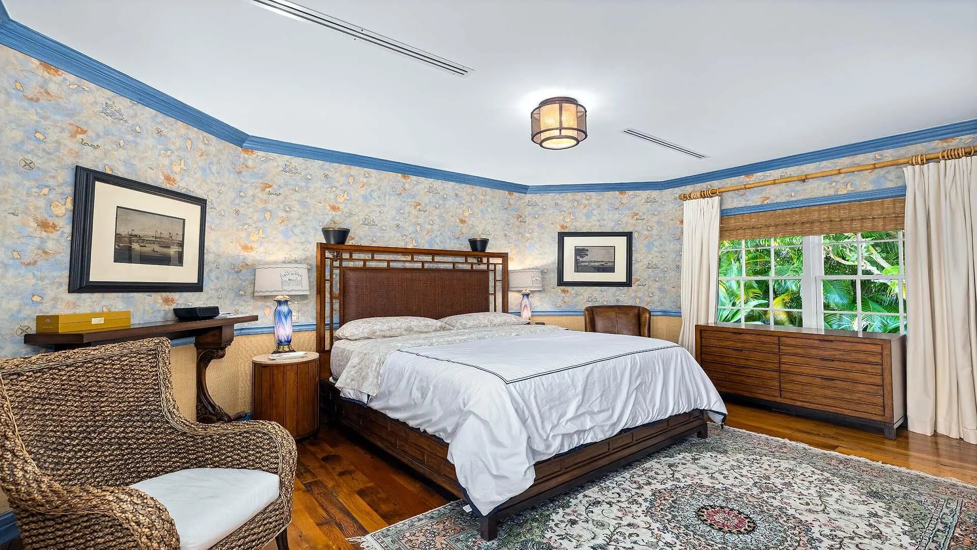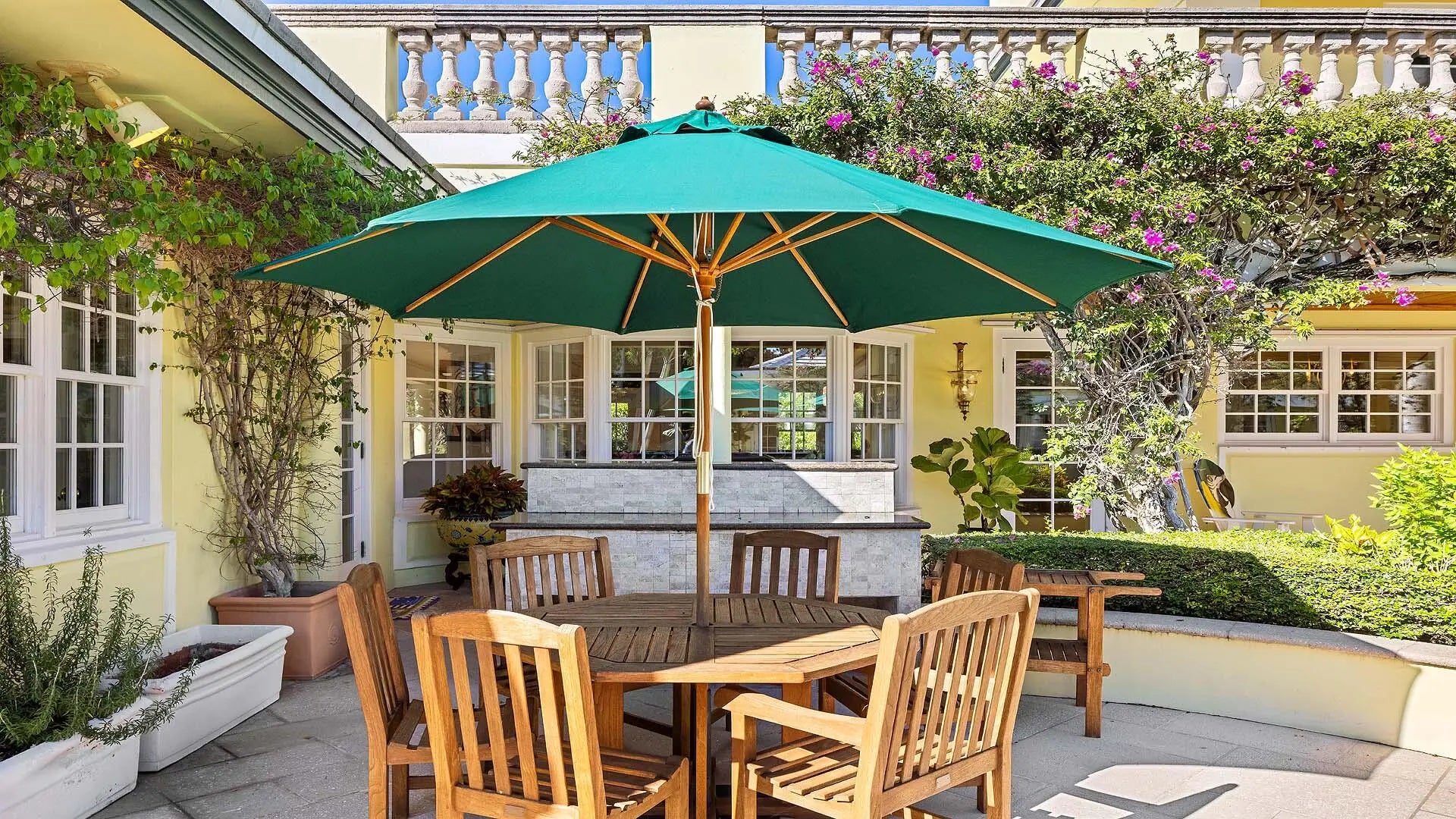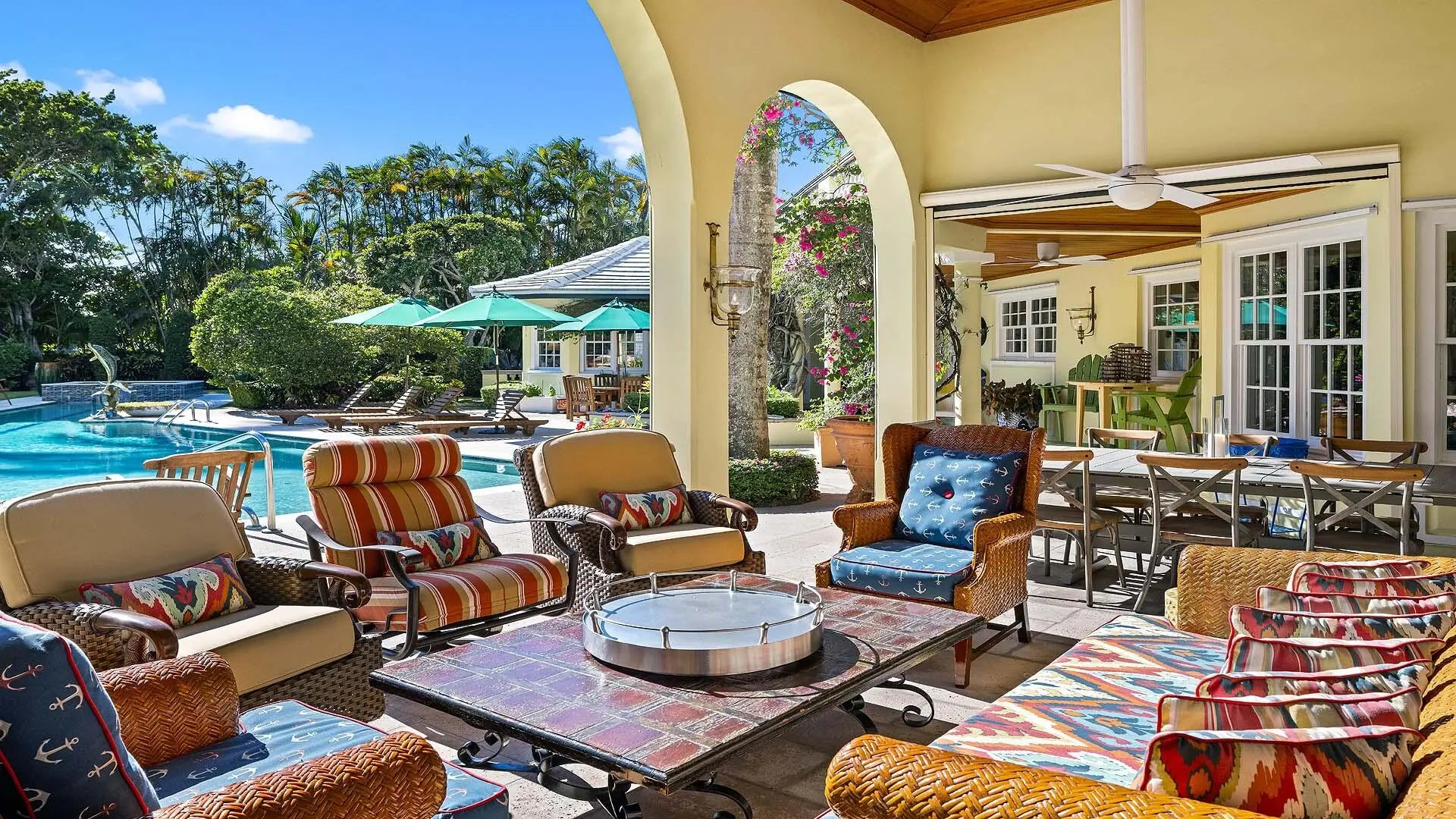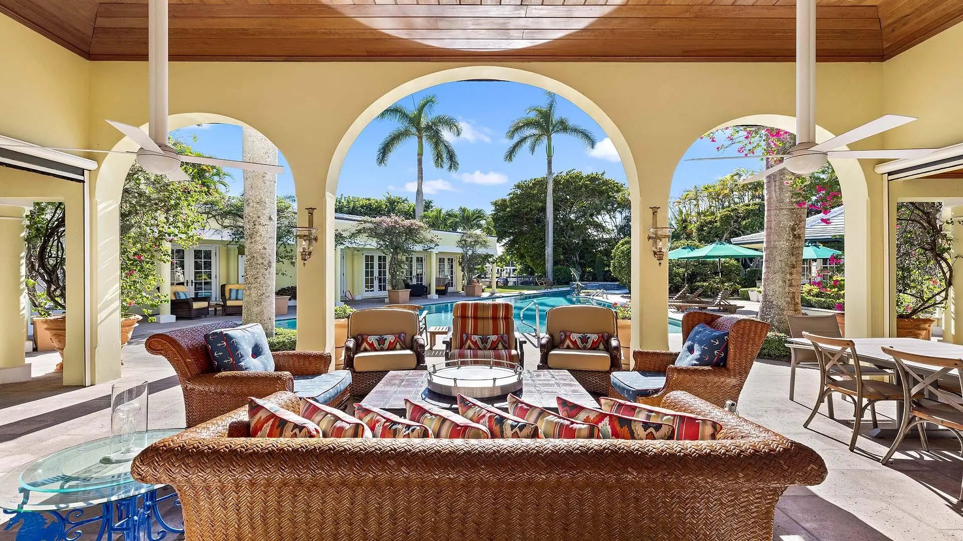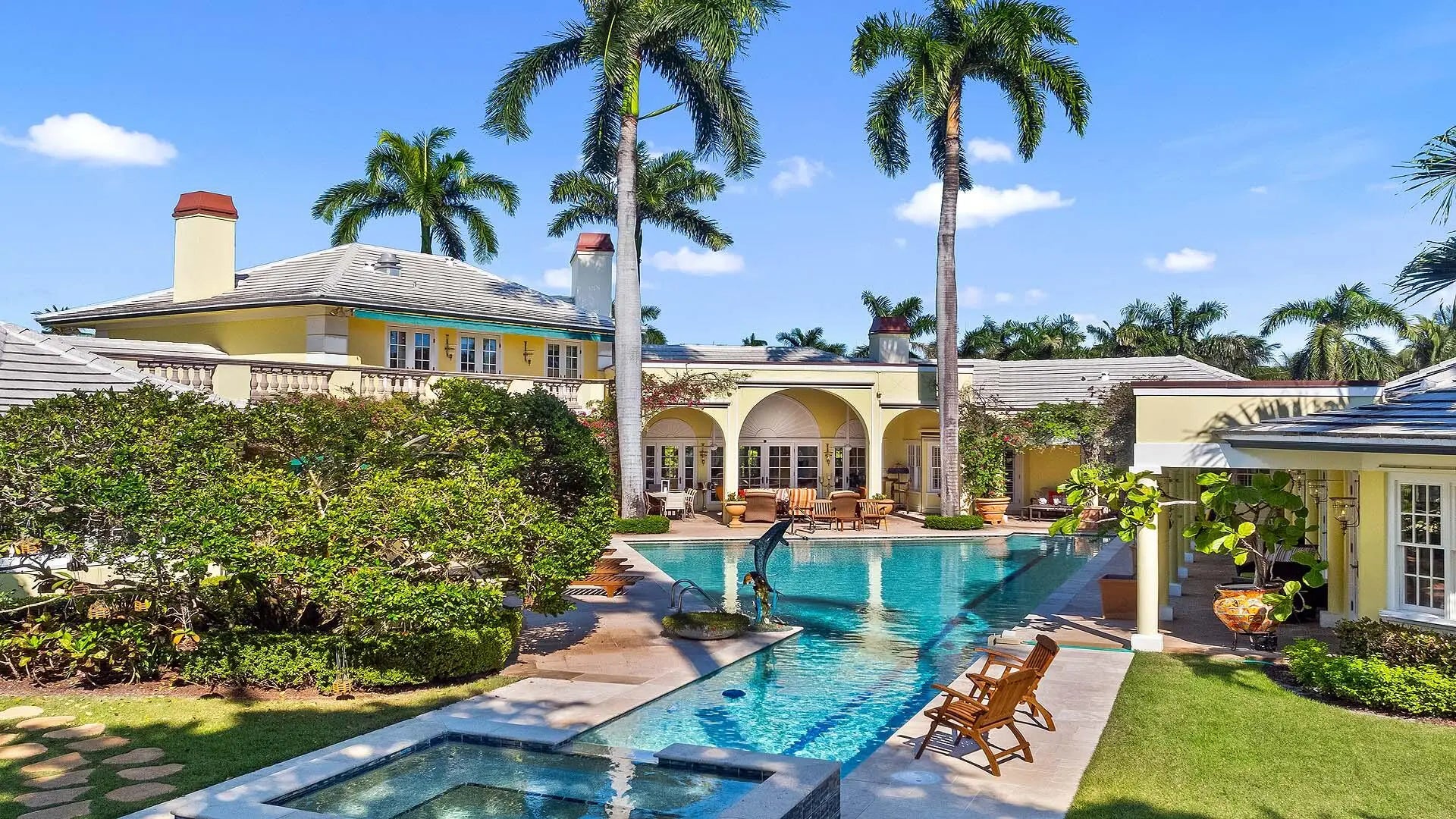 Set on three-quarters of an acre in the heart of Gulf Stream, Palm Beach County's most exclusive seaside enclave, this classic Bermuda-style estate is a rare and remarkable offering that exudes character, privacy, and sophistication at every turn. The residence is offered furnished and includes boat. Surrounded by lush bougainvillea, mature palms, and manicured gardens, the property offers a tranquil retreat just moments from the ocean and Gulf Stream's private beach access, located only a few blocks away. Meticulously updated, the residence reflects timeless architecture and refined living; the kind of home that feels both significant and enduring. With over 6,000 square feet under air and more than 8,400 total square feet, the estate intimate retreats, and seamless indoor-outdoor flow. intimate retreats, and seamless indoor-outdoor flow. Main Residence A gracious foyer sets the tone for the home's inviting elegance, leading to an expansive living room that overlooks the pool, gardens, and waterway beyond. The wood-paneled library/den provides a warm and distinguished setting for work or relaxation, while the formal dining room captures garden views and overlooks the covered loggia, perfect for gatherings and alfresco entertaining. The renovated kitchen is a showpiece - spacious and welcoming with vaulted wood-beamed ceilings, custom cabinetry, fine finishes, and a full suite of premium appliances. Adjacent family and breakfast areas blend comfort and functionality, ideal for casual living. Upstairs, the primary suite commands sweeping views of the pool, grounds, and water, featuring dual bathrooms and closets. A private three-bedroom guest wing includes its own living room and entrance, offering a perfect setup for family or extended guests. Guest House & Grounds A separate guest house with a large living room and bedroom enhances the estate's versatility, creating a serene space for guests, staff, or an additional office. Outdoors, the 75-foot lap pool, spa, and covered lounging areas are enveloped in tropical landscaping and vibrant bougainvillea, creating a sense of calm and privacy. The property features 50 feet of waterfront with private dockage, a three-car garage, outdoor shower, generator, custom mechanical room, and a circular motor court with ample parking. The Essence of Gulf Stream Living Located on one of Gulf Stream's most prestigious streets, 3580 Polo Drive captures the essence of timeless coastal living; elegant yet comfortable, private yet connected, and imbued with the charm and beauty that define South Florida's most coveted community. Steps from the ocean, this exceptional property stands as one of Gulf Stream's true legacy estates.