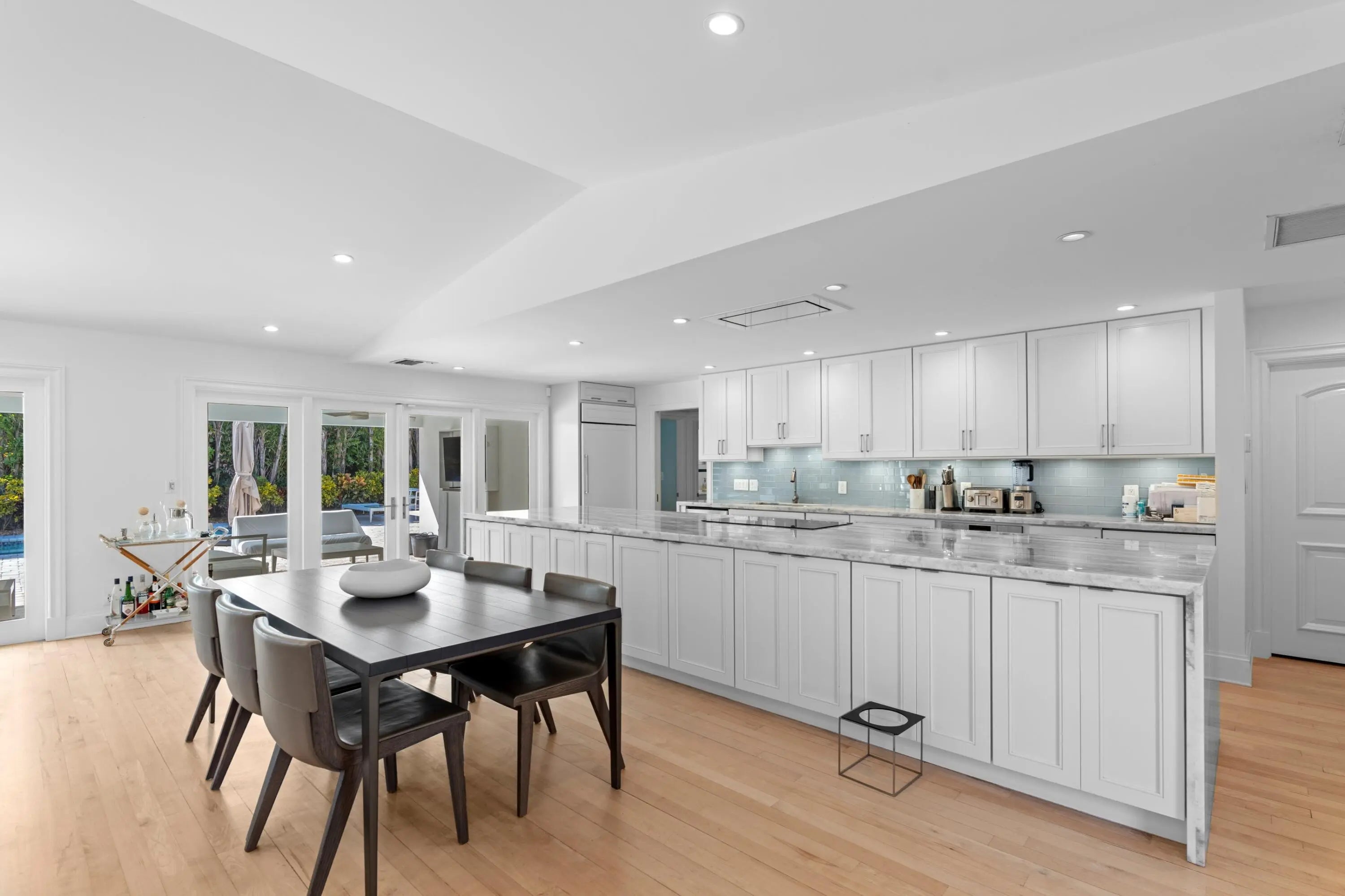 Available Feb 1, 2026 - Prime Rental Opportunity: Designer-Renovated SoSo Home with Private Pool & Spa. Experience South-of-Southern (SoSo) living in this stunning, fully renovated single-story residence, ideally positioned for quick Intracoastal access. The home features a highly desirable open-concept floor plan with expansive living spaces bathed in natural light, accentuated by soaring vaulted ceilings and elegant maple hardwood floors throughout. At the heart of the home is a spectacular gourmet kitchen, boasting a large entertaining island and a suite of professional-grade appliances by Wolf, Sub-Zero, and Cove. This four-bedroom offers every modern convenience, including impact-rated windows and doors for superior protection and energy efficiency, and a large two-car garage