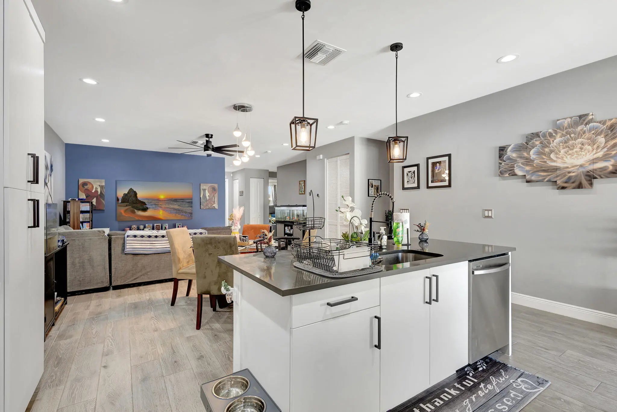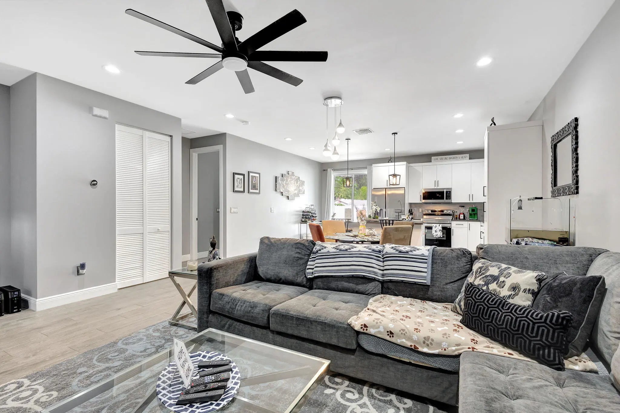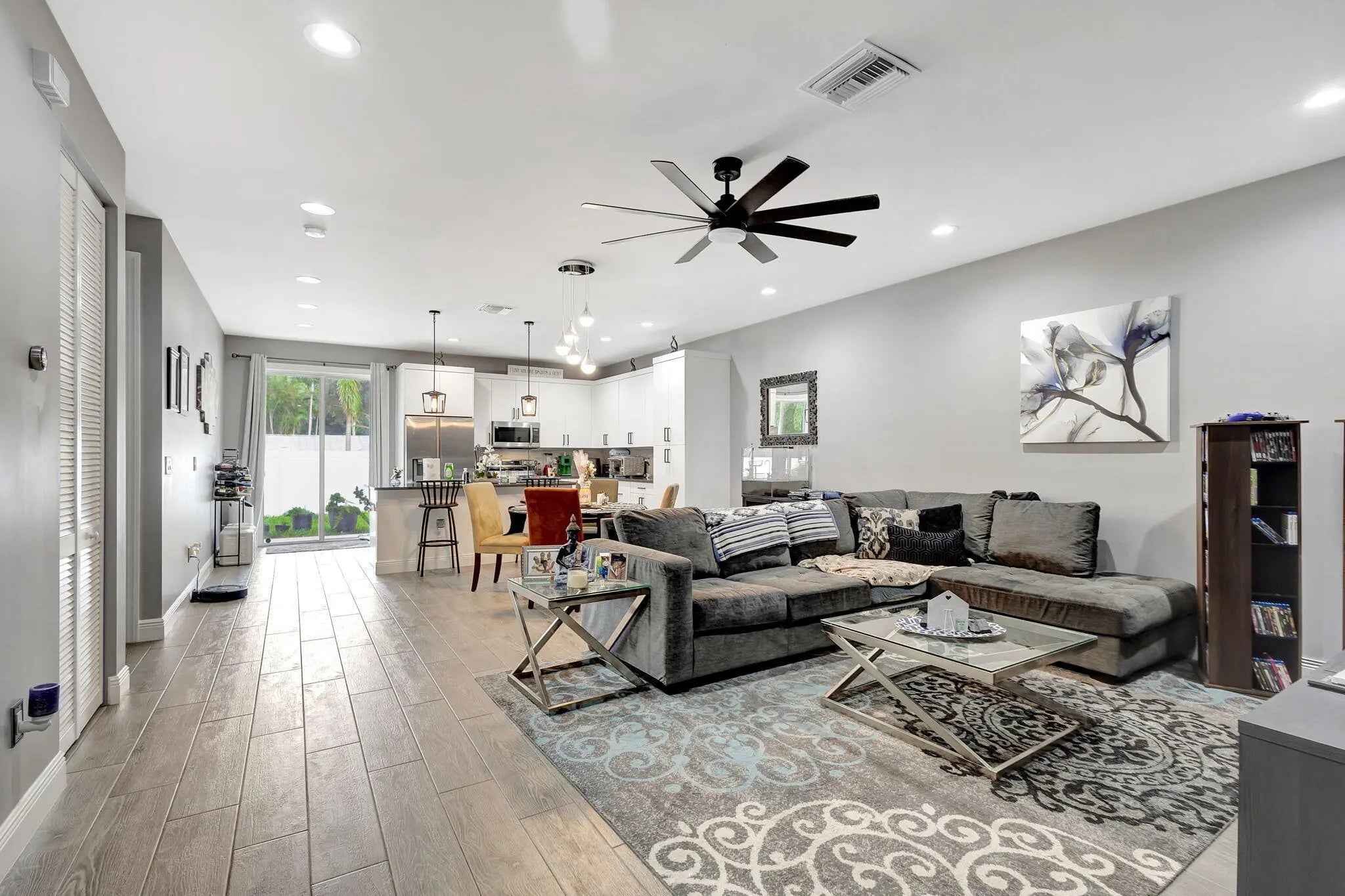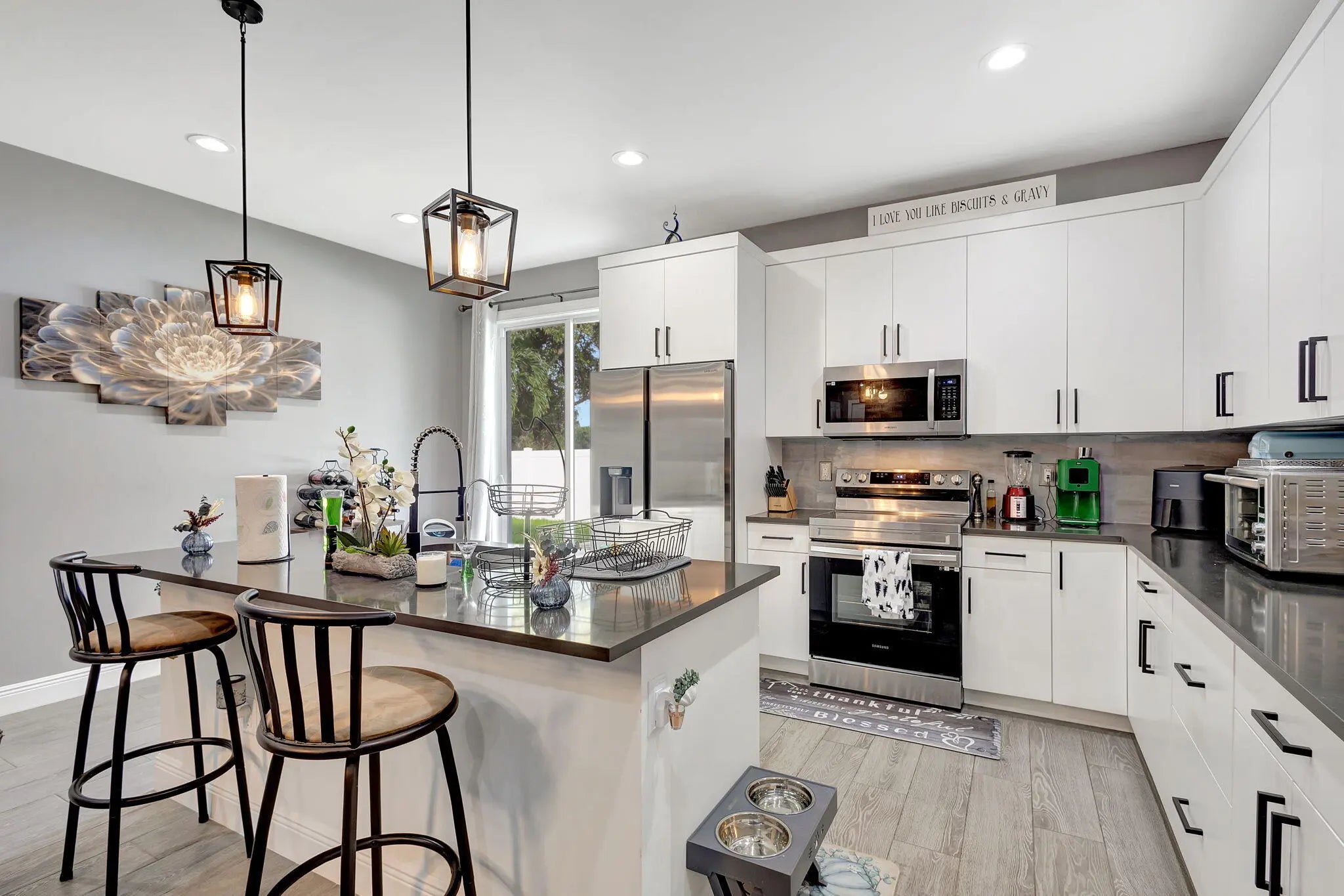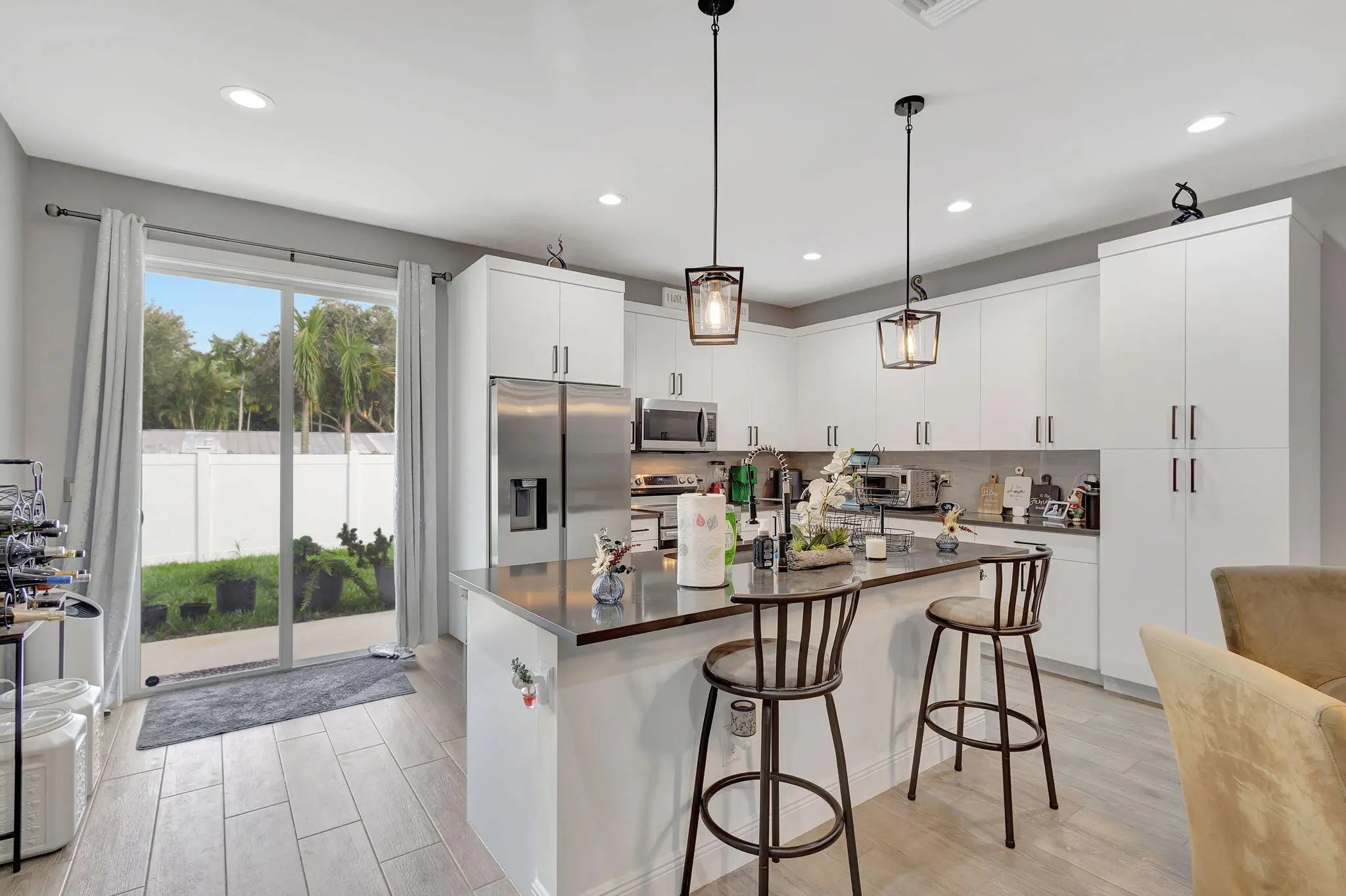Stunning New Construction 2023 in Prime Location! Discover the charm of this beautifully designed 3-bedroom, 2-bathroom home featuring modern finishes and thoughtful details throughout. Step inside to find an open floor plan with high 9¼-foot ceilings, sleek 8-foot doors, and elegant tile flooring. The kitchen boasts 42'' cabinets, a quartz-topped center island, and plenty of space for culinary creations. Enjoy the convenience of an interior laundry room, a spacious 1-car garage with extended driveway, and a private, fenced backyard perfect for relaxing with your morning coffee. Water treatment system added as well as solar panels. Schedule your tour today and experience the cozy elegance of this exceptional home.
