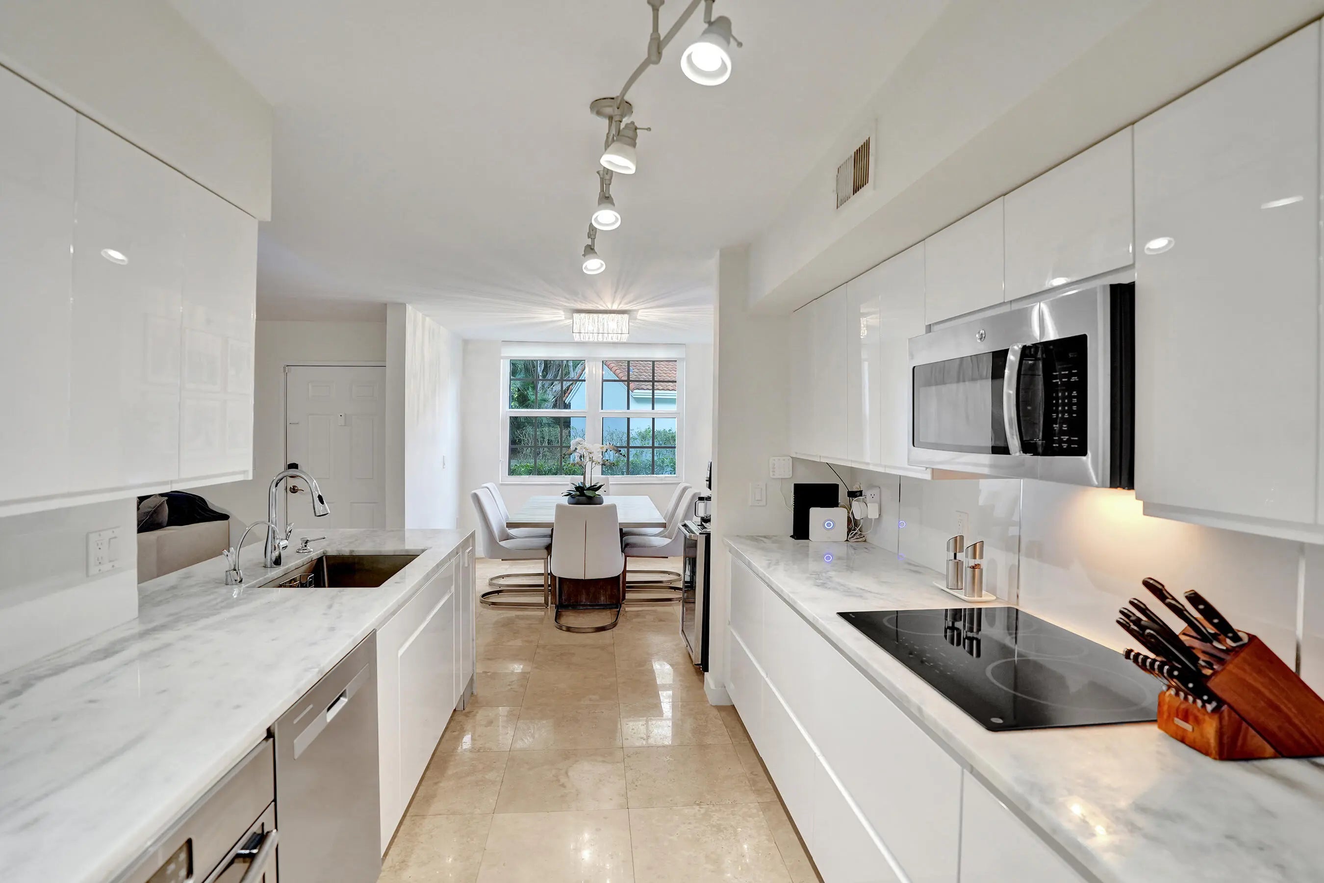 Only updated unit on the market w/ hurricane impact windows + doors! Completely renovated 1st-floor corner condo in gated Bocar w/ pool, tennis & pickleball. Can lease right away! No expense spared! Marble floors, stunning modern kitchen with sleek custom high-end cabinetry, real beautiful white quartzite waterfall countertops and stainless steel appliances. Bathrooms have gorgeous matching quartzite counters + dual sinks in the primary suite. Bonus space off the living room. Additional highlights include 2 covered patios, spacious bedrooms, walk-in custom closets, full-size in-unit laundry, and a newer AC. Can be rented immediately! The community was recently renovated with freshly painted exteriors and offers resort-style amenities: pool & spa, clubhouse, EV charging, tennis & pickleball courts, indoor racquetball, billiards, BBQ area, tiki bar, playground, and more. A 24-hour manned gate ensures peace of mind in one of Boca Raton's most sought-after locations. Top-rated schools, walking distance to shops and dining, and just a short drive to the beach!