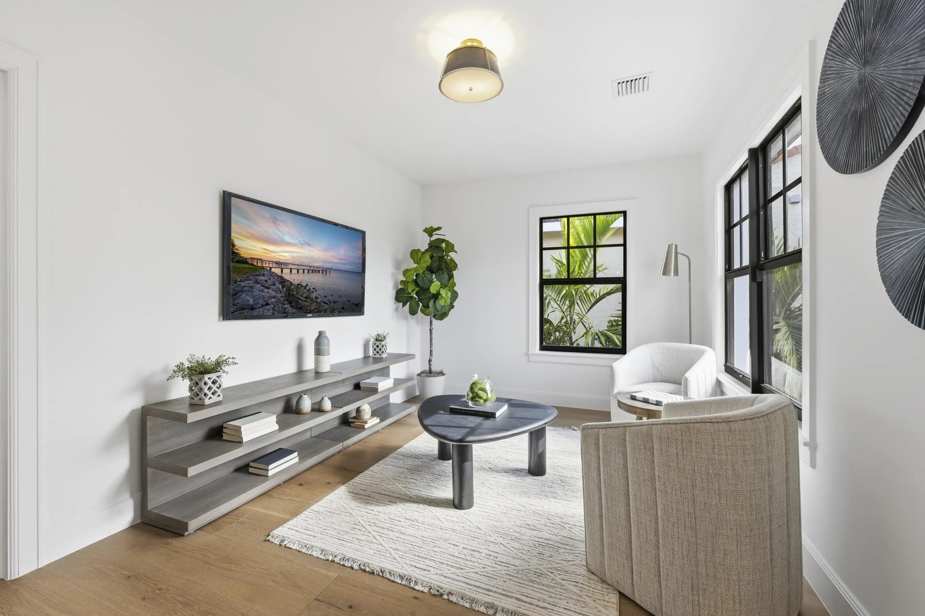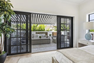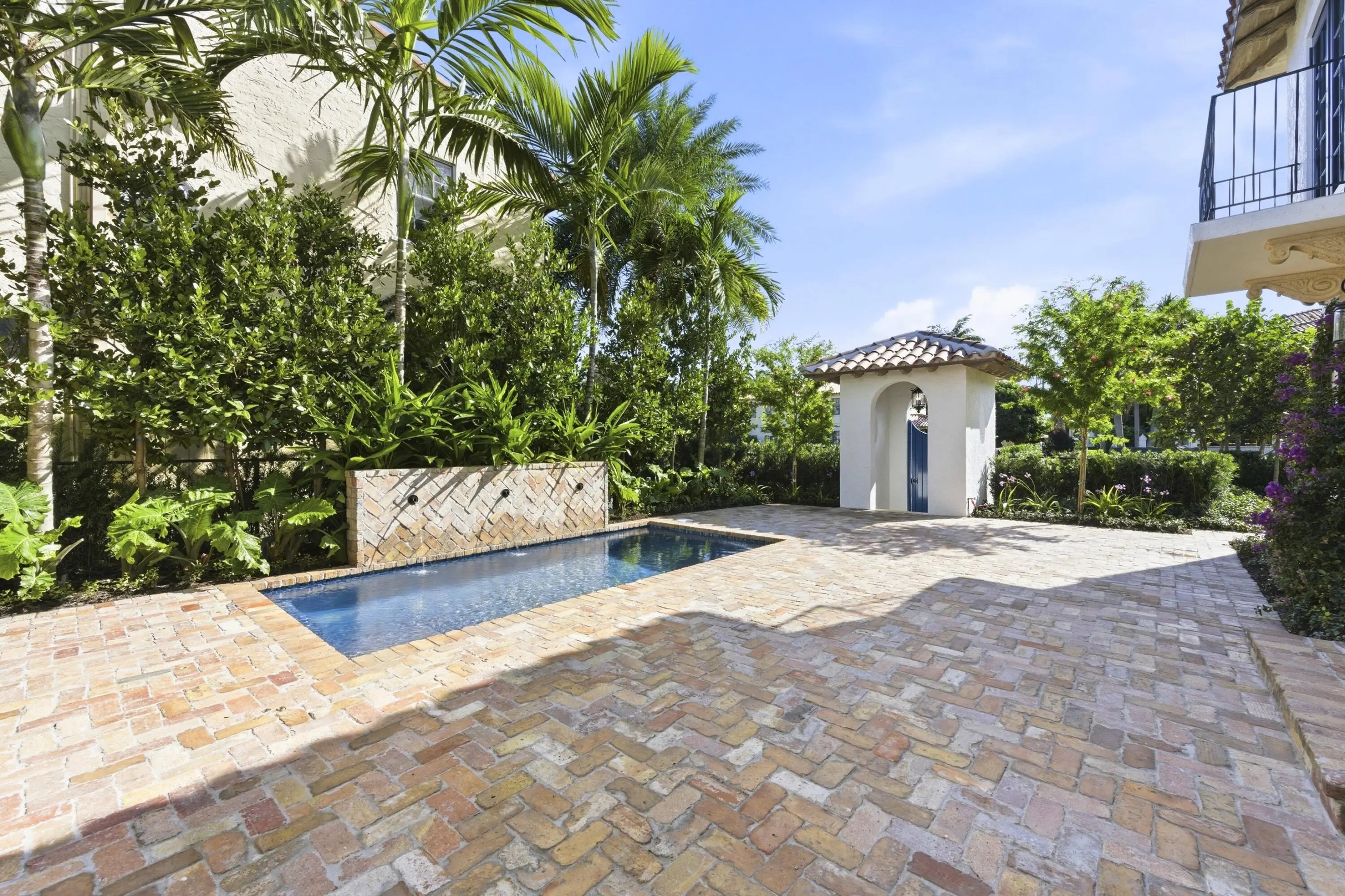 Step into a world where elegance and Spanish-Mediterranean romance come together in perfect harmony. Originally built in 1926 and masterfully reimagined with a full renovation in 2025, this architectural jewel invites you through lush, manicured landscaping into a private Chicago-brick courtyard centered around a shimmering saltwater plunge pool with a tranquil water feature, a serene introduction to the timeless beauty within. Inside, the foyer welcomes you with a signature spiral staircase. At the focal point of the formal living room an original wood burning fireplace and expansive sliders that frame the courtyard and bathe the interiors in natural light. Adjacent, a warm and intimate den/office offers a quiet retreat. The formal dining room is a masterpiece of craftsmanship, featuring a custom built-in banquette, wall-to-wall cabinetry with pull-out drawers, and a floor-to-ceiling wine cooler, creating a setting worthy of unforgettable evenings. The kitchen exudes timeless sophistication with marble countertops, a full slab backsplash, and a Thermador stainless-steel appliance suite, including a 6-burner gas range with griddle, an exquisite stage for the true chef. A seamless transition leads to the inviting family room and club room, both opening to the home's rear courtyard, where a summer kitchen and roll-down phantom hurricane screens set the tone for effortless indoor-outdoor living. Around the property, mature Calophyllum trees form a natural privacy hedge, enveloping each courtyard in a world of its own. Even the lanai reflects uncompromising attention to detail, showcasing Pecky cypress tongue-and-groove ceilings that add texture, warmth, and architectural soul. A versatile bonus/storage room provides additional custom cabinetry, workspace, laminate floors, and a mini-split system, accessible from both the summer kitchen and side courtyard. Ascending to the second floor, you'll find four beautifully appointed ensuite bedrooms, each with its own palette of mosaic and marble tile selections, giving every space a unique sense of artistry and refinement. A charming sitting room/loft with a private balcony completes the upstairs haven, an intimate perch overlooking the estate's tranquil courtyards. The primary suite is a true retreat with an oversized private balcony, spa inspired bathroom and a custom walk-in closet. This redesigned 1926 treasure is more than a home; it is an escape into another world, where history, craftsmanship, and Mediterranean romance blend into an unforgettable living experience. Perfectly positioned within walking distance of Flagler Drive and the Intracoastal Waterway, this home offers a rare opportunity to own a piece of West Palm Beach history reborn for todays lifestyle.