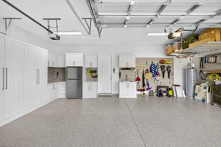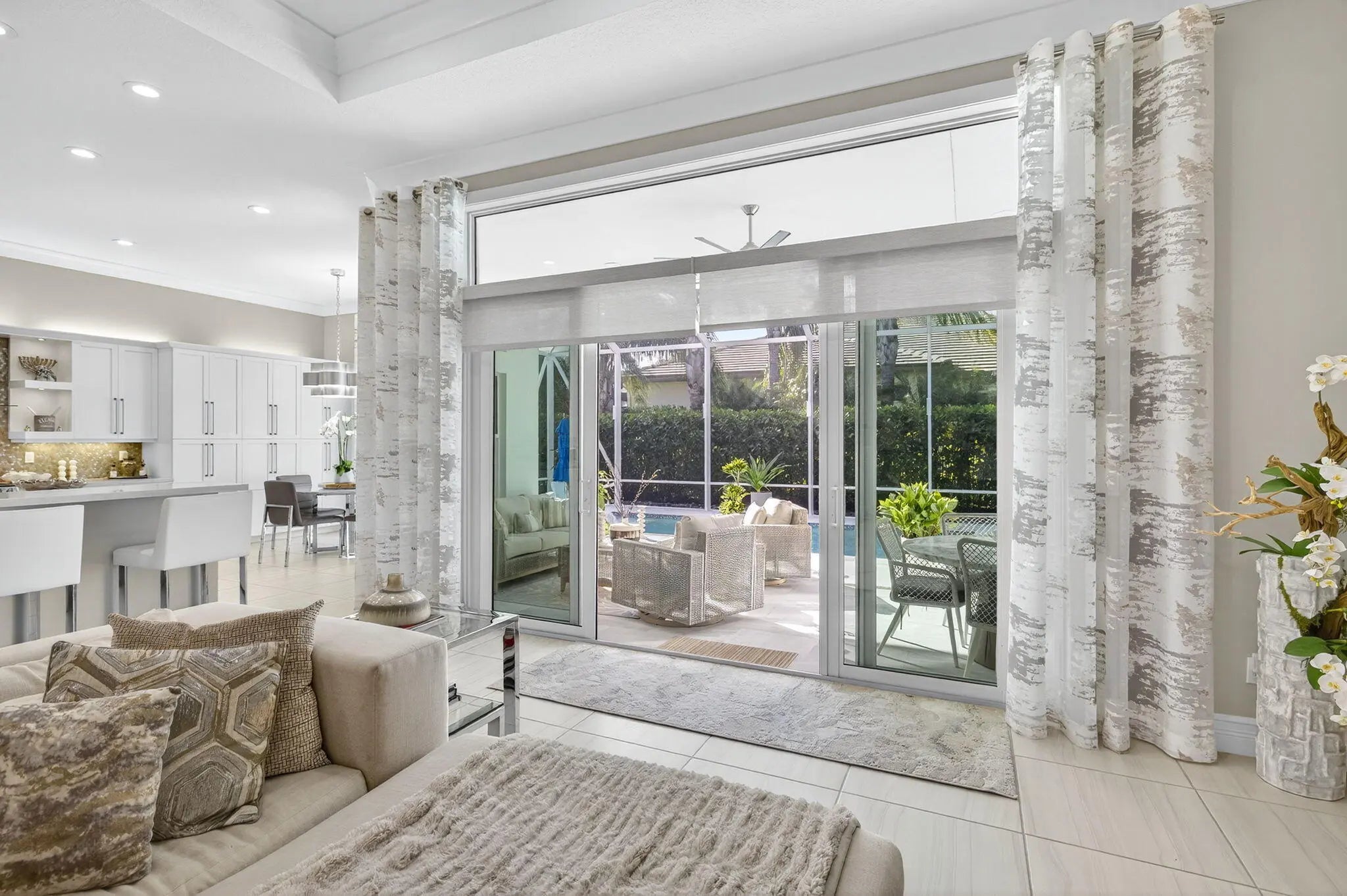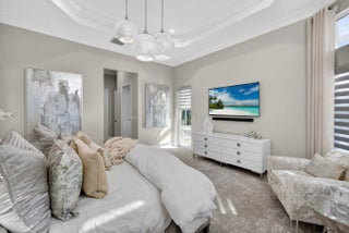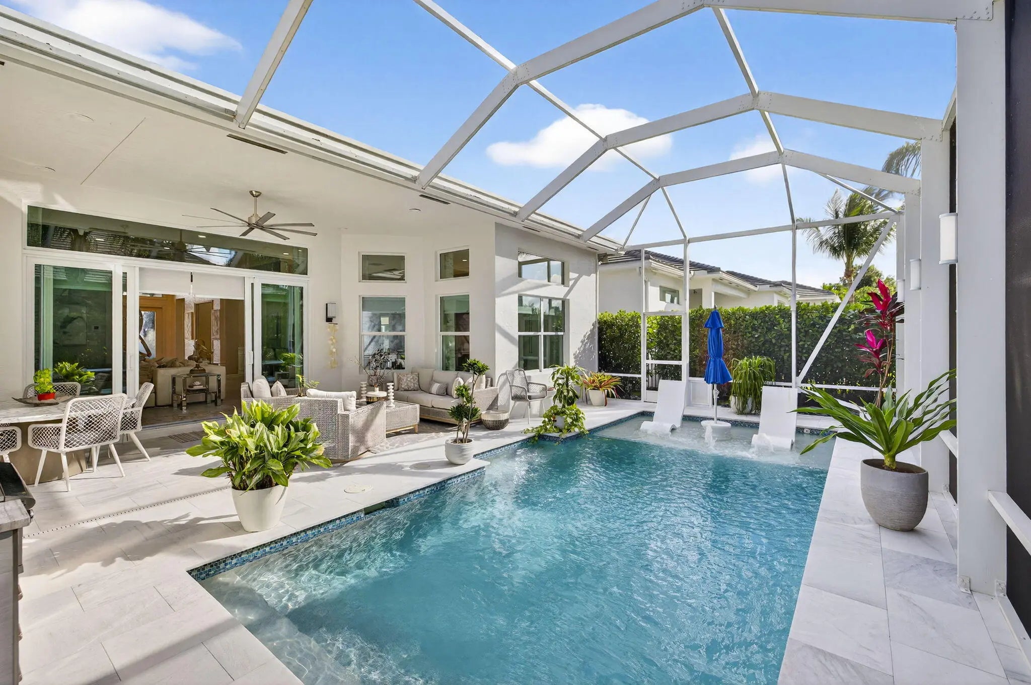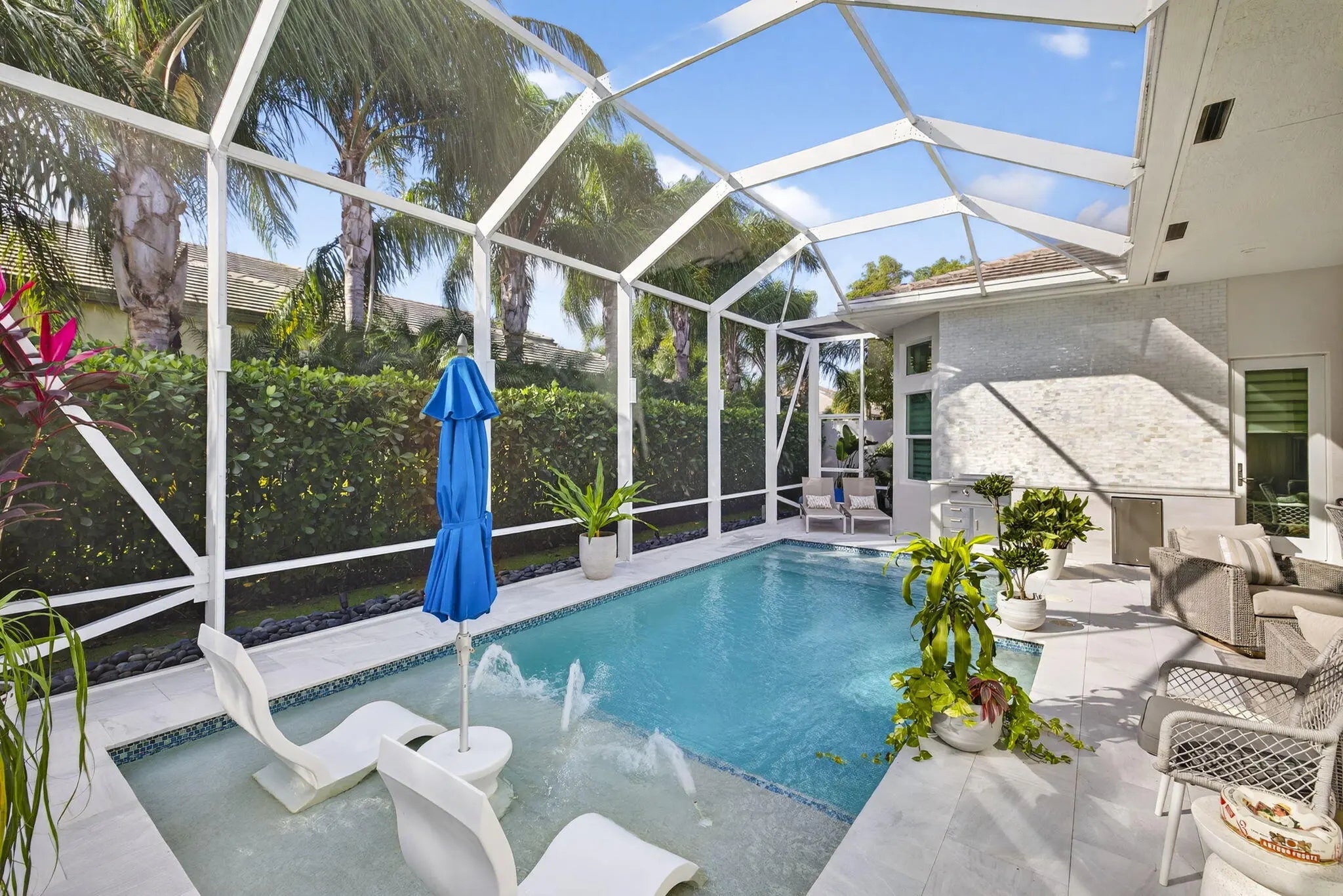This 3BR/3.5BTH pus den single-family home is an absolute showstopper, perfectly situated on an expansive fenced in corner lot that's been meticulously designed by a renowned landscape architect. The exterior is a paradise with a saltwater pool featuring a water terrace and elegant fountains, surrounded by newly installed white marble pavers. The outdoor area is further enhanced by a built-in kitchen, complete with a griddle, wine and beverage refrigerator, granite countertops, and a stylish tile wall. Inside, the home exudes luxury and comfort with crown molding in every room and a state-of-the-art Aroma 360 air diffuser seamlessly integrated into the HVAC system. The family room is a cozy yet sophisticated space with an electric fireplace, while a nearby built-in bar area boasts a mirrored wall glass shelves, a wine fridge, and a Scottsman ice maker. The kitchen is a chef's dream, featuring new oven and dishwasher, numerous pull-outs in the cabinets for effortless organization. The finished garage is as functional as it is beautiful, with custom-built storage, large cabinets, an overhead luggage rack, and epoxy flooring. Every bedroom is outfitted with custom closets, ensuring ample storage, while custom window treatments and motorized shades throughout the home add to the elegance. Gorgeous light fixtures and thoughtful details are found throughout, making this home a perfect blend of luxury, comfort, and convenience.