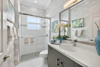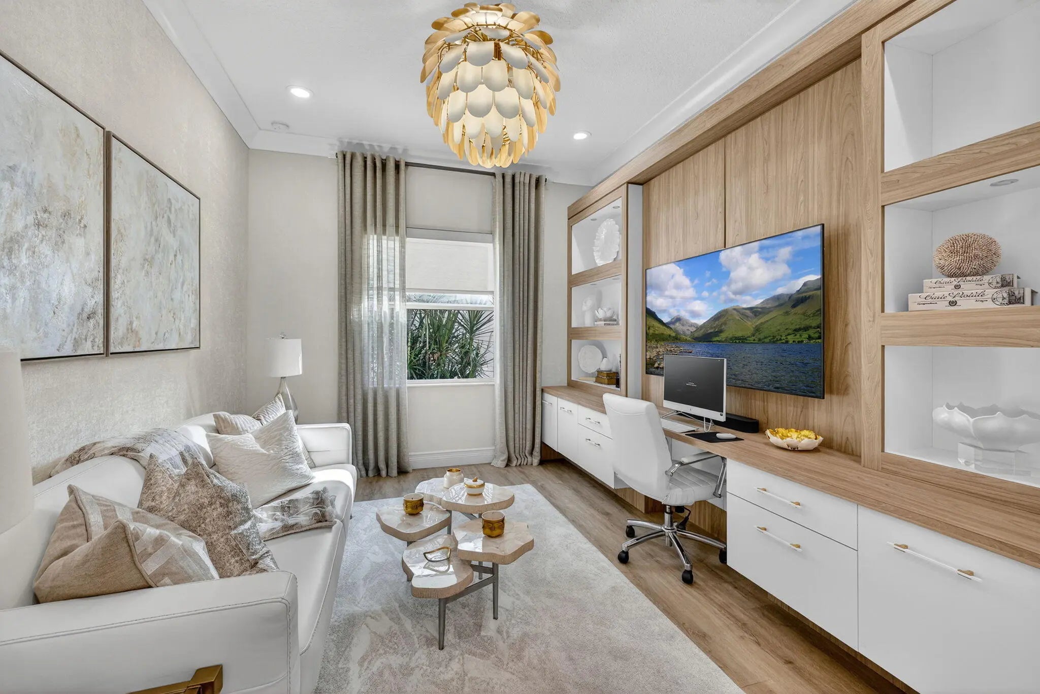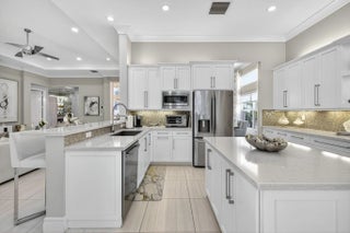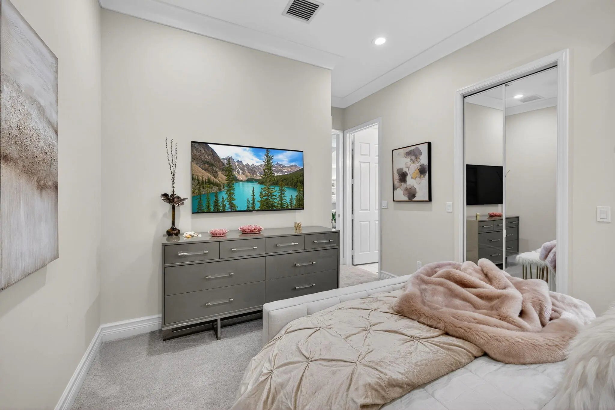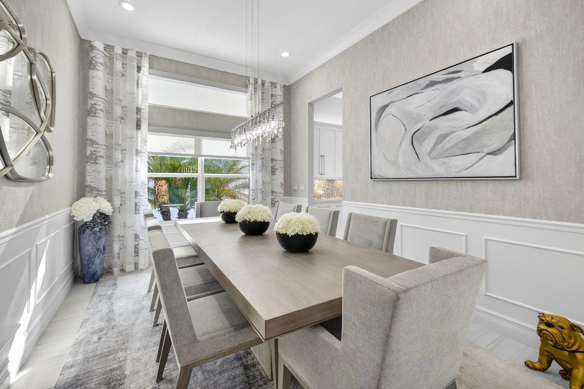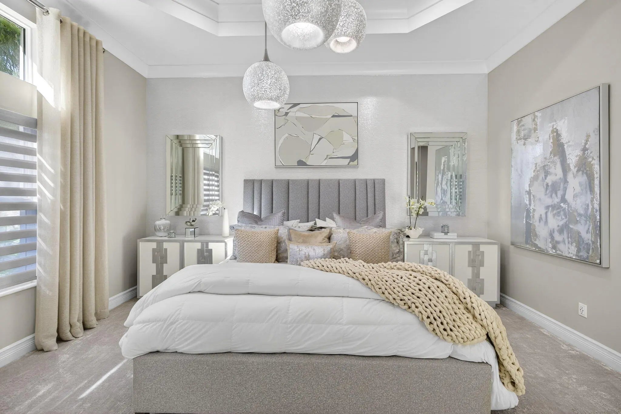 This 3BR/3.5BTH pus den single-family home is an absolute showstopper, perfectly situated on an expansive fenced in corner lot that's been meticulously designed by a renowned landscape architect. The exterior is a paradise with a saltwater pool featuring a water terrace and elegant fountains, surrounded by newly installed white marble pavers. The outdoor area is further enhanced by a built-in kitchen, complete with a griddle, wine and beverage refrigerator, granite countertops, and a stylish tile wall. Inside, the home exudes luxury and comfort with crown molding in every room and a state-of-the-art Aroma 360 air diffuser seamlessly integrated into the HVAC system. The family room is a cozy yet sophisticated space with an electric fireplace, while a nearby built-in bar area boasts a mirrored wall glass shelves, a wine fridge, and a Scottsman ice maker. The kitchen is a chef's dream, featuring new oven and dishwasher, numerous pull-outs in the cabinets for effortless organization. The finished garage is as functional as it is beautiful, with custom-built storage, large cabinets, an overhead luggage rack, and epoxy flooring. Every bedroom is outfitted with custom closets, ensuring ample storage, while custom window treatments and motorized shades throughout the home add to the elegance. Gorgeous light fixtures and thoughtful details are found throughout, making this home a perfect blend of luxury, comfort, and convenience.