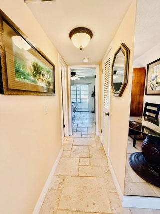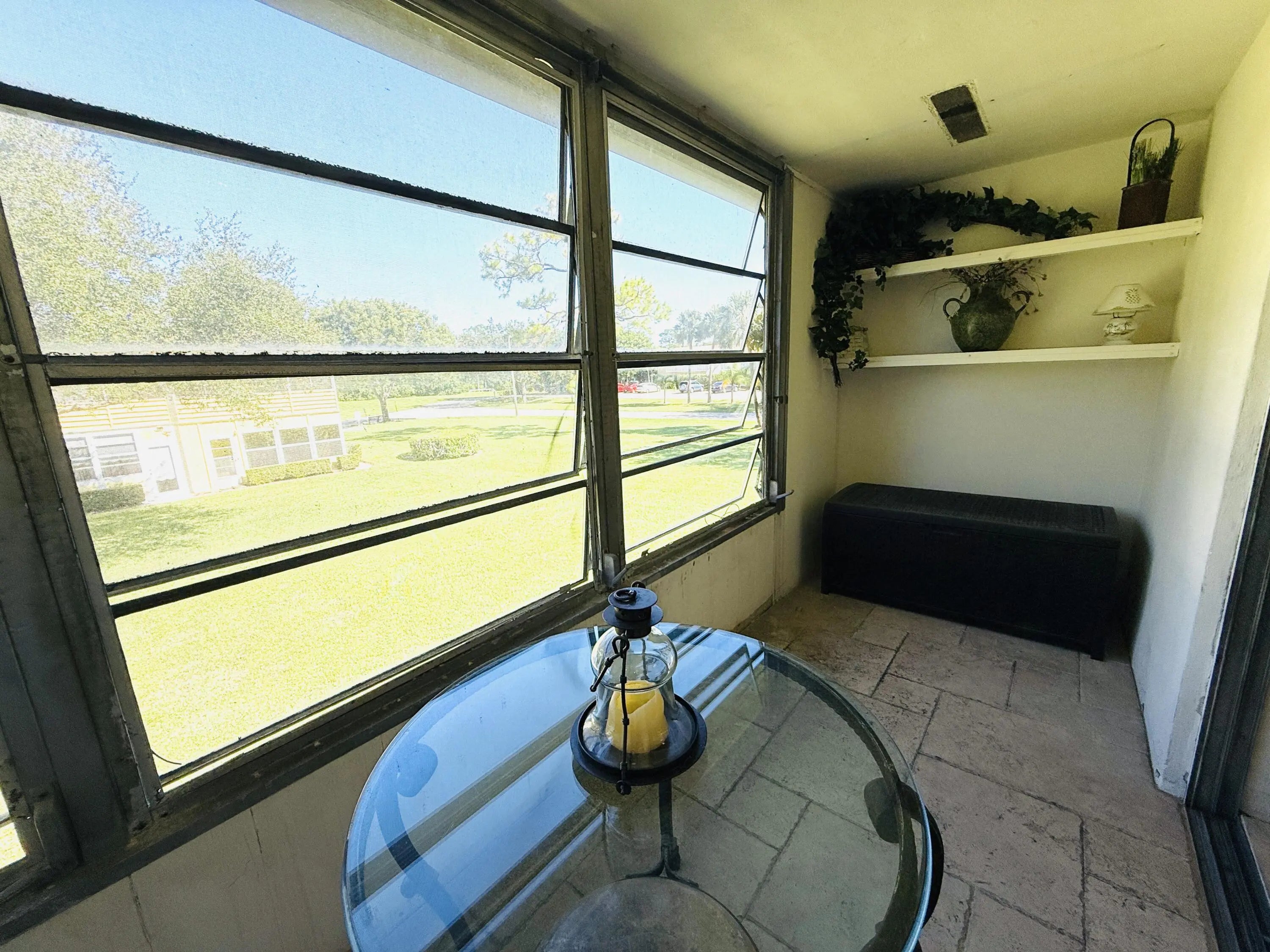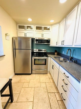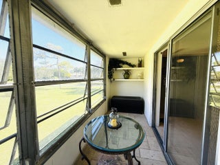 Live the good life in this sunny and cheerful 2nd floor TURNKEY unit tastefully decorated with new French cut travertine flooring & Tommy Bahama furniture. Living room features an oversized queen sofa sleeper couch & large-screen TV. Large modern custom closet with sliding glass doors. Enjoy your private screened-in patio overlooking the garden. Basic cable, 1 parking place & pest control included with rent. Bus stop on corner & bike rack on premises. Pool within walking distance! NEW ROOF 2023. NEWLY PAINTED BLG. Very well-managed owner-occupied building. ESA and Service animals only with proper documentation. Gated entrance and round- the-clock 24-hr. security. Amenities galore! From theater to bocce ball you will have it all!
