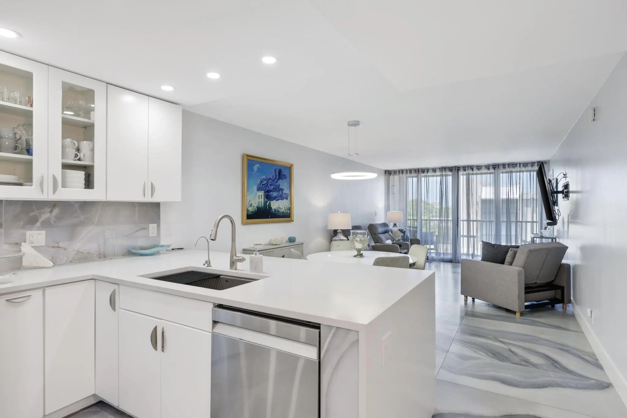 Move-in ready and fully furnished, this beautifully renovated waterfront penthouse is located in Boca's coveted Boaters Dream community. Featuring a custom floor plan, elegant Italian porcelain tile throughout, a luxurious master suite with a spa-like bathroom, and Samsung smart appliances. Recent upgrades include new AC, ductwork, electrical and plumbing systems, and impact windows and doors. Situated in a serene and quiet location, with impressive amenities: 24-hour manned security, five swimming pools, shuffleboard, tennis courts, and clubhouse. The condo fee covers building insurance, water, hot water, cable, and security, with fully funded structural reserve study and a 30-year assessment-free outlook. This turnkey penthouse is perfect for an active, luxurious lifestyle!