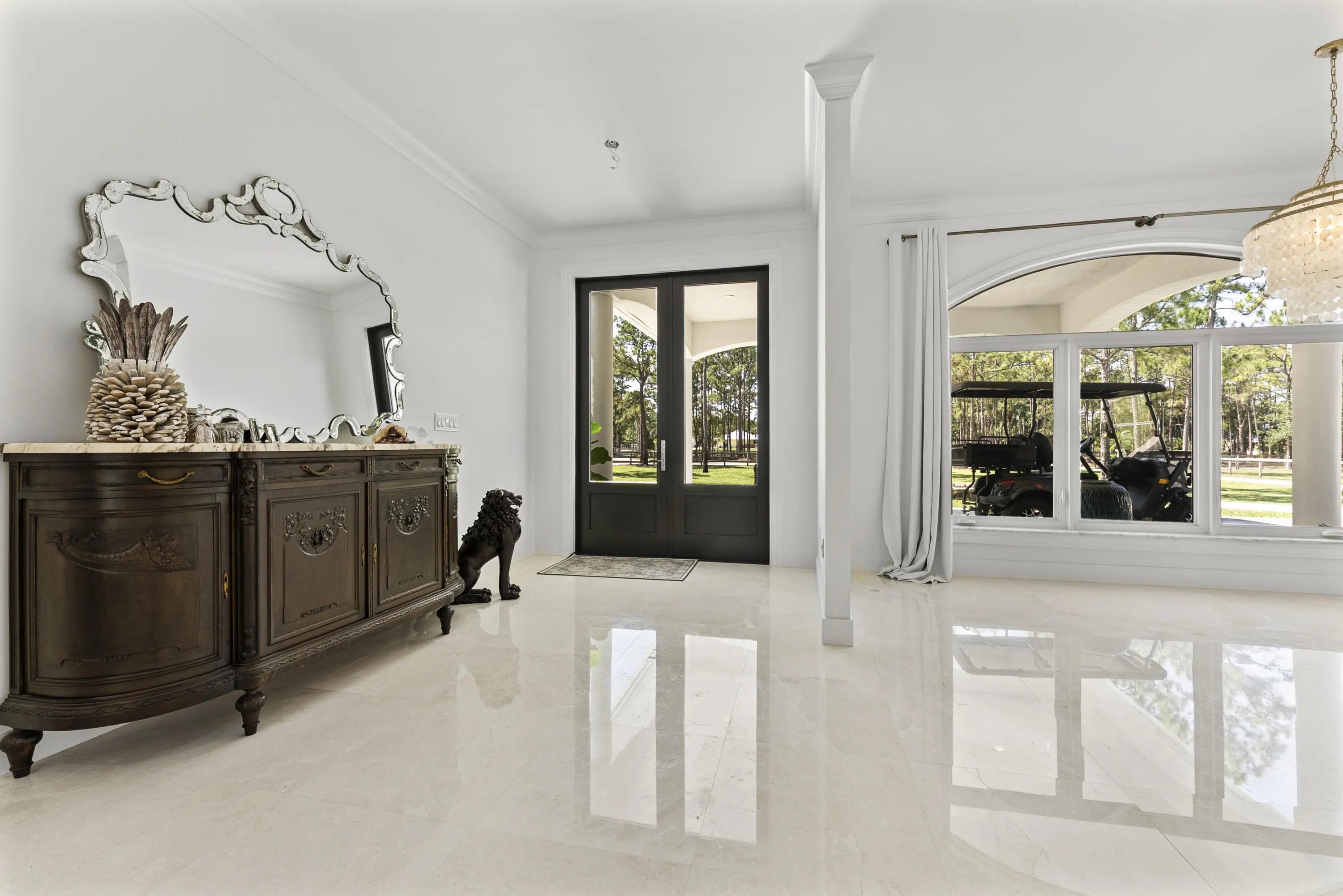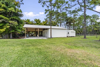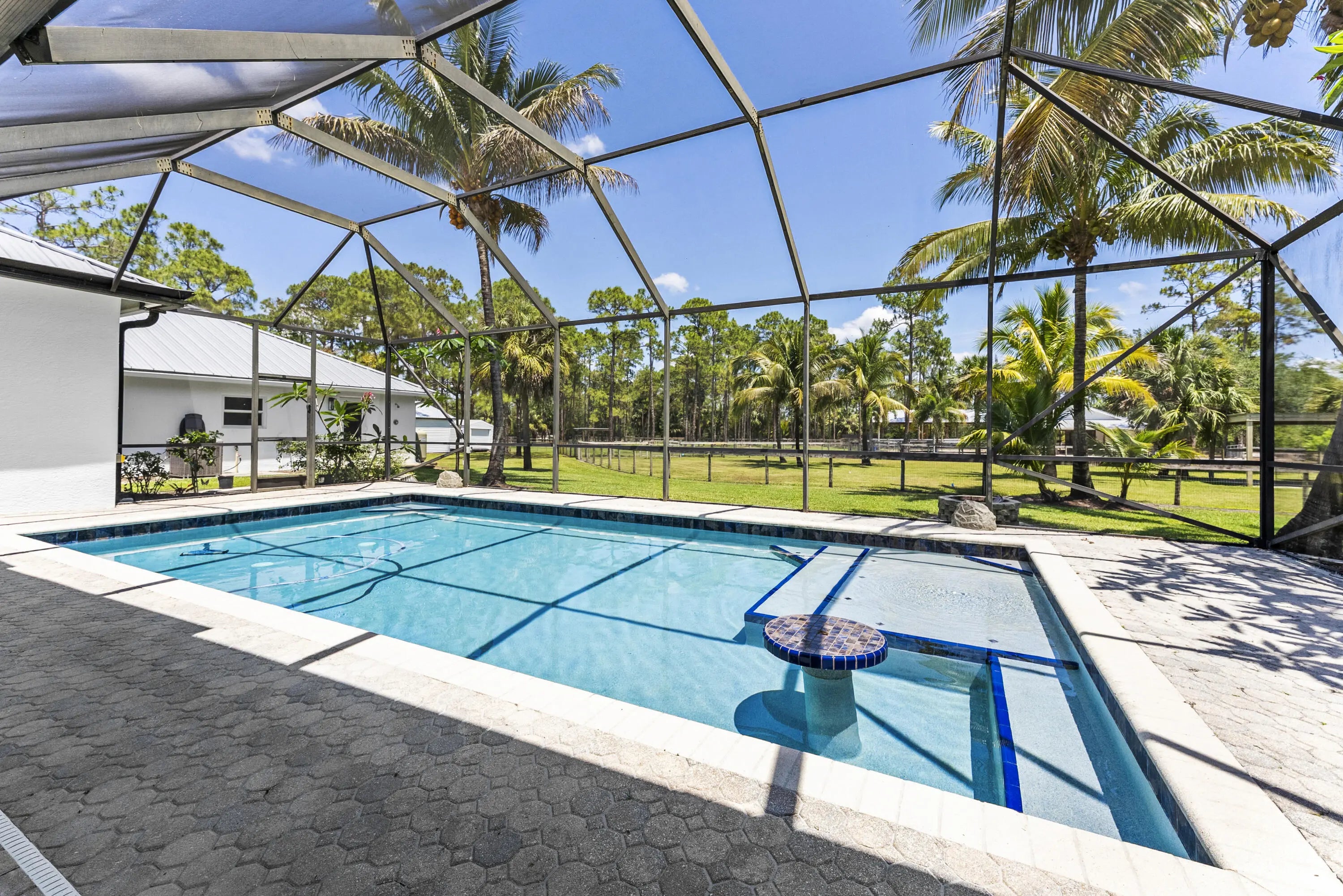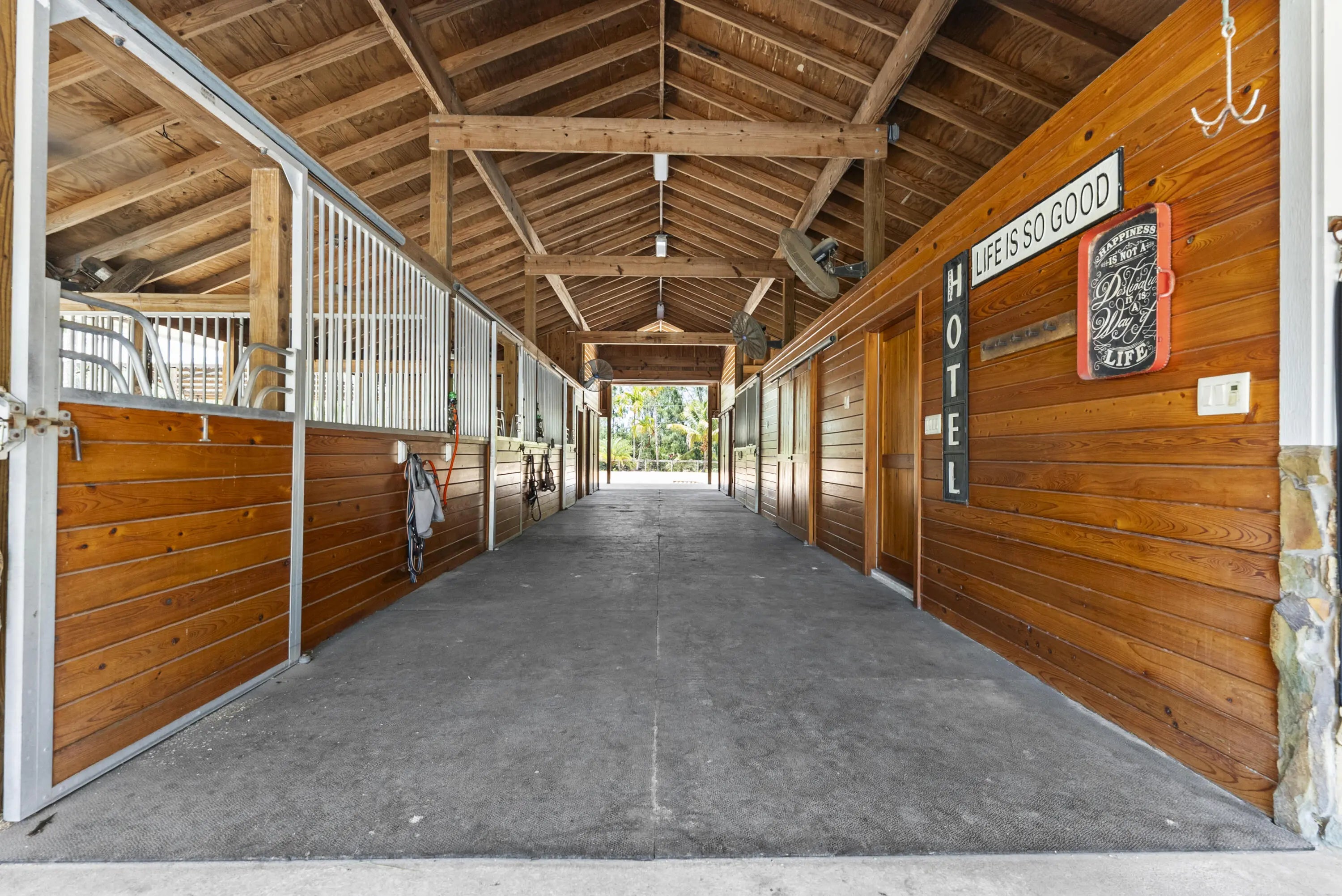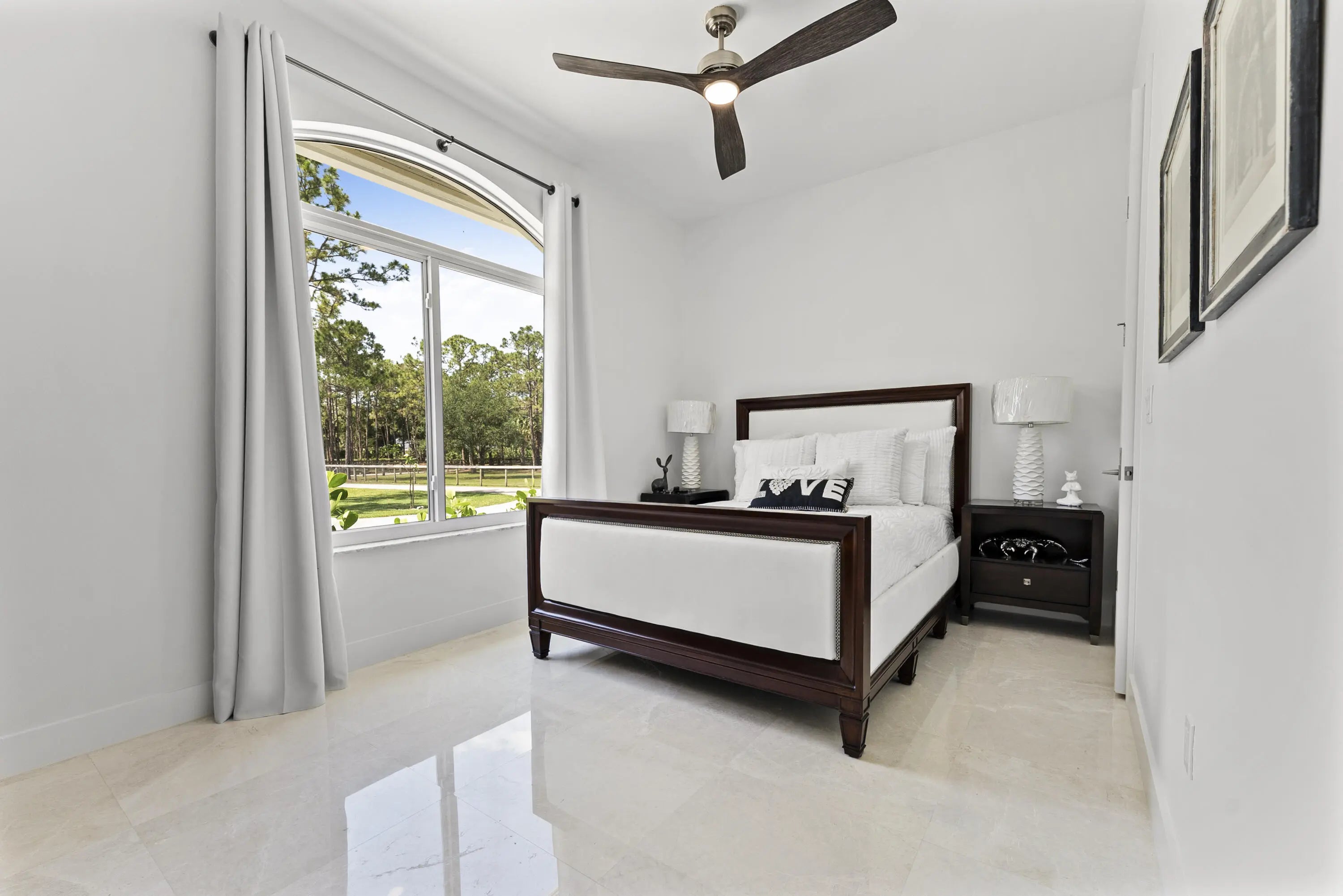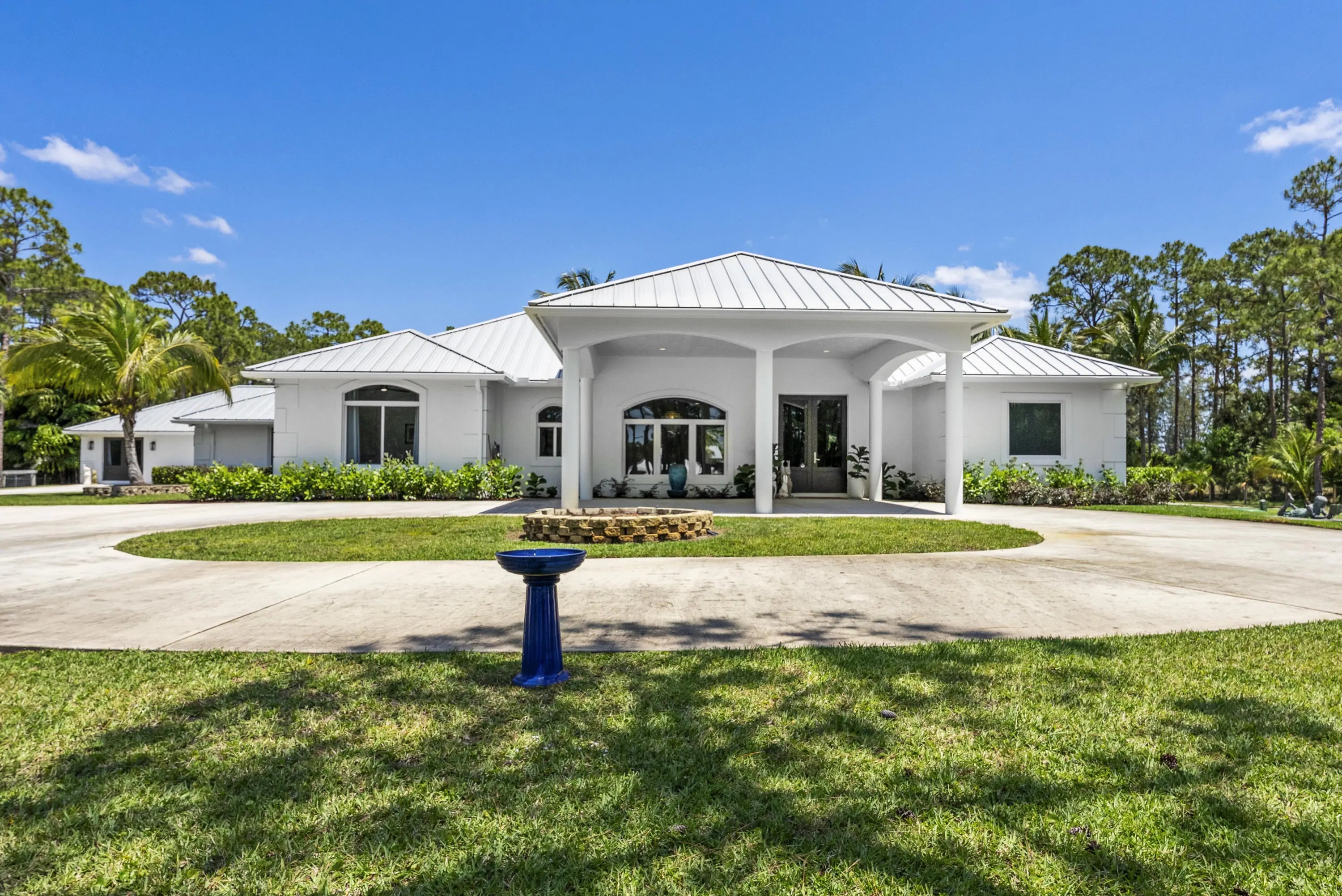 A masterclass in modern elegance and equestrian living, this completely renovated Caloosa estate blends minimalist design with exceptional function across 5 private, fully fenced, and irrigated acres. Offering 5 bedrooms, 5 bathrooms, and nearly 5,000 square feet of refined living space, every inch of this residence has been curated for effortless luxury and timeless sophistication. The residence features smooth walls and ceilings, impact glass throughout, and an abundance of natural light that highlights its modern, clean aesthetic. The designer kitchen is the heart of the home, showcasing elegant quartzite counters and backsplash, a large island, and Sub Zero refrigerator. A major highlight is the two bedroom, two bath guest house - a complete private residence with its own kitchen. The guest house also has a washer/dryer, all with the same high end finishes, and cabana bath. For equestrian enthusiasts, the property is truly exceptional. It includes two barns with six stalls, a riding arena, and manicured paddocks with a full drainage system, designed for optimal care and convenience. The barn is equipped with a fly control system, washer and dryer in the tack room, and thoughtfully planned ventilation and storage. A covered truck and trailer parking area, air-conditioned workshop building, and separate gated entry make this property as functional as it is beautiful. Recent updates include two new A/C units, new insulation and ducts throughout the main house and garage, a new drain field, water filtration system, and whole-property irrigation. New insulation and ducts throughout the main home and garage. This is acreage living without compromise, where contemporary design meets serene equestrian lifestyle. Located within the prestigious Caloosa community, residents enjoy access to over 30 miles of interior riding trails and a 32-acre horse park featuring a dressage arena, jump course, and cross-country area. Additional amenities include tennis and pickleball courts, a children's playground, basketball courts, and a private park with meeting facilities, all exclusive to Caloosa residents and their guests. Caloosa is a one-of-a-kind equestrian enclave with approximately 350 five-acre home sites, ideally positioned just 15 minutes from the Florida Turnpike, I-95, and The Gardens Mall, and 25 minutes from Downtown West Palm Beach and Palm Beach International Airport. It's a perfect blend of privacy, prestige, and accessibility,making it one of Palm Beach County's most coveted equestrian communities. With its rare combination of sleek modern design, world-class equestrian amenities, and thoughtful upgrades throughout, 14819 Broken Arrow Place offers an unparalleled opportunity to experience the best of Palm Beach Gardens' luxury acreage living. THIS IS THE NEW WELLINGTON - COME & ENJOY THE SPACE.