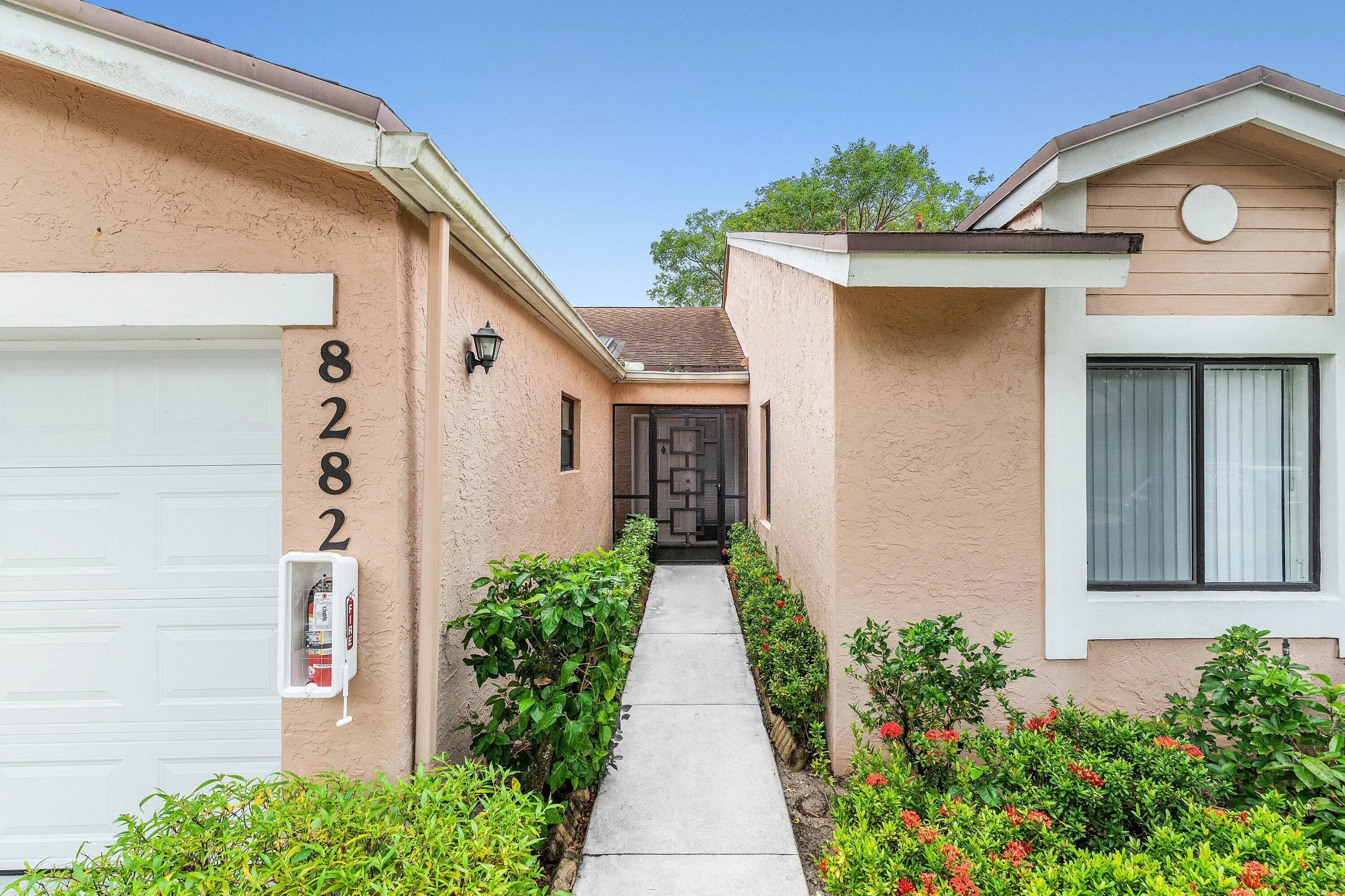 Charming 2 Beds/2 Baths Villa situated in desirable Gated 55+Whisper Walk. Enjoy lovely & tranquil lake views from your spacious Florida room. Villa is bright & features an eat-in kitchen, appealing split-bedroom floor plan, 2 full baths and a garage with 2 parking spaces in front. New roof being installed & assessment paid by sellers. Whisper Walk is beautifully maintained with lush landscaping, scenic lakes, and wide grassy passive parks. Amenities include internet, cable, water, insurance on outside, 6 pickleball courts, 7 tennis courts (can be lit for evening play), clubhouse, large pool & spa, sauna, fitness center, billiards room & library. Conveniently located in the heart of beautiful Boca Raton, Whisper Walk is minutes from premier shopping, dining, beaches & major airport