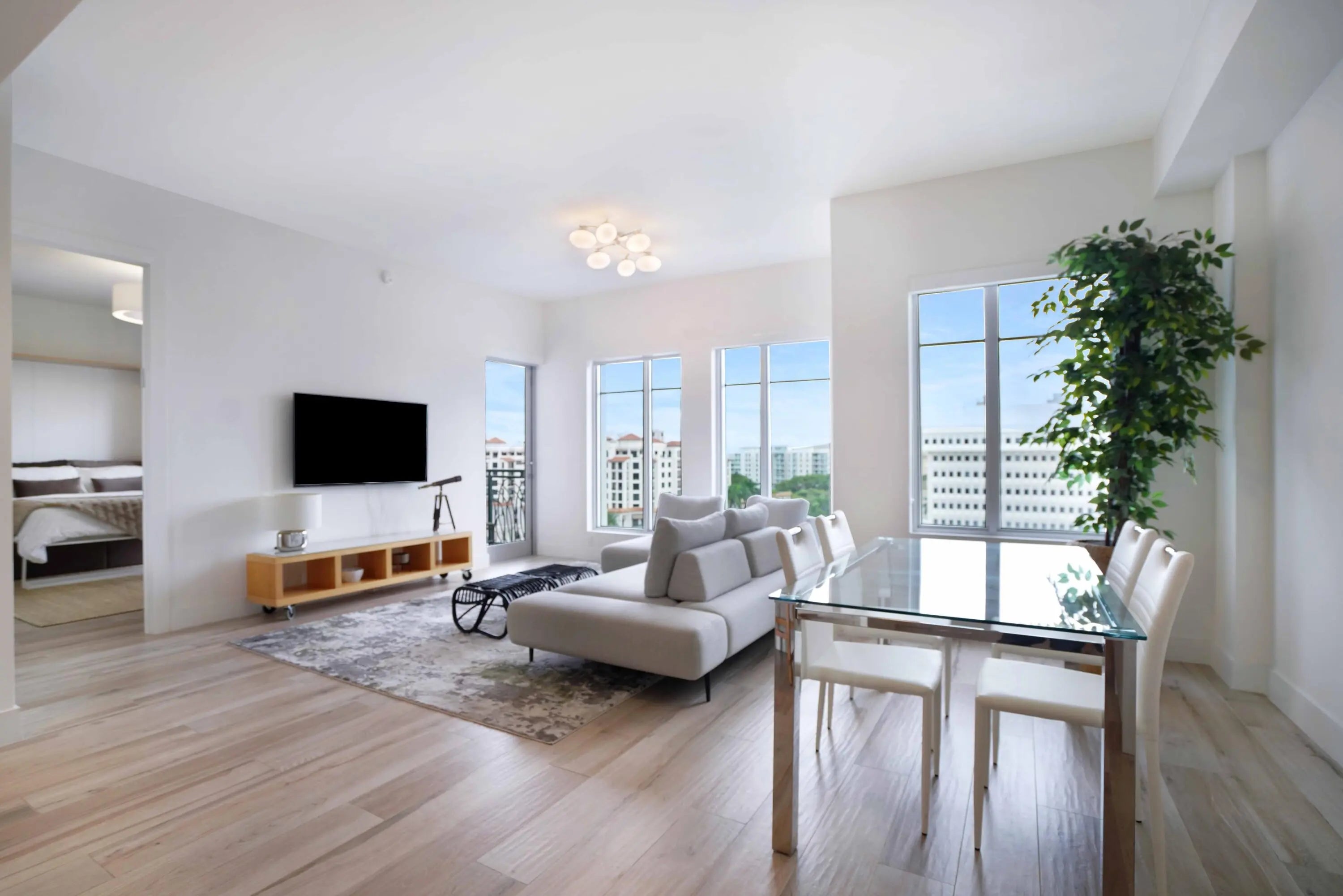 Residence 912 at Tower 155 | Boutique Pied-a-Terre Living in Boca Raton A polished retreat in the heart of Downtown Boca Raton, Residence 912 offers effortless sophistication and lock-and-leave ease. This thoughtfully designed one-bedroom residence lives generously, blending modern elegance with the intimacy of a true pied-a-terre. Soft natural light fills the open living space, complemented by Italian porcelain flooring and 10' ceilings. The kitchen includes Bosch appliances, Italian cabinetry, quartz countertops, and a waterfall island ideal for morning coffee or entertaining. The primary suite offers a serene escape, featuring a custom walk-in closet and a spa-inspired bath with floating dual vanities and a glass-enclosed shower. A private balcony provides the perfect setting for outdoor dining or relaxing with views of the vibrant cityscape. Additional features include an in-residence washer and dryer and access to Tower 155 amenities: rooftop pool and sundeck, state-of-the-art fitness center, steam and sauna rooms, residents lounge, business center, and 24-hour concierge. Available for annual or seasonal lease. Private and virtual tours available by appointment.