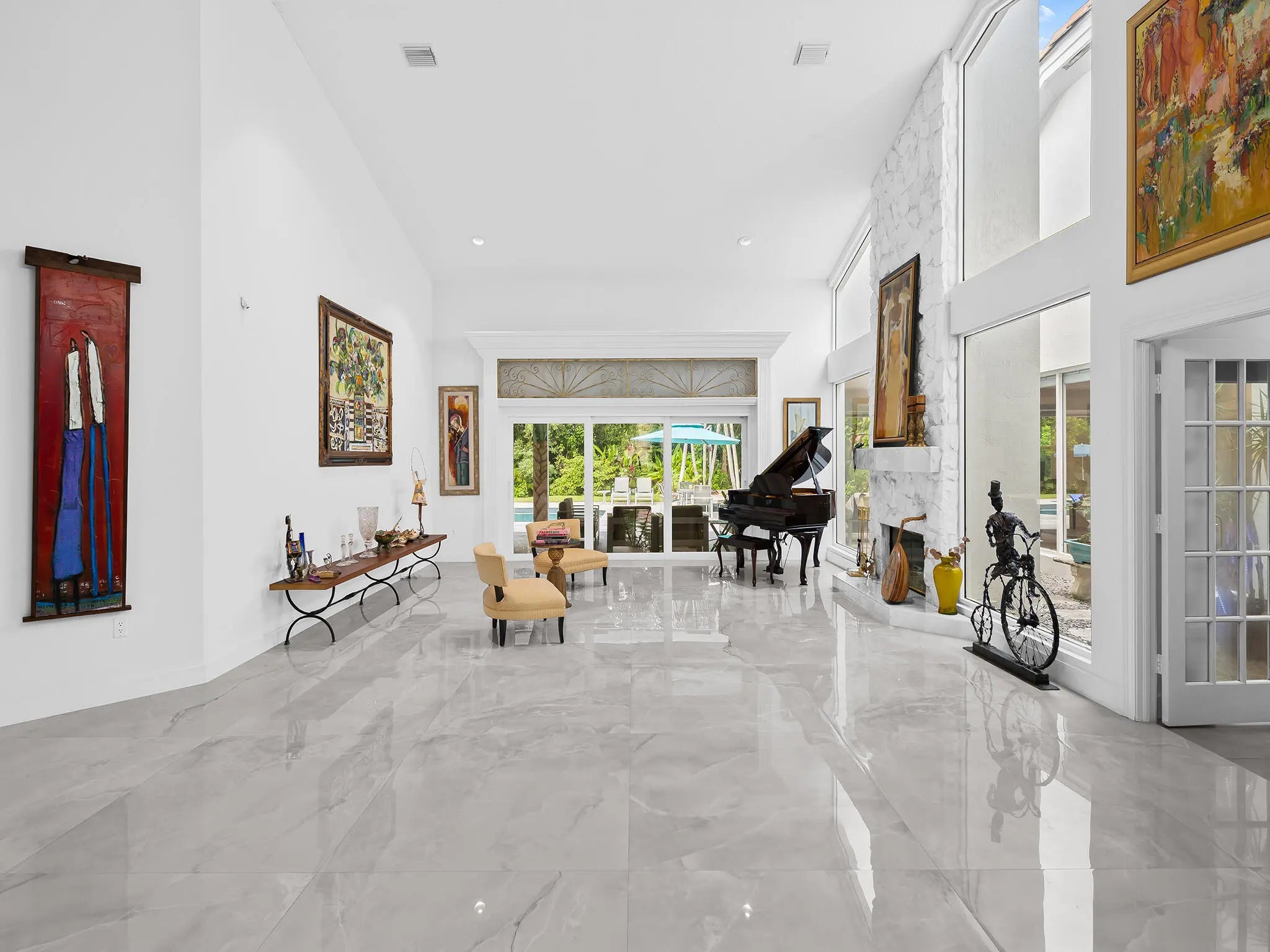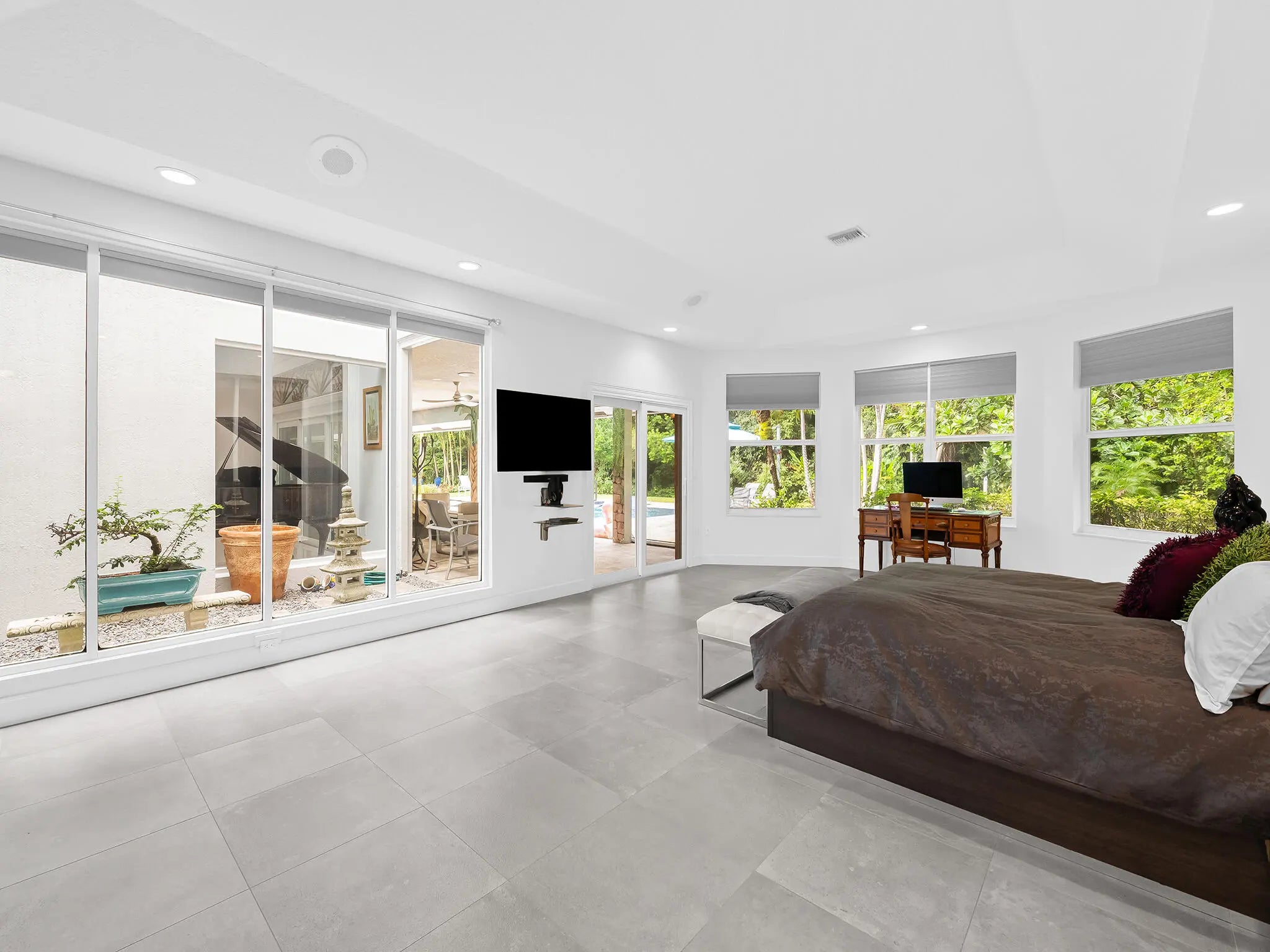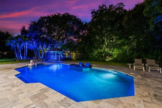 Welcome to this breathtaking 5-bedroom, 3.5-bath estate in the exclusive, guard-gated community of Fieldbrook Estates in the heart of Boca Raton. Situated on a full 1-acre lot of lush, tropical landscaping, this home offers the ultimate blend of privacy, elegance, and South Florida living. Flooded with natural light, the bright, modern interior showcases gorgeous updates and luxurious finishes at every turn. The expansive primary suite is a true retreat — a huge bedroom paired with a stunning, spa-like bath designed for ultimate relaxation. A sleek wet bar and a gorgeous gourmet kitchen with high-end appliances elevate the home's everyday comfort and entertainment appeal. Impact windows and doors throughout provide peace of mind and efficiency. The backyard is a resort-inspired paradise. Retractable screens separate a portion of the outdoor space, while beyond them awaits the rest of the incredible yard. Enjoy a sparkling pool and hot tub, a charming gazebo surrounded by lush gardens and colorful flowers, and a separate fire pit area perfect for relaxing under the stars. At night, the entire yard is illuminated with vibrant, color-changing lighting, creating a magical ambiance. With a massive driveway and spectacular indoor-outdoor amenities, this home truly embodies luxurious Boca Raton living - a rare opportunity in one of the area's most prestigious neighborhoods.