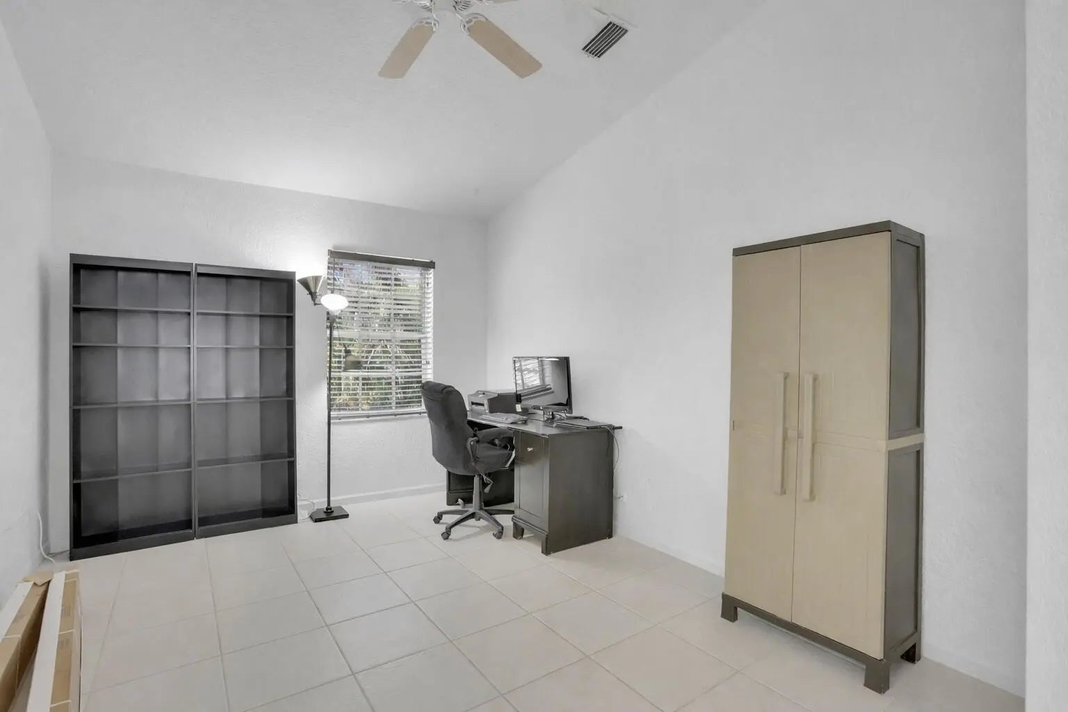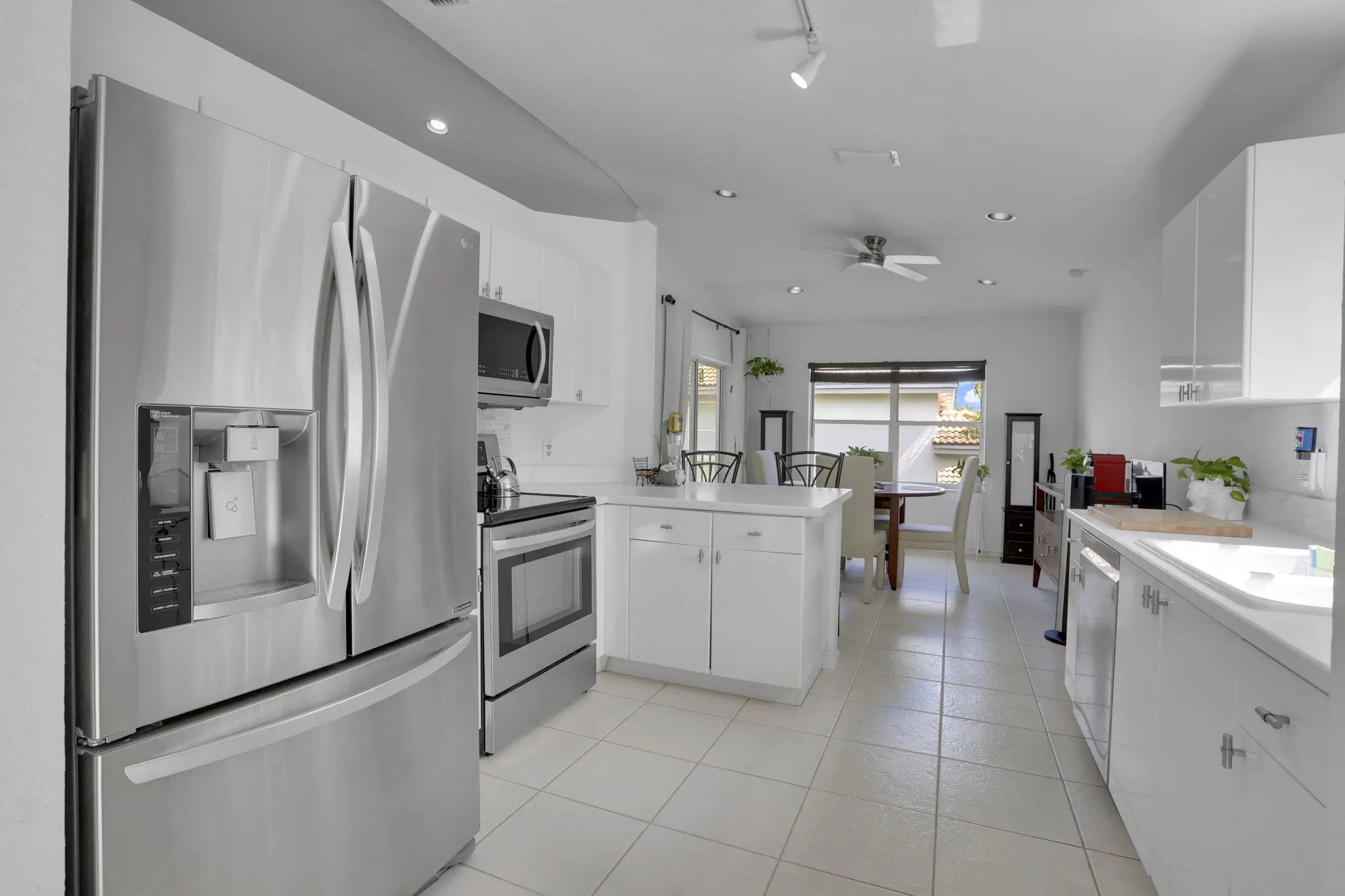 Beautiful end-unit coach home featuring 3 bedrooms, 2 baths, vaulted ceilings, and a private elevator. Relax on your large enclosed patio with serene lake views. Enjoy peace of mind with 2023 Roof, 2025 Exterior Paint, AC 2023 and HW 2020. The spacious primary suite offers two closets and a double-vanity ensuite, while the third bedroom functions perfectly as a den or office. Beautiful wood blinds throughout. The Grove is an active lifestyle community with a newly renovated clubhouse offering a saltwater pool, hot tub, fitness center, aerobics room, pickleball, tennis, shuffleboard, bocce, putting green, billiards, library, and more. Conveniently located near shopping, dining, major highways, the Delray Marketplace, and just minutes from the beach—experience Florida living at its best