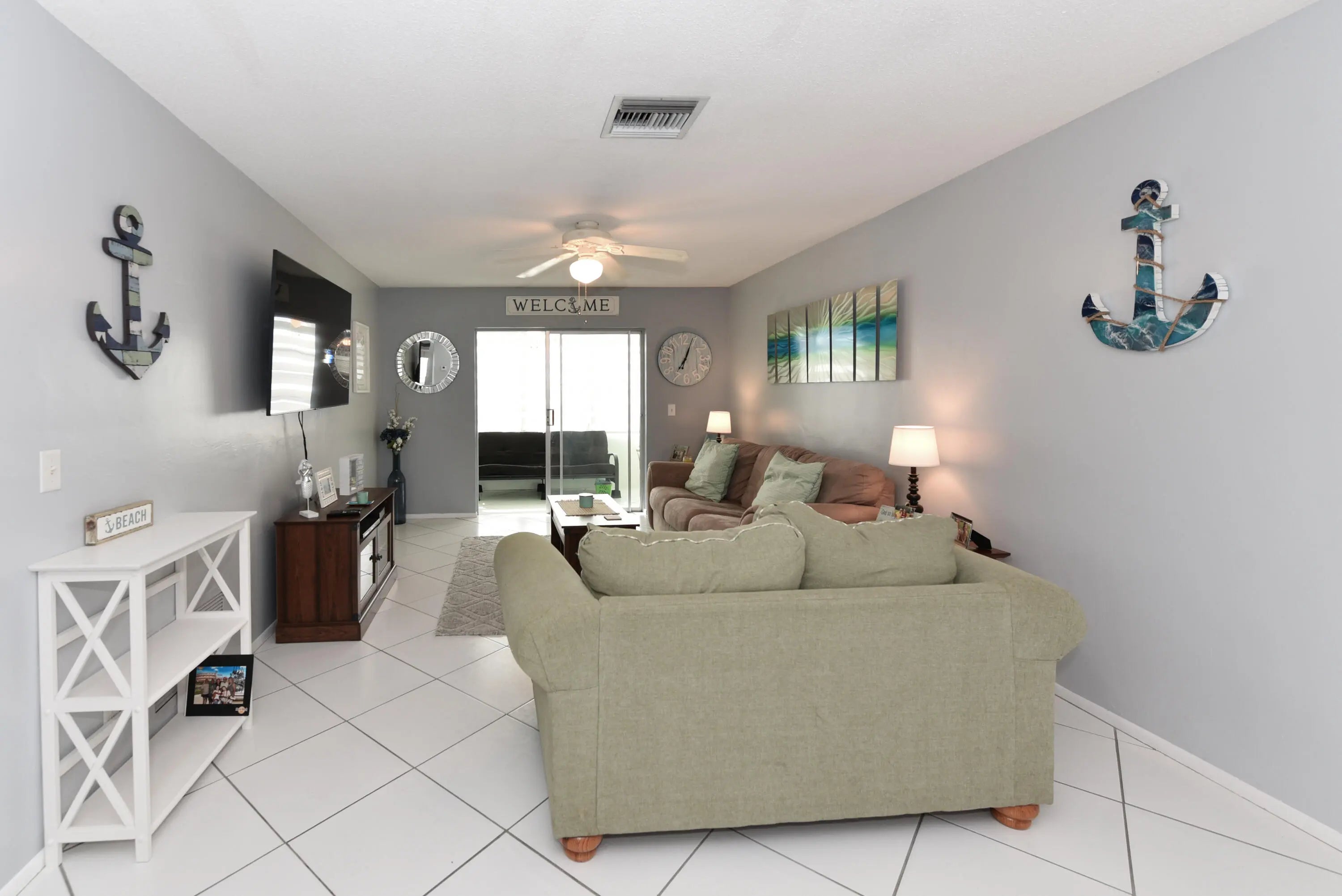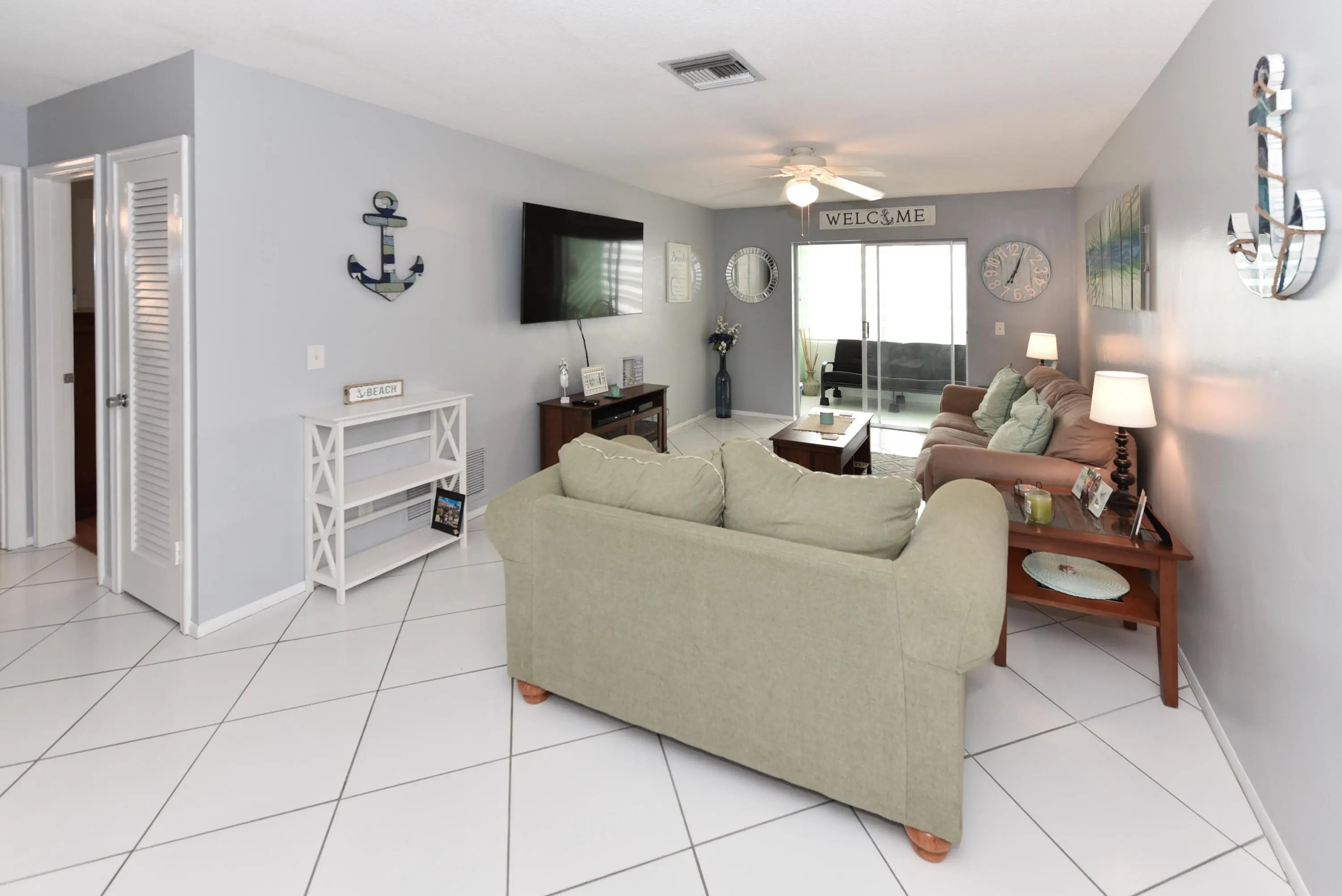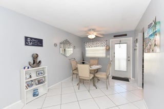 Very well maintained condo. with upgades through out in Village Royal. One bedroom, 1-1/2 baths. Both bathrooms have been renovated with a walk-in shower in main bath. . Laminate wood flooring in the bedroom.. Main living area has white ceramic tile. No dishwasher in kitchen. AC unit 2015. Newer GE electric panel. Partial accordian hurricane shutters. Minutes to beaches, Brightline train and waterfront dining and activities. Fully furnished and ready to make your new home or winter retreat! Washer and dryer in florida sunroom. The association has a minimum credit score of 700. Clubhouse, barbeque grill, pool, schuffleboard and more! Sorry No pets allowed. This is an adult community and must be 55 or better.