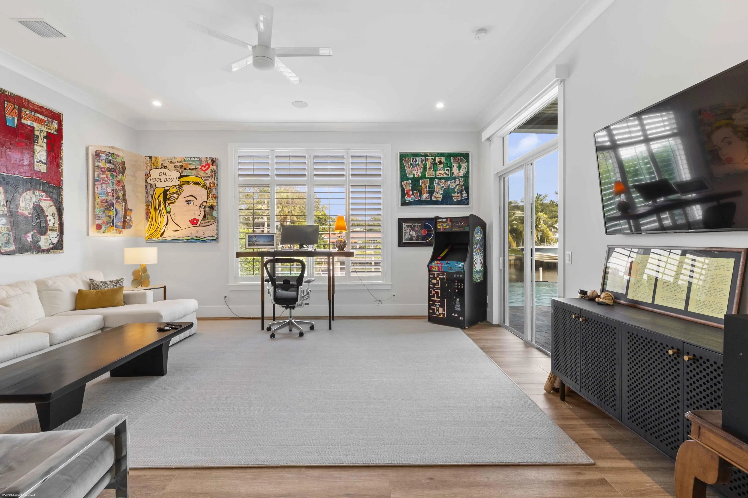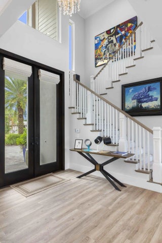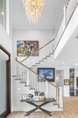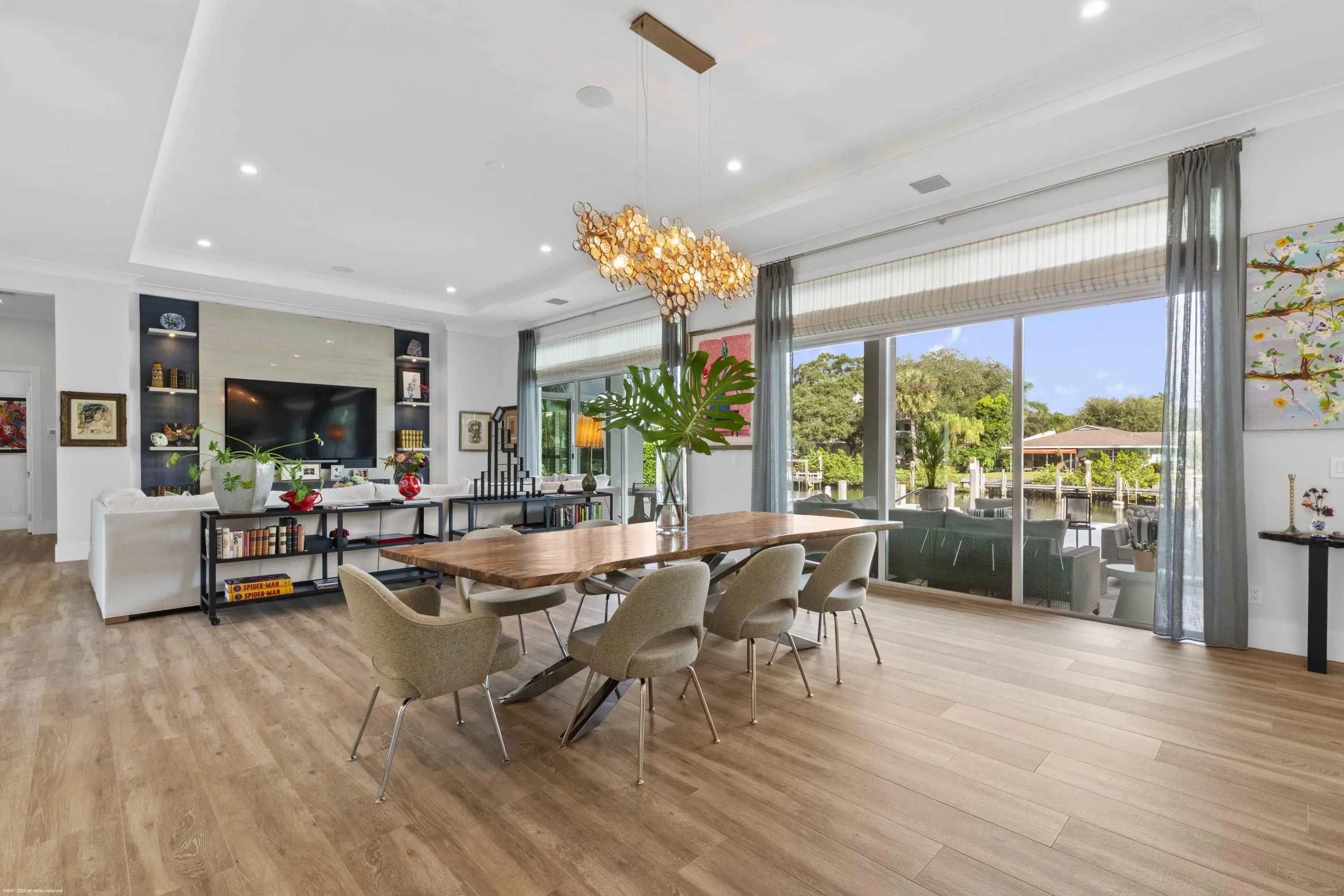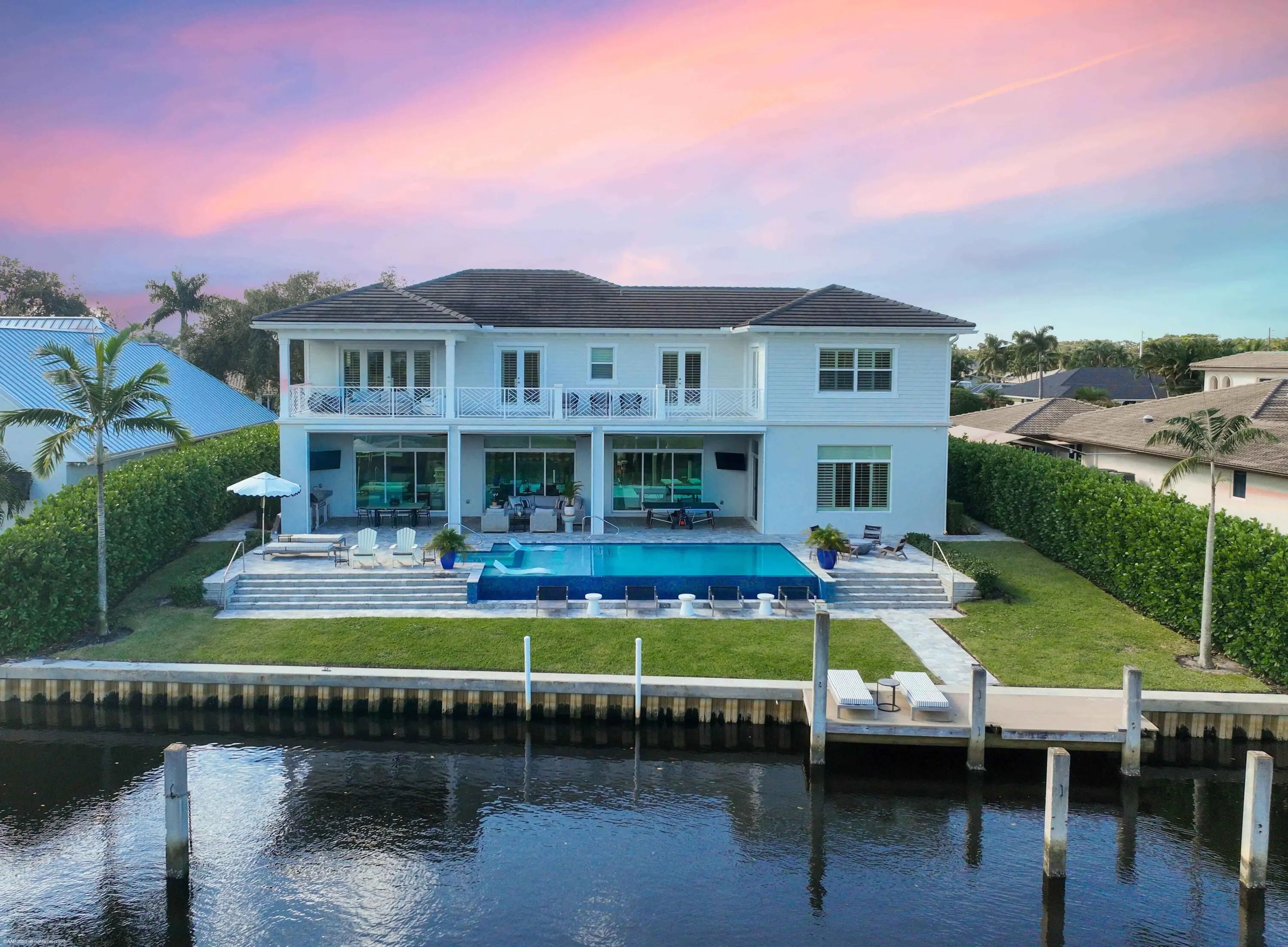 Built new in 2020, this fabulous Palm Beach Gardens Modern Island Smart Home boasts 5 bedrooms and 5.5 baths and over 7900 of total sq ft! The open floor plan includes a Gourmet Chef's kitchen with 2 large islands and a huge pantry! A wall of French Doors all open to a massive covered and screened patio with a summer kitchen and a beautiful heated infinity pool/spa and 100' of waterfront including a boat dock! The primary suite is stunning with a massive bath and huge closets. All the bedrooms upstairs access a large open balcony to capture the water views or to watch a sunrise or sunset. The home has high ceilings with recessed lighting, Plantation Shutters, an elevator and a whole house generator. It's a boaters paradise yet just minutes away from everything.