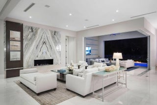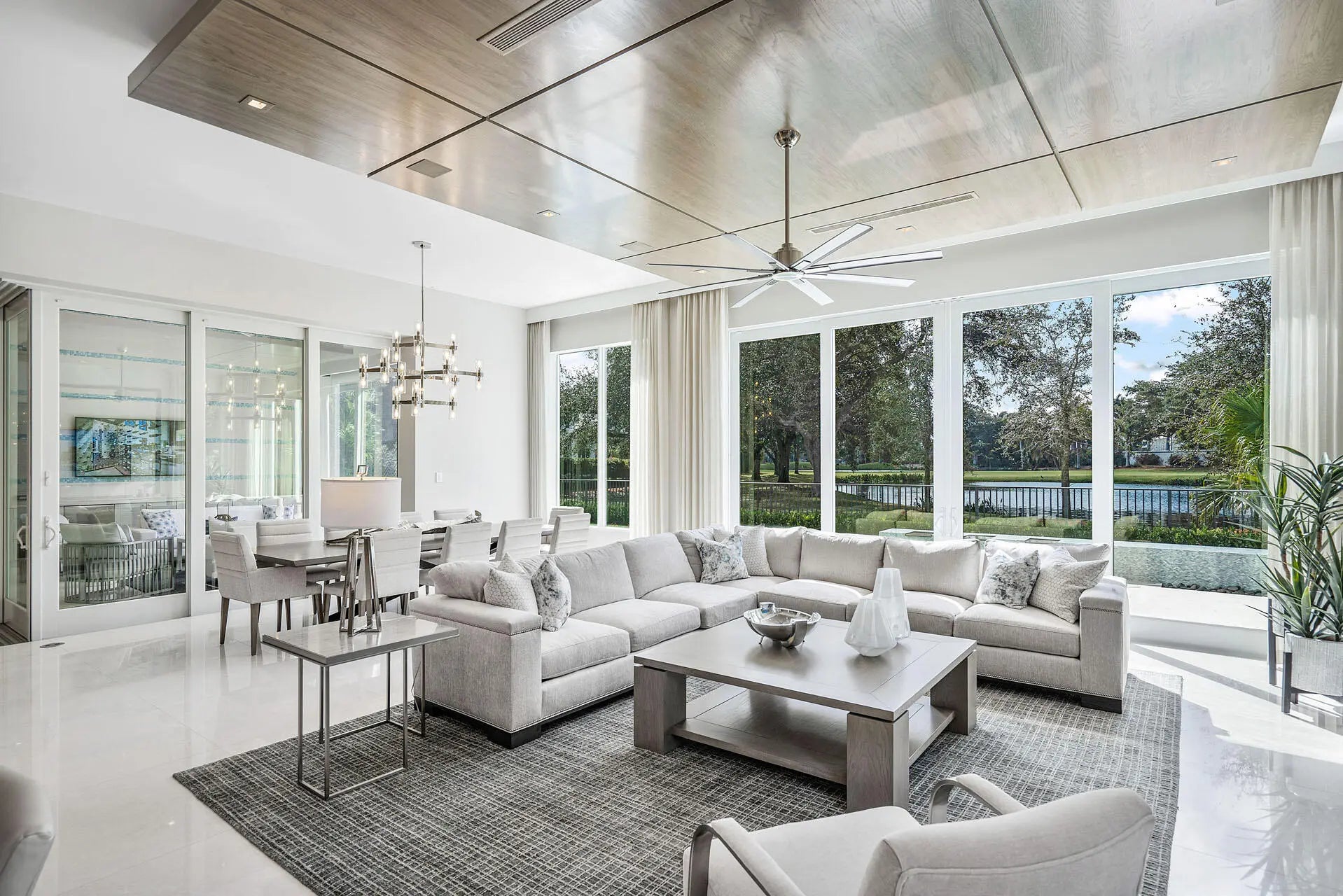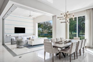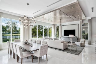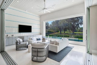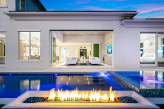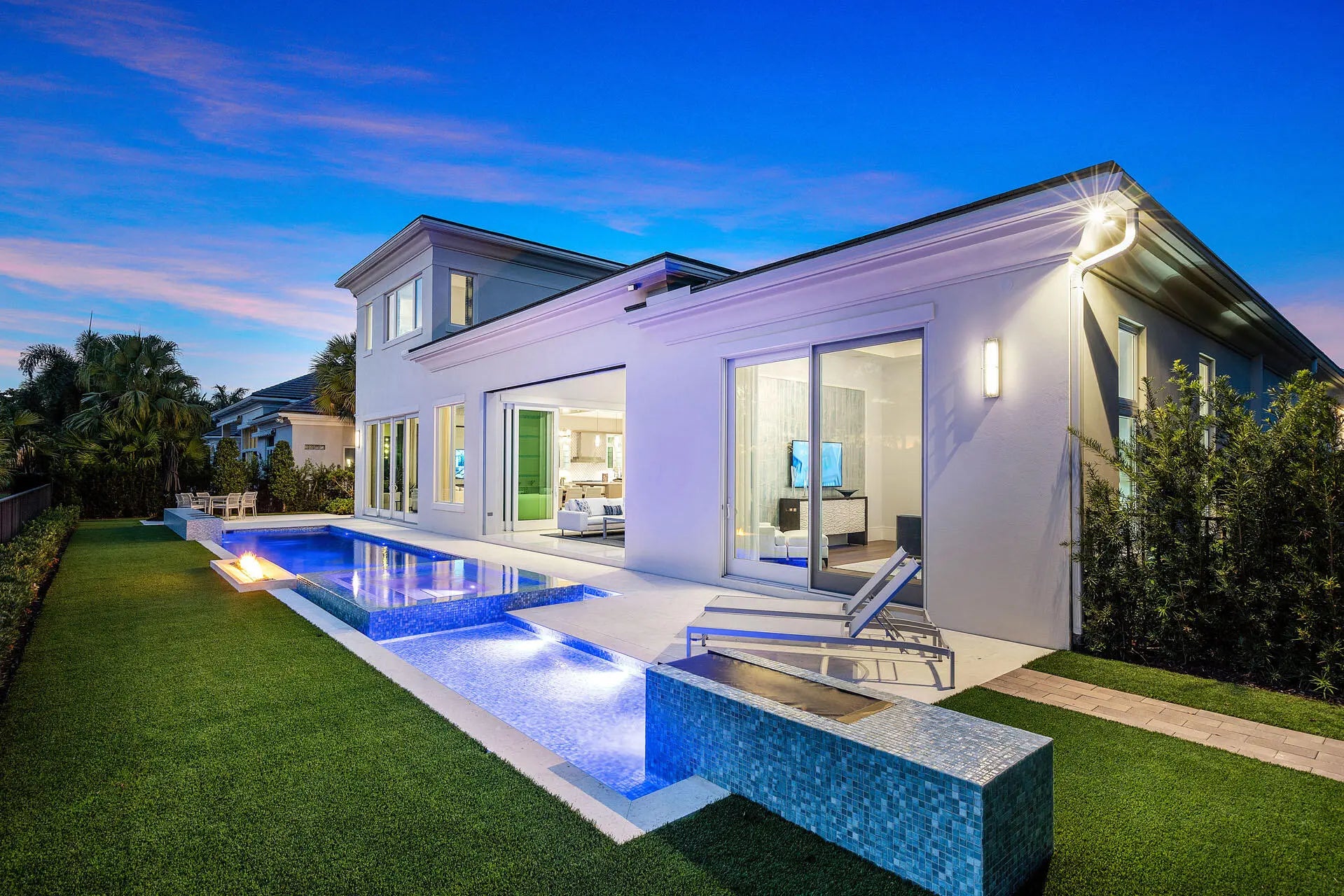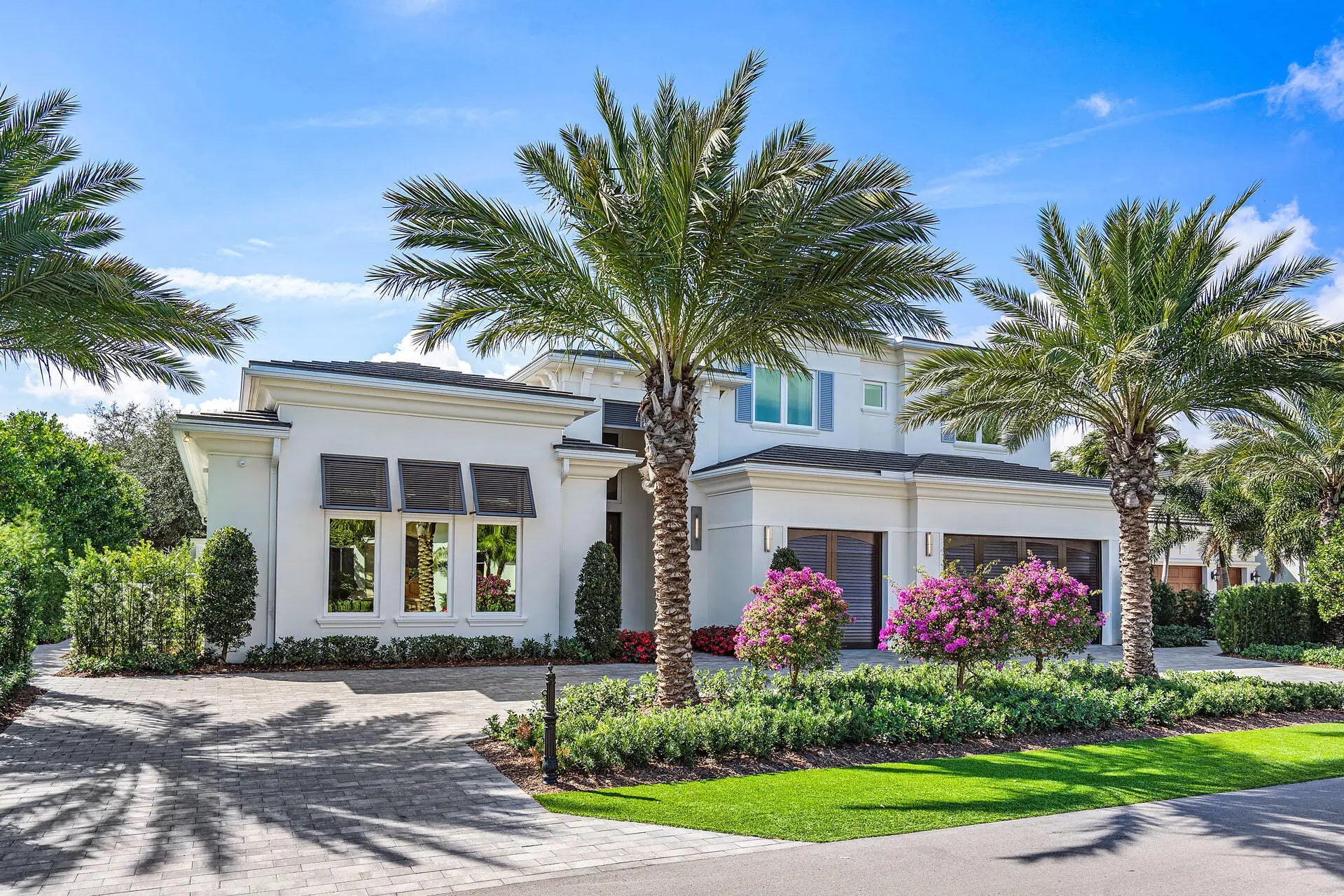 Built by Bloomfield Construction in 2019, 148 Thatch Palm Cove offers an exceptional blend of modern luxury and golf course tranquility. Positioned on a quiet cul-de-sac of just seven residences, the home overlooks the 5th hole of the Jack Nicklaus Signature course with picturesque lake views. Spanning more than 6,100 square feet, the five-bedroom residence is thoughtfully designed for both comfort and entertaining. The south-facing outdoor retreat features a resort-style pool with spa, elegant fire and water features, a built-in barbecue, and an expansive loggia with motorized phantom and vinyl screens for effortless indoor-outdoor living. Inside, a grand first-floor primary suite includes dual bathrooms and dressing rooms, while additional highlights include dual laundry rooms and a three-car garage plus golf cart bay with space for lifts. Every detail reflects a commitment to refined living in one of Royal Palm's most private settings.