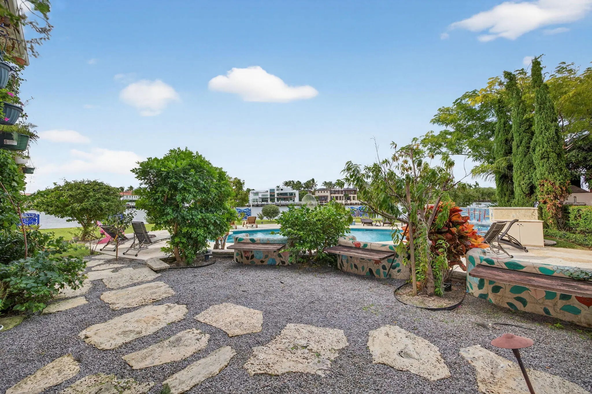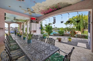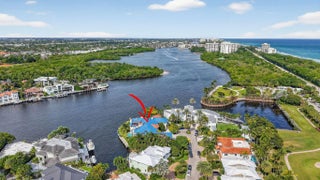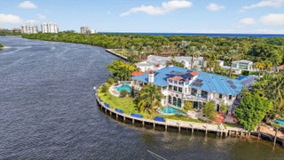 PRIME LOCATION! Exceptional crown jewel, one of a kind waterfront estate nestled on a Barrier Island, quiet Cul-De-Sac surrounded by other trophy properties. X-tra Large, 256 FT., POINT LOT with unobstructed panoramic views of the intracoastal for the most discerning buyer. Timeless architecture and immersive design with artistic vision encompasses 12 bedrooms, 10+bathrooms, 6 fireplaces, 3 resort style private, heated pools, summer kitchen and bar, plus a detached guest suite, all surrounded by lush vegetation, adds to the charm and value of this home, capturing the energy, making it an absolute standout. Spectacular French inspired kitchen, walk-in refrigerator and freezer along with an exquisite dining area, allowing you to entertain at ease... A large European influenced master suite with sauna, jacuzzi, a crystal bed and radiant floors, includes spacious balconies with unparalleled, picturesque views. A truly unique and fun property. DEEP WATER frontage, unlimited dockage in a No Wake Zone, makes this is a BOATER'S DREAM! Only a short walk to play Golf and the Beaches...An INVESTMENT opportunity, this property offers an extraordinary world-class lifestyle! *Land value alone is worth it! Structures are concrete, including the guest house, both with impact glass, also advantageous. Commercial grade, whole house electric generator with direct access to street natural gas, is another BONUS...