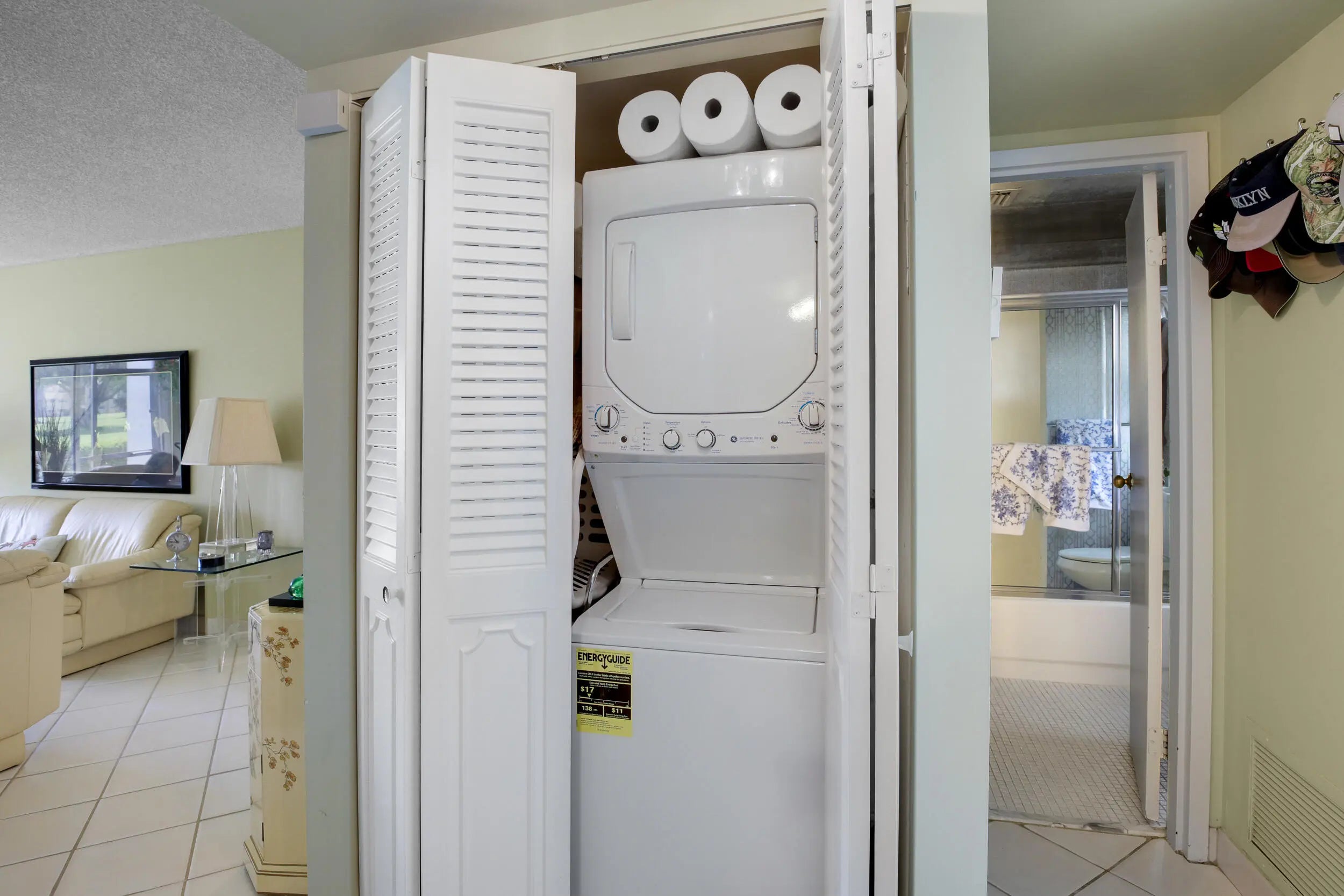 WELCOME TO THIS CONVENIENT 1ST FLOOR CONDO WITH BEAUTIFUL WATER,GARDEN & GOLF VIEWS! FEATURES INCLUDE AN EASTERLY FACING GLASSED SCREENED PATIO THAT ADDS TO THE LIVING AREA & OPENS TO AN EAT-IN KITCHEN, LIVING ROOM & MASTER BEDROOM WITH ITS 2 CLOSETS & ENSUITE BATHROOM. NEW AC 7/25 & UPDATED ELECTRIC PANEL. THIS ENCLAVE OF 3 BUILDINGS HAS A RESORT STYLE POOL & CABANA AREA WITH WI-FI SERVICE. TAKE A PATH ON GOLF COURSE TO THE POINCIANA CLUBHOUSE WITH ITS ADDITIONAL POOL, PICKLEBALL, TENNIS, APY-AS-YOU-PLAY GOLF, GYM, MOVIES, & MEL'S BISTRO & ENTERTAINMENT. AVAILALBLE WITH FURNITURE FOR AN EASY MOVE-IN. THE CONDO FEE INCLUDES HOTWIRE TV & WI-FI, WATER,SEWER, PEST CONTROL. CONVENIENTLY LOCATED APPROXIMATELY 8 MILES TO THE BEACH, MINUTES TO THE TURNPIKE, PBIA(AIRPORT).55+AGE RESTRICTIONS.