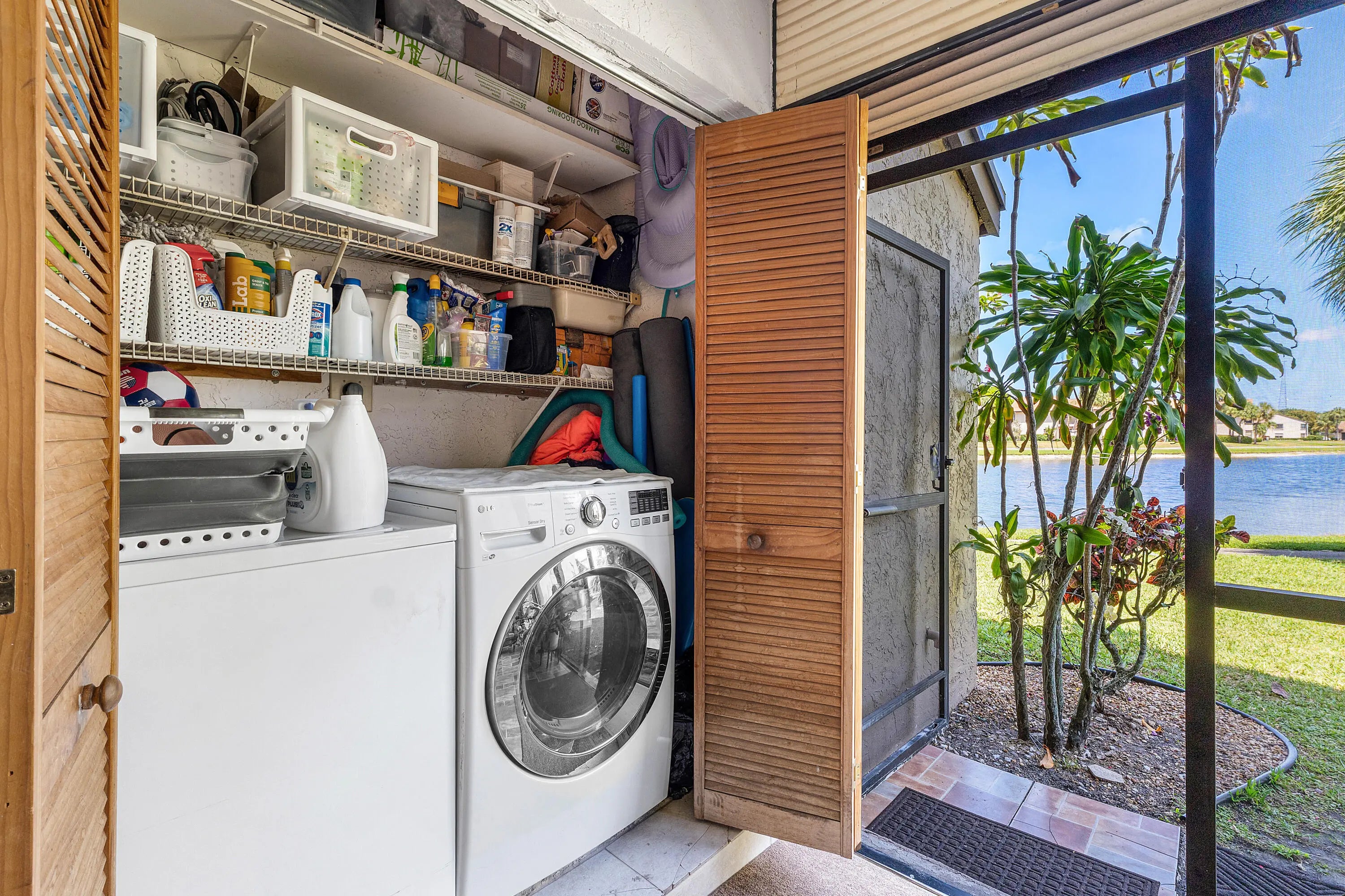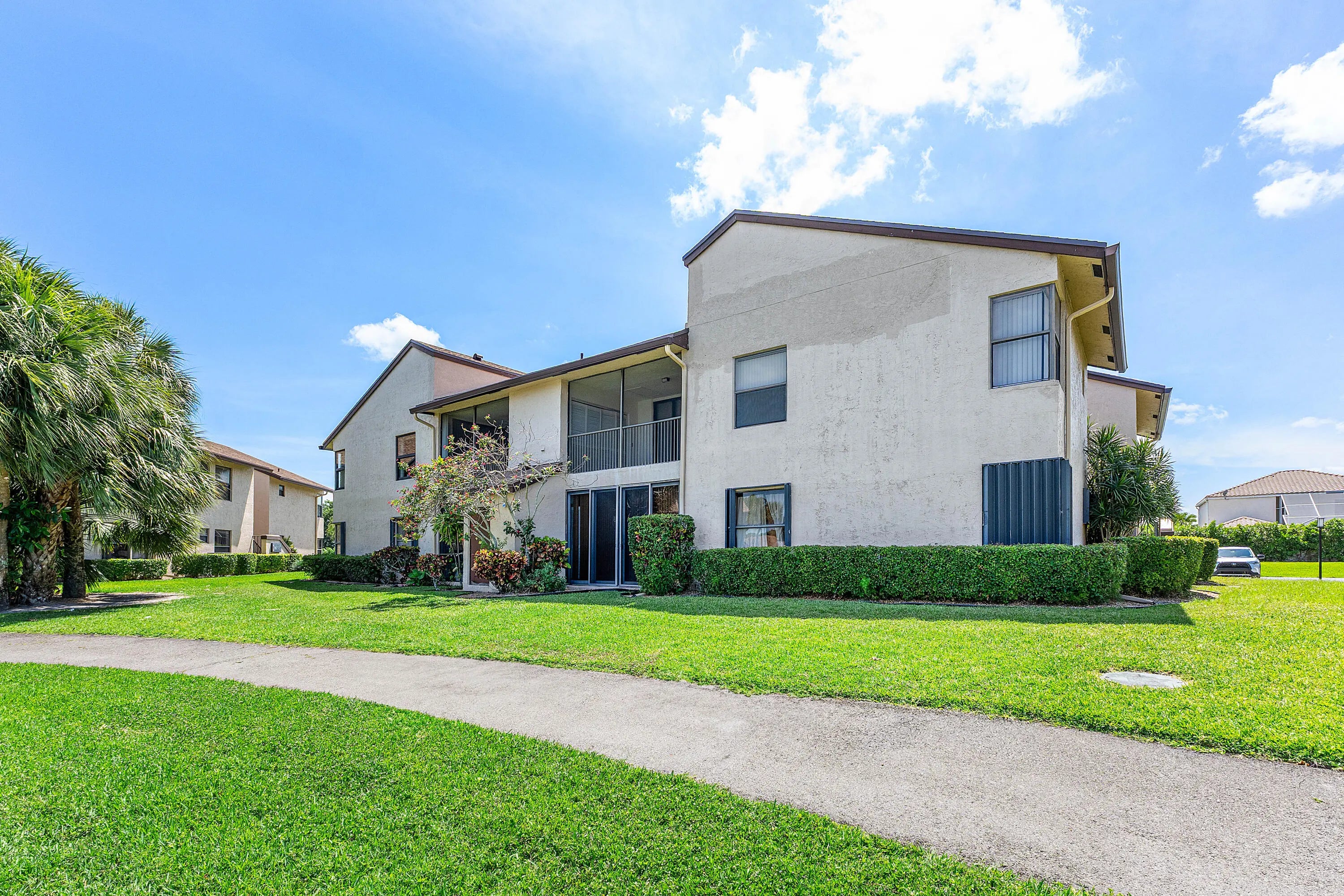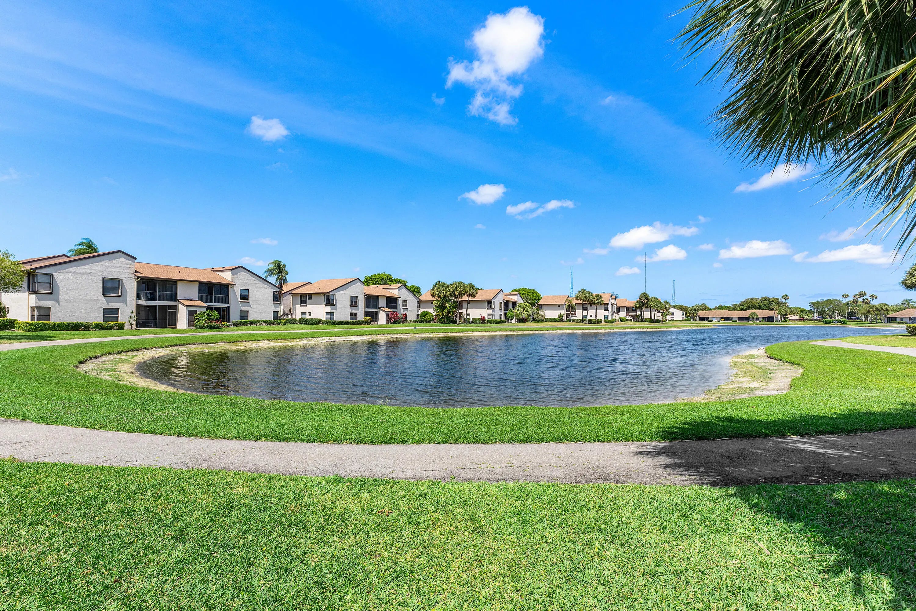 Ground-floor corner unit with beautiful LAKE VIEWS in an all-ages, GATED Boca Raton community. Features include a SPLIT-BEDROOM layout, bamboo and tile floors, granite kitchen countertops, and updated vanities in both bathrooms. French doors, recessed lighting, and a screened-in tiled patio add charm. Accordion shutters throughout for FULL STORM PROTECTION and insurance credits. New water heater and dishwasher. Amenities: clubhouse, pool, hot tub, gym, billiards. Maintenance includes cable, internet, insurance, lawn care, GREAT reserves, and security. FHA approved, own as little as 5% down on conventional loan. Pet-friendly and can be rented after 18 months (90-day minimum).