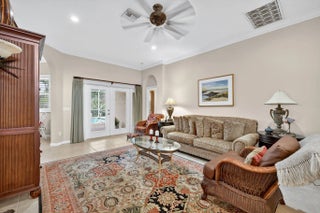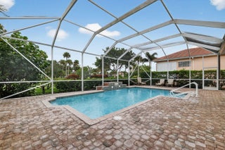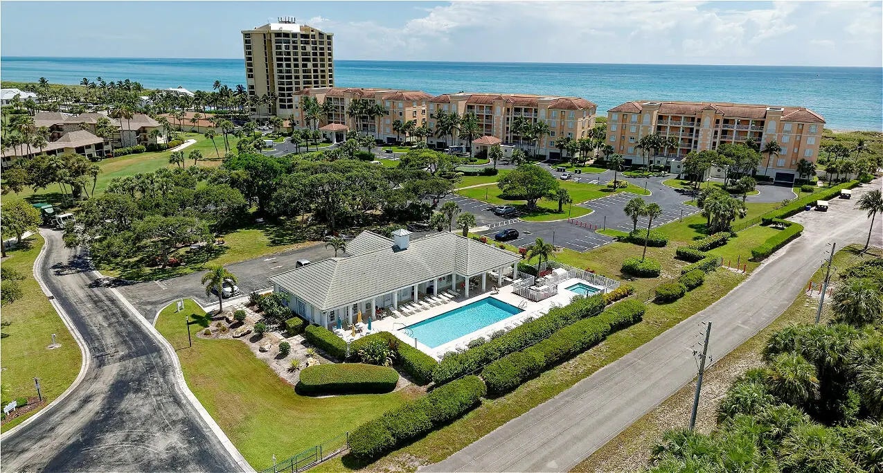 Ocean Village on South Hutchinson Island! 2 bedroom, 2 bath, 2 car garage CBS home with a private pool! Rare find!! Beautiful wood & tile flooring, coffered ceilings, crown molding, beautiful screened salt water pool with large pool deck! Situated on a beautifully manicured corner lot in Ocean Village & steps to the ocean! Near Pelican Yacht Club for all boating enthusiasts & minutes to the gulfstream! Enjoy the ultimate Florida lifestyle at this beautiful award winning oceanfront community offering resort style amenities including 24 hr gated entry, 9 hole par 3 golf course, tennis, pickleball, bocce ball, new clubhouse & fitness center, 4 heated pools, oceanfront restaurant. Located on South Hutchinson Island with 21 miles of uncrowded & unspoiled beaches! Measurements approximate.