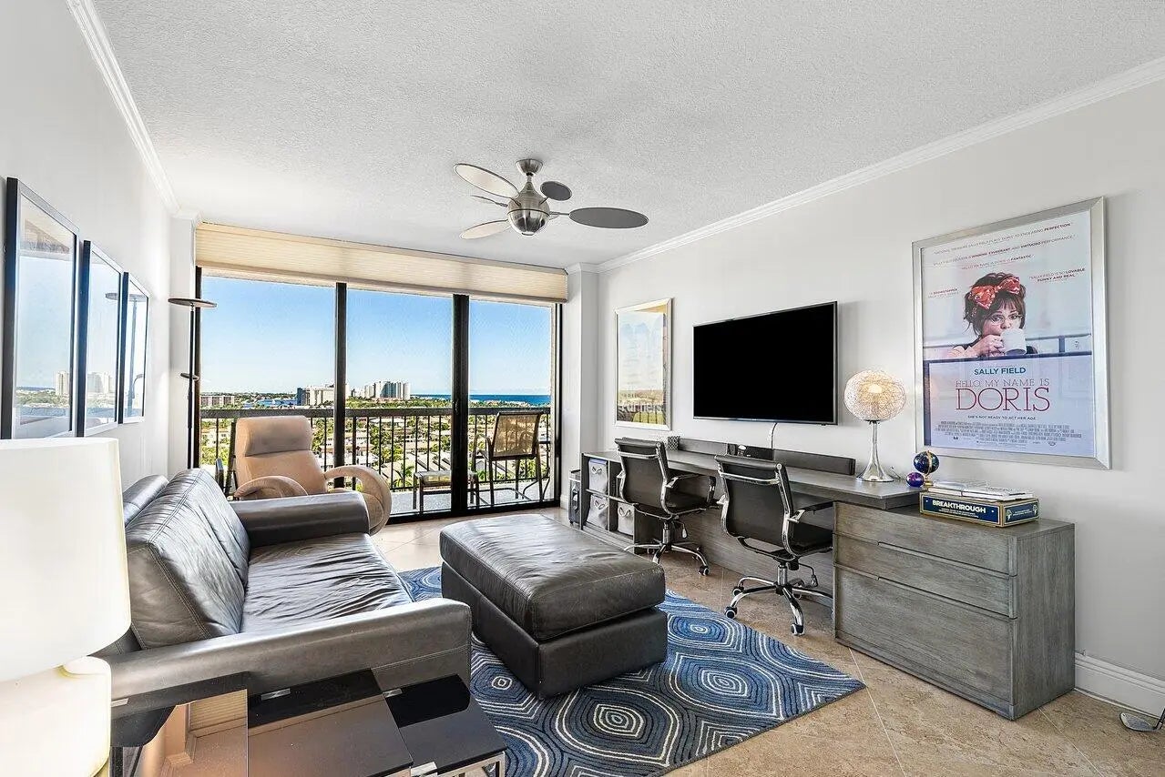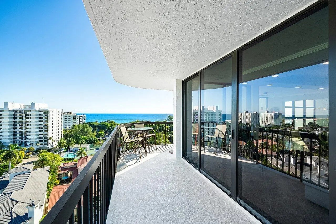 Enjoy incredible ocean and intracoastal views from this luxury 3 BD 2.5 BA corner residence in Braemar Isle. Floor-to-ceiling sliding doors surround the living room, inviting in sweeping 12th-floor views of the Atlantic and Highland Beach, and opening to a wrap-around balcony for breezy coastal living. The open-concept kitchen, dining area, and breakfast nook are perfectly positioned for views, creating a seamless experience from cooking to entertaining. The primary suite overlooks the intracoastal and features a spacious bathroom with a private shower and toilet area, along with two walk-in closets for generous storage. A secondary bedroom also enjoys water views, and an expansive office delivers panoramic intracoastal vistas to ease the workday.