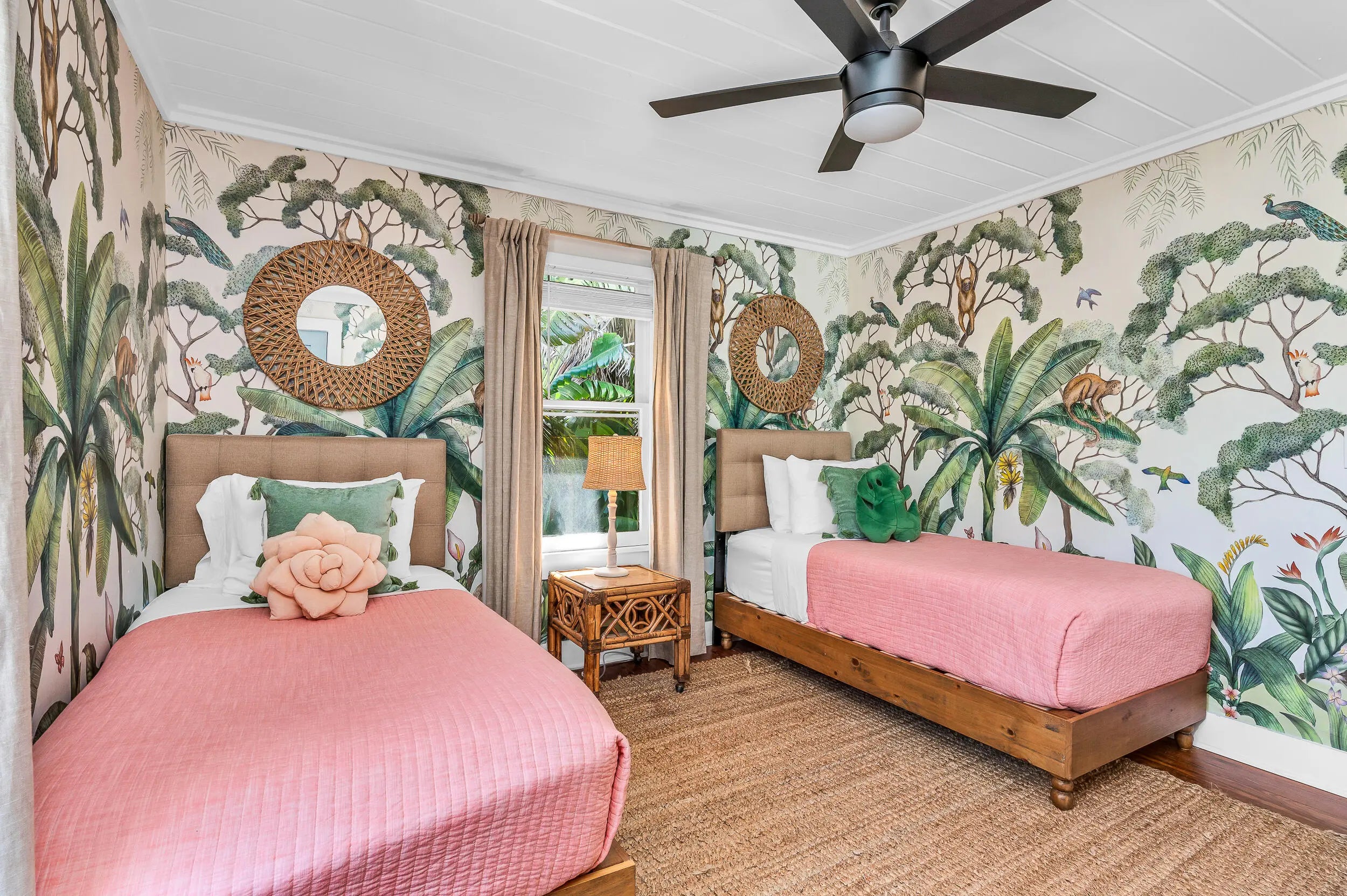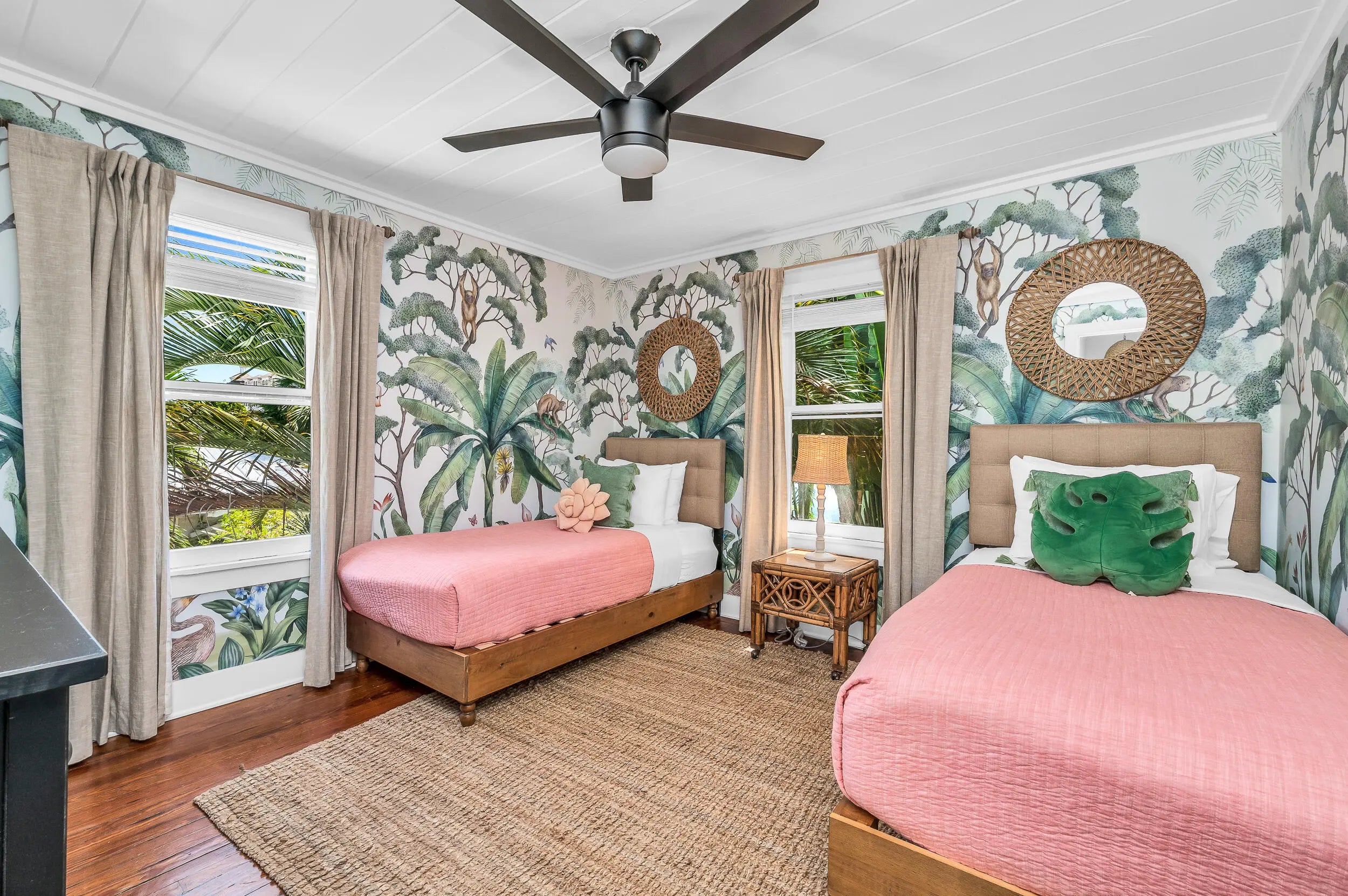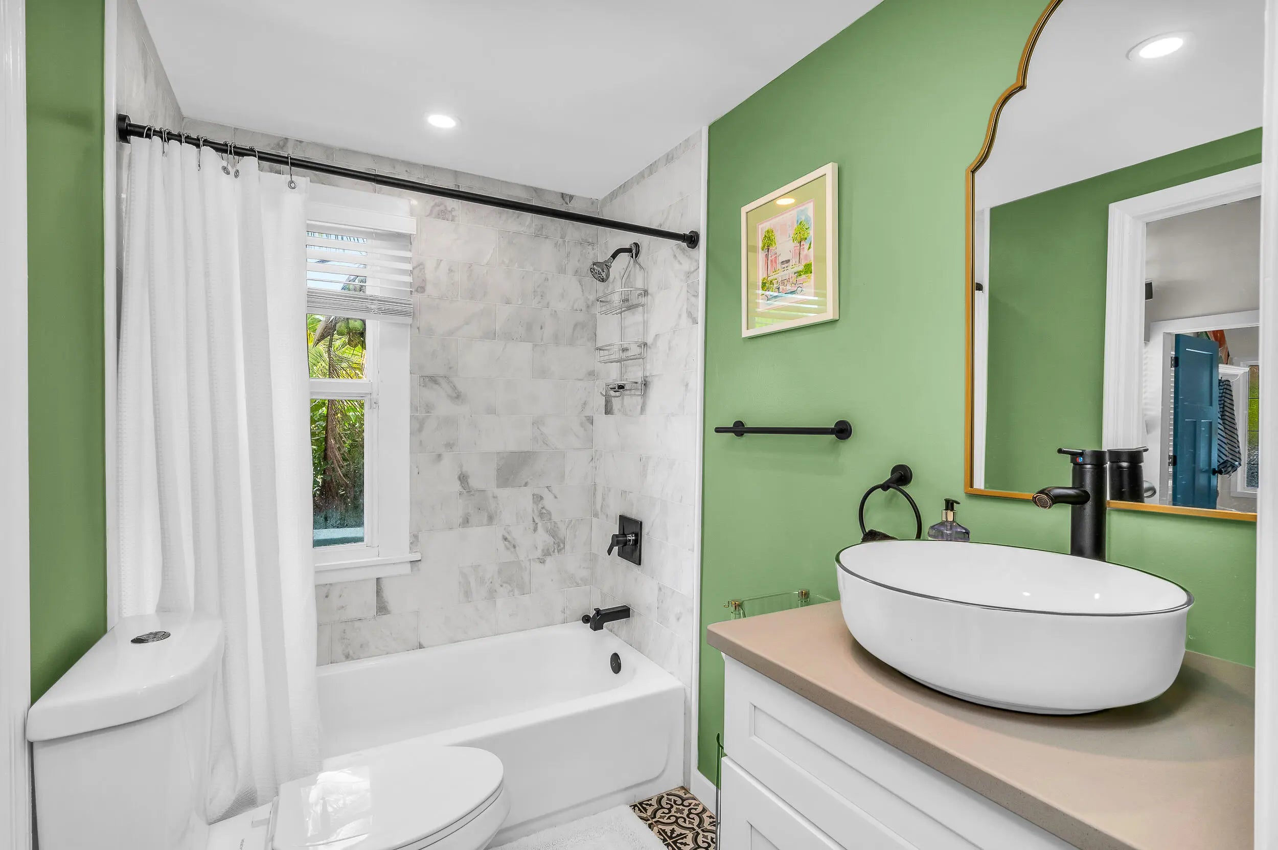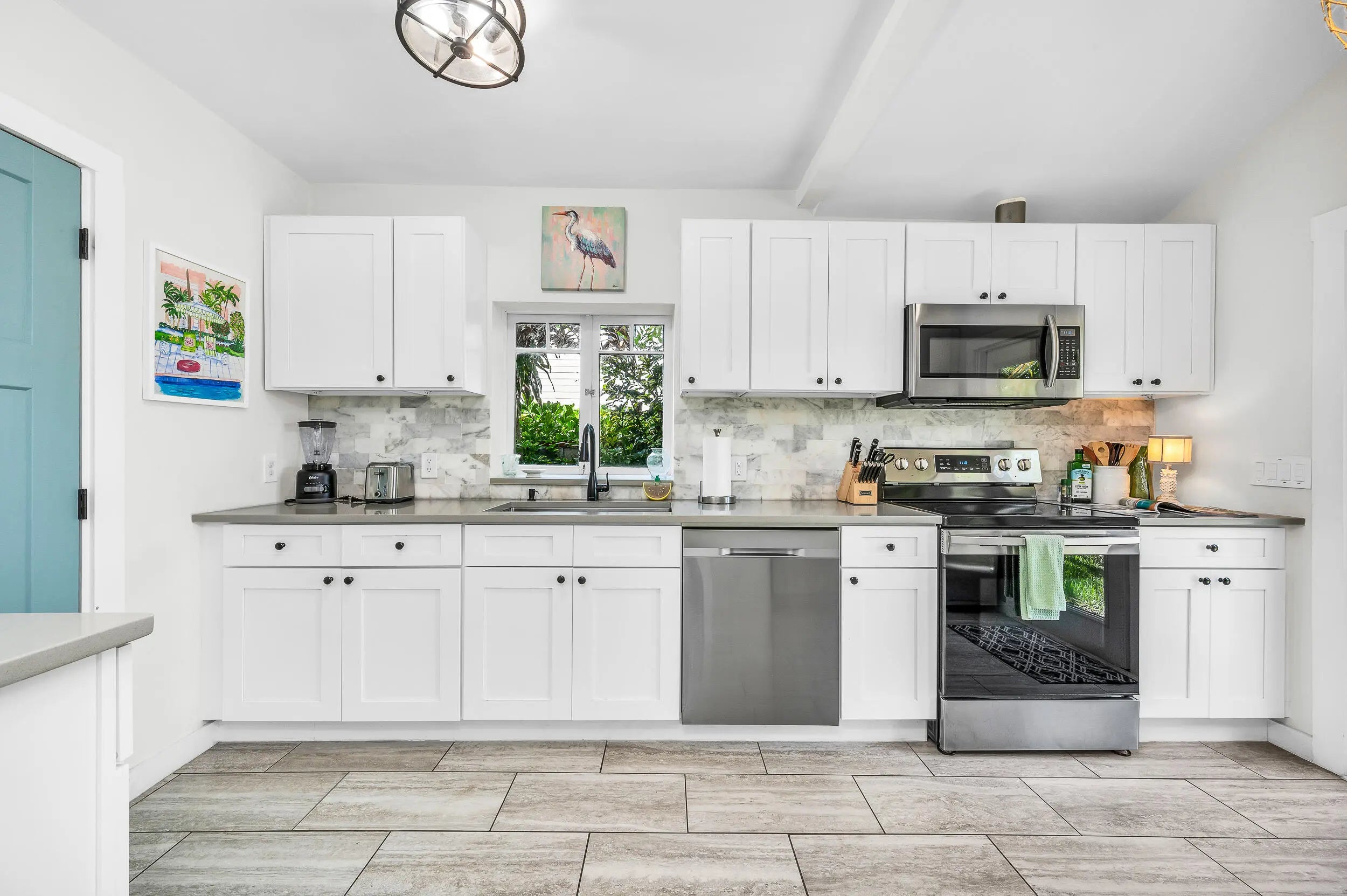 Exceptional Key West style home with 5 bedrooms, 4.5 bath home located in Grandview Heights. Landmarked, with Original fireplace and hardwood floors adorn the main living room that leads to a dining room overlooking the backyard and pool. The first floor includes an office with a full bath that can be converted to a bedroom. The second floor features a spacious primary bedroom, an oversized renovated bathroom, and second bedroom. Outside, the property has been newly landscaped with tropical plantings, turf, patio area for entertaining, and a plunge pool that doubles as an oversized hot tub. The guest house has soaring ceiling heights in the living room with two bedrooms, two full baths, and an updated kitchen, mexican tile thru-out. The guesthouse is separately metered. Sold TURN-KEY Home is currently operated as a very successful short term rental With bookings in place. Notice to show.