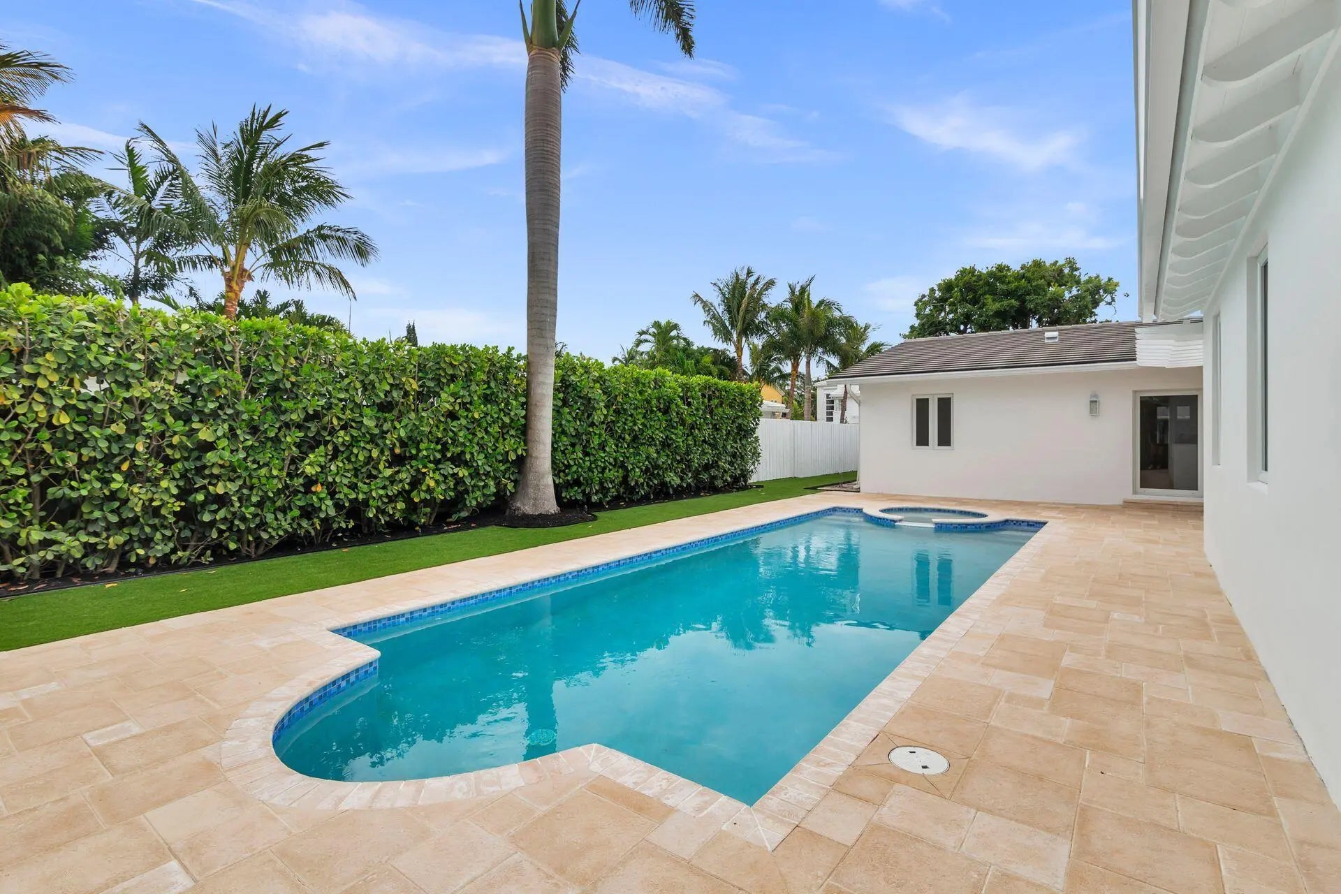 Completely renovated, redesigned and enlarged, this circa 1958 cottage in the Prospect/Southland Park historic district is like-new. With a 2025 new CBS primary suite addition, this once small home now lives large with 3 bedrooms, 2 bathrooms and a charming laundry room. Boasting an eat-in kitchen, pantry, laundry/ utility room, heated swimming pool with spa and covered pergola, mature clusia hedging, this home is perfect for entertaining or simply relaxing solo at home. Highlighting Miele kitchen appliances, Schumacher wallpaper, European white oak engineered wood floors throughout, PGT hurricane impact rated windows and sliding glass doors, new electrical and plumbing to the street and Ring doorbell plus cameras, no stone left unturned in this (new) turnkey charming 1958/2025 renovated home. In the Palm Beach Public Elementary school district, close to area beaches, Flagler Drive bike trail, Worth Avenue shopping, five-star dining, I-95, PBI airport and much more! This property received its Certificate of Completion on December 3, 2025. The City of West Palm Beach Historic Preservation Board voted to approve the owner's request for an Ad Valorem Property Tax Exemption on December 9, 2025, and the matter is scheduled to go before the City of West Palm Beach City Committee on January 5, 2026. The Ad Valorem Tax Exemption will result in significant property tax savings for a period of 10 years (through December 31, 2035).