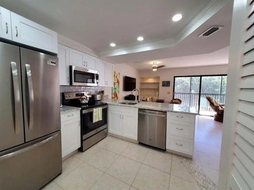 December 2025 Rent Special!! This condo is a 2-minute walk to the beach!! Beautifully remodeled 1 bedroom, 1.5 bath condo in Jupiter Ocean and Racquet Club. This condo is close to dining, shopping as well as the beach. Renovations include all new kitchen and bathrooms with clean white shaker cabinets and granite counters. All new kitchen appliances, new washer and dryer as well as the 75'' flat screen TV. The spacious bedroom has a new king size, new king mattress and huge walk-in closet. Relax and enjoy the private fully screened balcony off the living area. The large, heated community pool is across the street from the unit. This completely turnkey rental includes everything you would need as well as all utilities, basic cable and Wi-Fi. Elevator in building and NO smoking allowed