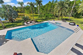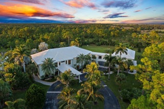 **JUPITER'S PREMIER RANCH ESTATE** Sited on 7.6 Acres of verdant grounds, this grand residence 'Eagle's Nest', has been meticulously + thoroughly RENOVATED to PERFECTION. A manned guard house welcomes you to RANCH COLONY, a private enclave offering Equestrian trails and 2 nearby Championship golf courses. An Owner's gate +350' driveway lead to the stately 11,402 sq. ft home. A grand entry foyer w/ 28' ceiling is graced by brilliant marble floors and a dramatic double staircase of Brazilian wood. Classic design elements incorporate timeless elegance + modern luxury. The interiors have been finely curated for an elevated living experience, offering a spacious + harmonious floor plan and abundant natural light. The main living areas are grand in size and epitomize tasteful elegance. The huge open kitchen is a Chef's dream, featuring a Wolf 8 burner gas range, triple ovens, bespoke marble countertops and a grand walk in pantry. Adjacent dining alcove + expansive family room are perfect for entertaining. The hub of the family room is the Bar, a stylish nod to fine living. Floor to ceiling sliders and covered loggia provide a seamless blend of indoor to outdoor living. The upper floor gallery leads to each of the 3 bedrooms + 2 additional 'flex space' rooms. A hallway with morning bar (w/ Sub Zero undercounter fridge) leads to the Owner's suite: this Primary bedroom suite offers 1500+ SF of sumptuous luxury, featuring classic wood floors, a fireplace, private gym + seating area and a spa-like bathroom w/ Roman tub and marble floors + countertops. A luxe private balcony showcases breathtaking views of lake + preserve. Two additional spacious bedrooms w/ ensuite baths complete the upper main house. A second floor breezeway leads to the Guest House, a stand alone residence featuring a great room living area w/ large kitchen and 4 generous ensuite bedrooms. Outdoor lanais complete the modern rustic ambiance. This property is truly unrivaled - blending exquisite scenic vistas w/ ultimate privacy, security + tranquility. There is a lake on property, stocked with fish. Lush greenery + highest end landscaping is enhanced by custom uplights throughout the property. A full Feature sheet is available detailing upgrades + mechanicals. A beautiful life awaits you in the magical community of Ranch Colony, located near the heart of Jupiter... yet surrounded by country roads, horse trails, low stone walls and the majesty of wildlife. A true 'legacy property'!