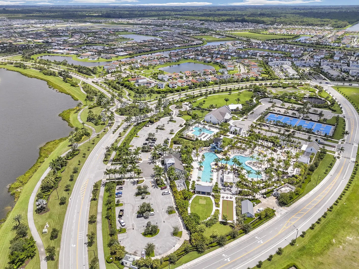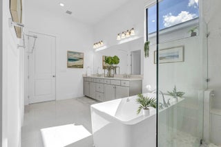 Stunning 2024 Sydney model in the well-kept, gated Cresswind Palm Beach active adult community of Westlake. This single-story home offers 3 bedrooms, 3.5 baths, a large den, and a 3-car garage. The open living area features tall ceilings, elegant finishes, and full impact glass windows overlooking the lake. The kitchen is bright and functional with a large island and quartz countertops. The primary suite boasts a luxurious bath with dual sinks, frameless shower, and freestanding tub. This vibrant community has so much to offer, including a fitness center, clubhouse, pools, game room, pickleball, tennis, dog park, lawn care, and access to Westlake Adventure Park.