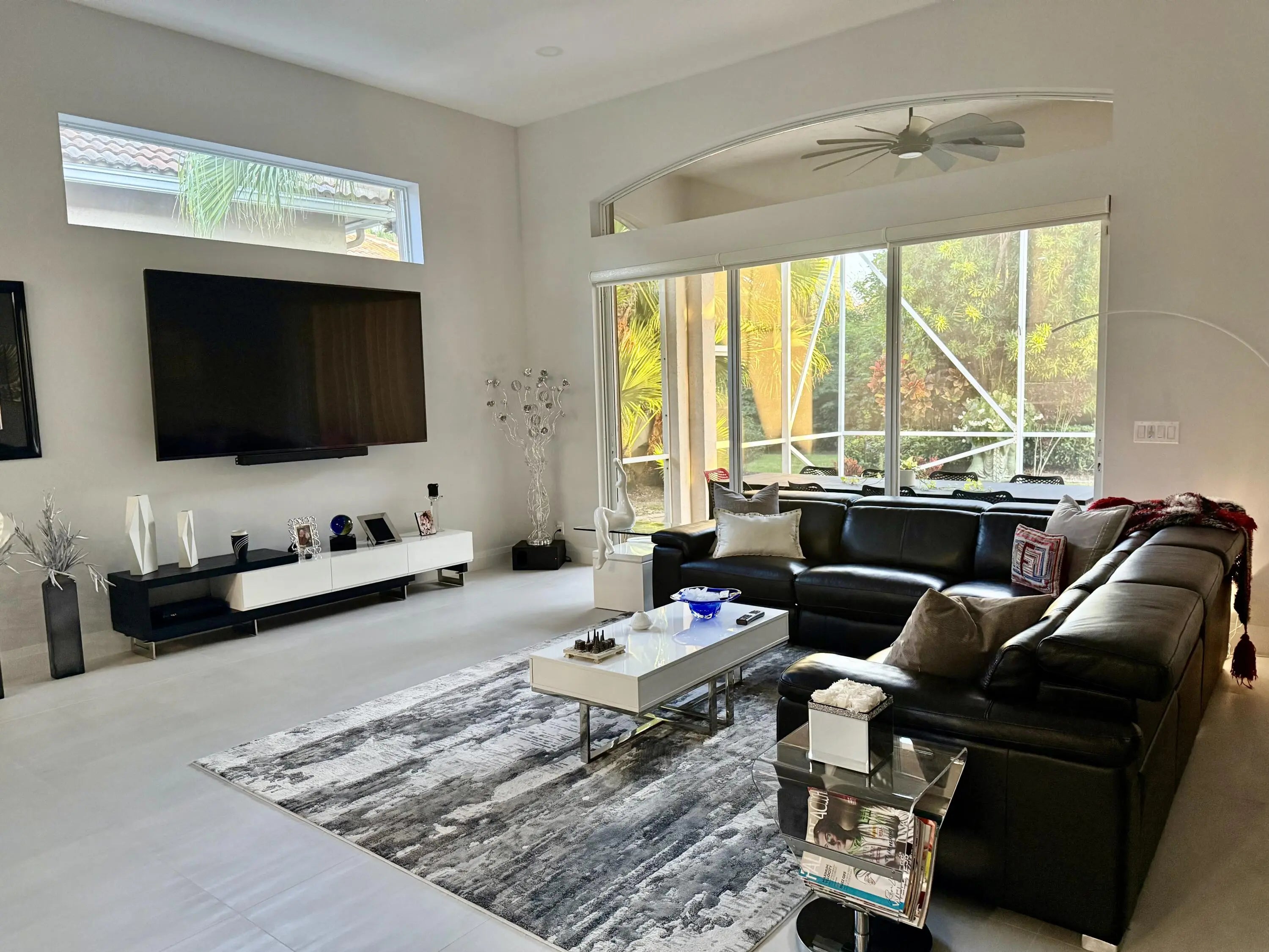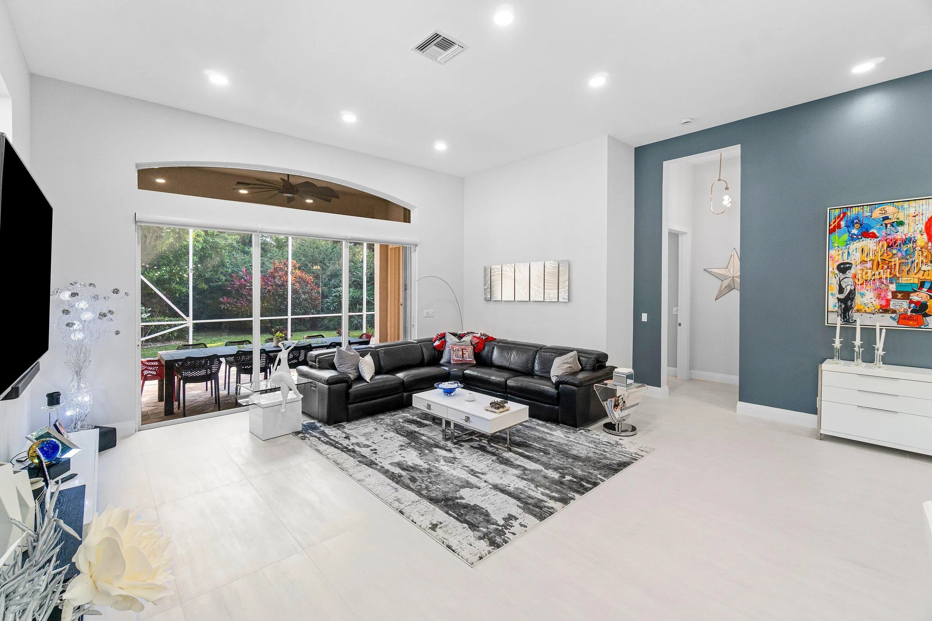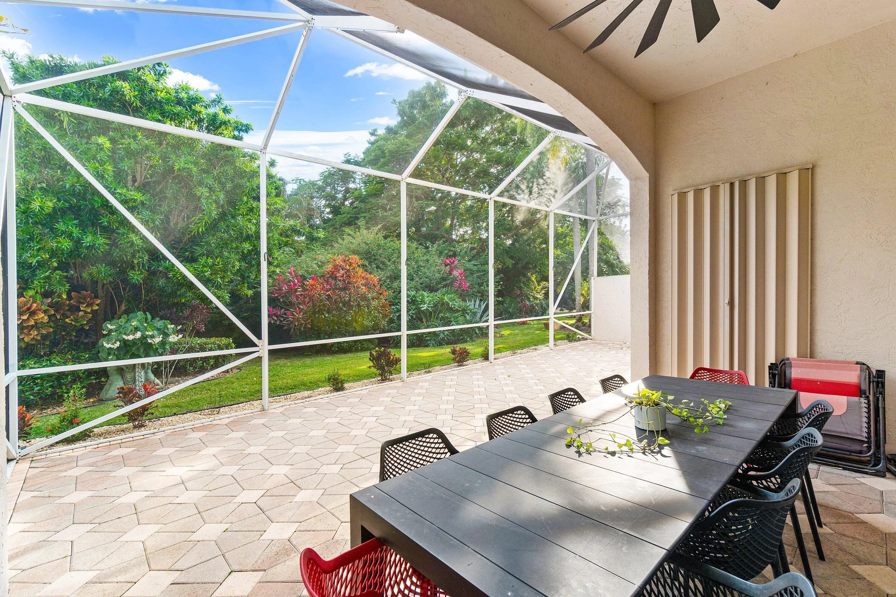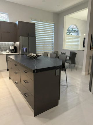 Step into luxury with this beautifully updated home featuring designer details and exceptional craftsmanship at every turn. The open-concept layout boasts 12' ceilings and porcelain 24x48-inch tile flooring throughout, creating an elegant and spacious feel. The gourmet kitchen is a chef's dream with quartz countertops, a striking porcelain island, GE Café appliances with Bluetooth capability and a granite composite sink with a Kohler touch free faucet.. You will find amazing storage space in the kitchen with pull out shelves in the pantries. Relax in the spa-inspired primary suite offering a separate raised soaking tub and walk in shower with raised floor, and enjoy the convenience of a large custom-fitted bedroom closet providing abundant storage. The second and third bedrooms have been tastefully decorated and the second bedroom is an ensuite providing privacy for those guests or family members staying overnight. The custom laundry room, generous built-ins, and thoughtful storage solutions add everyday functionality to this luxurious home. You will also appreciate the newer solid core wood doors which have been installed throughout the home. Enjoy your morning coffee or your favorite beverage in the privacy of your screened lanai with no rear neighbors . Aberdeen CC provides great value and amenities at a fraction of the costs of other high price country clubs. If you are looking the Country Club lifestyle and a home that provides all the bells and whistles, make sure you see this home before making your buying decision. Every inch of this residence has been thoughtfully curated with high-end finishes and mo