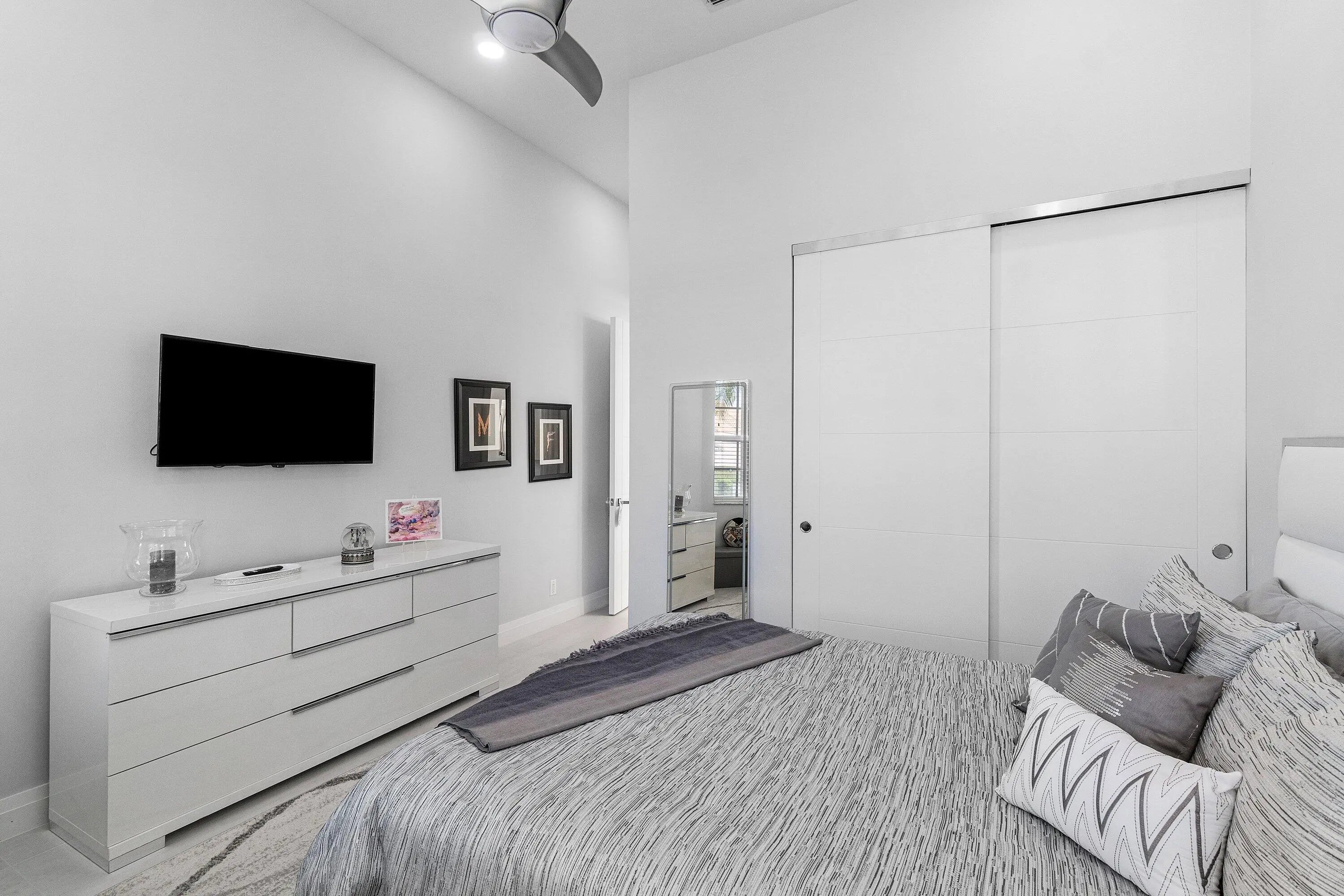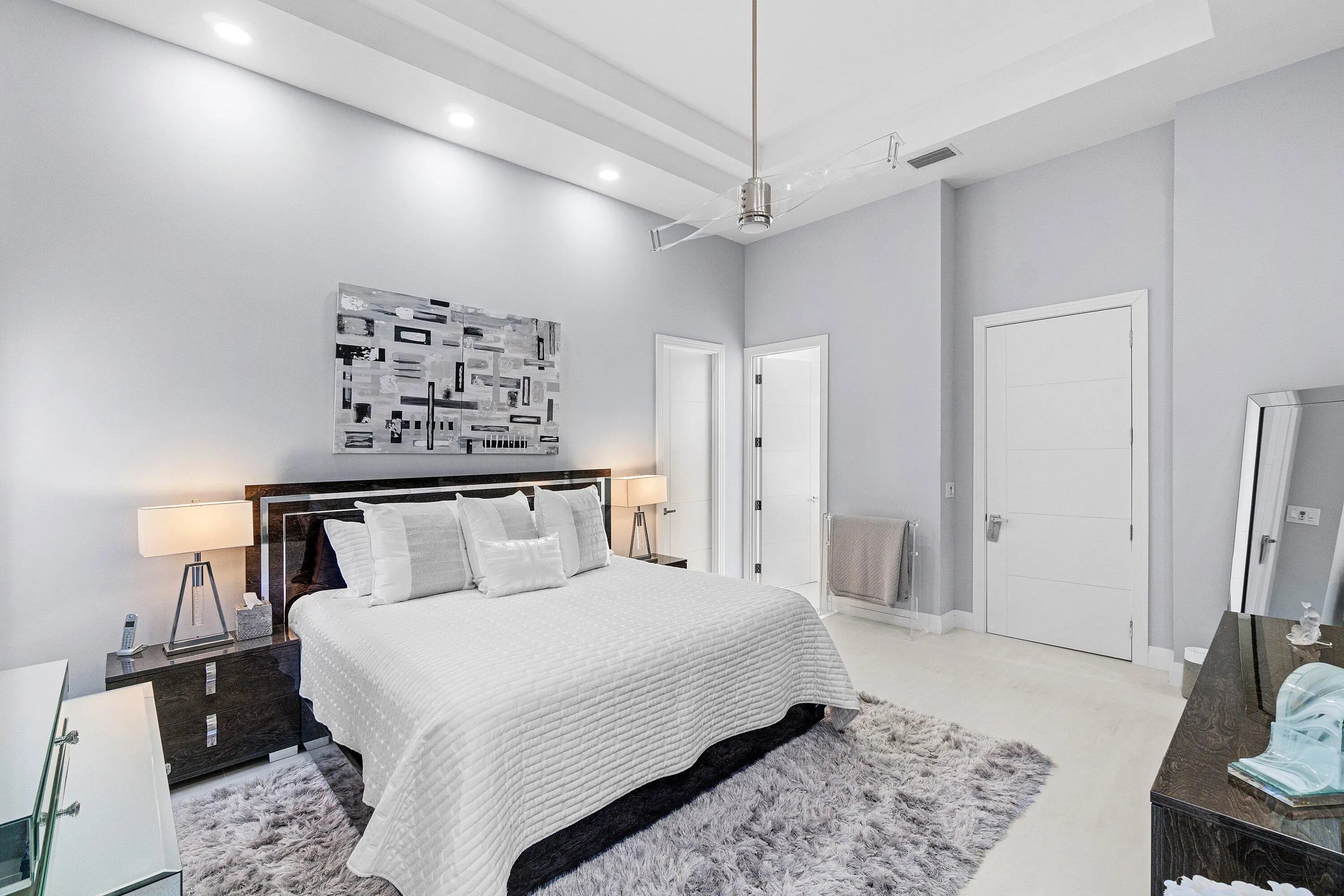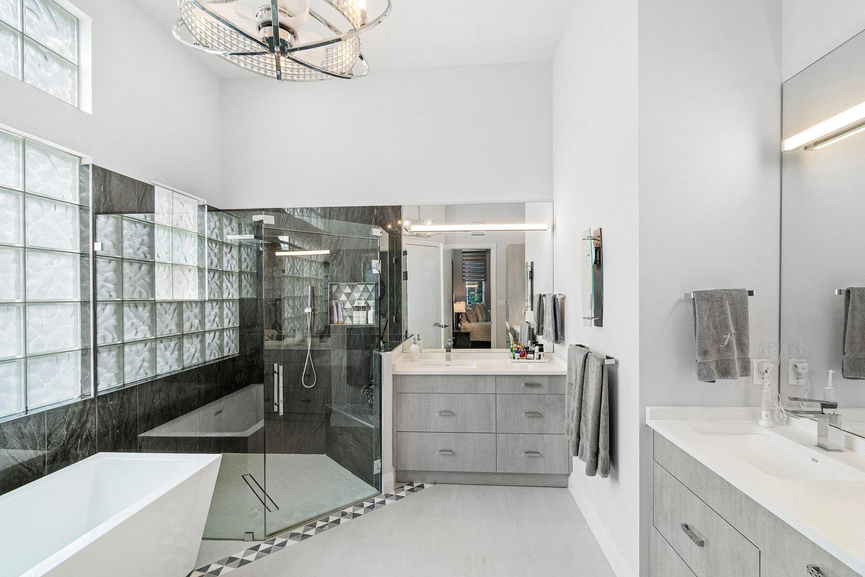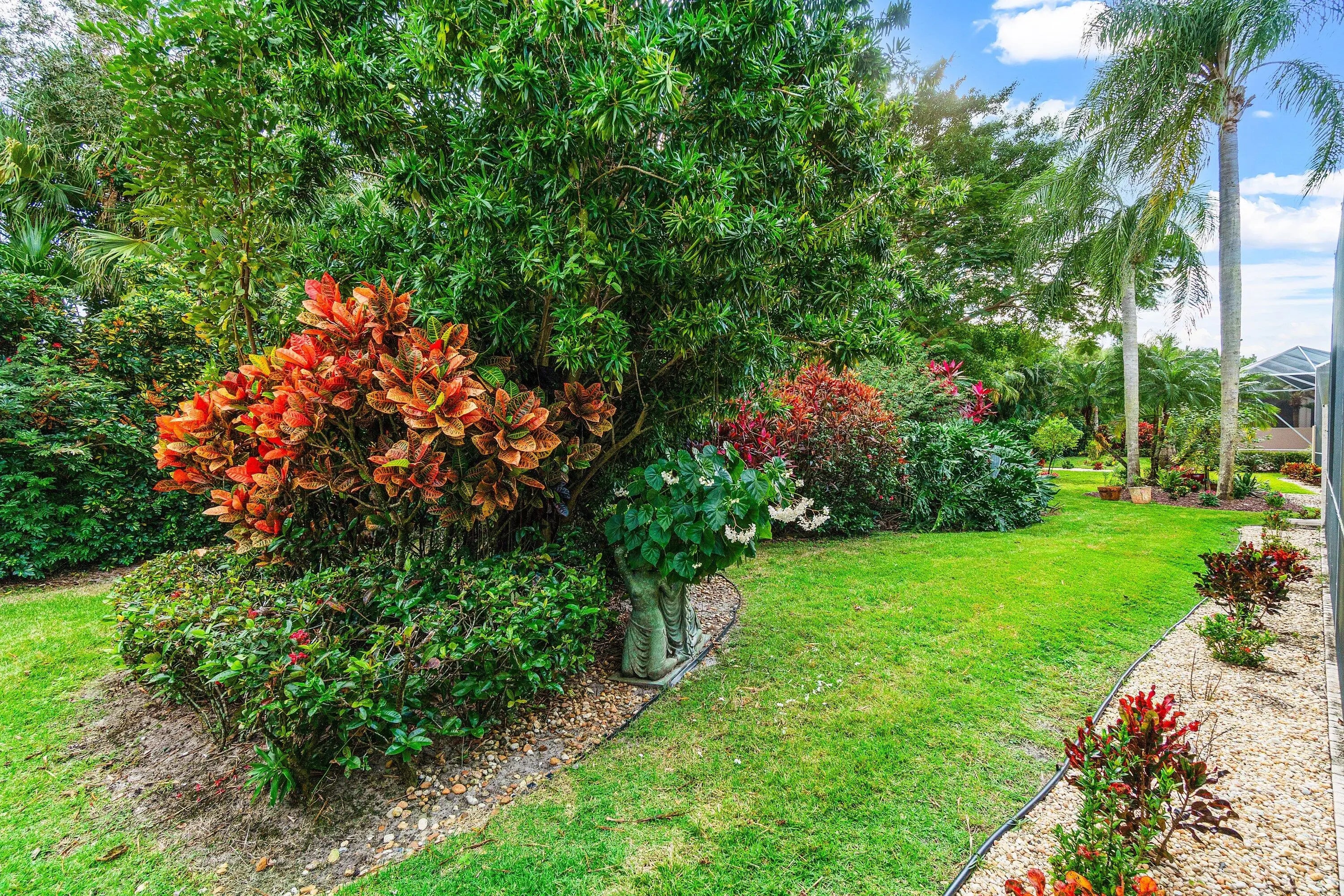 Step into luxury with this beautifully updated home featuring designer details and exceptional craftsmanship at every turn. The open-concept layout boasts 12' ceilings and porcelain 24x48-inch tile flooring throughout, creating an elegant and spacious feel. The gourmet kitchen is a chef's dream with quartz countertops, a striking porcelain island, GE Café appliances with Bluetooth capability and a granite composite sink with a Kohler touch free faucet.. You will find amazing storage space in the kitchen with pull out shelves in the pantries. Relax in the spa-inspired primary suite offering a separate raised soaking tub and walk in shower with raised floor, and enjoy the convenience of a large custom-fitted bedroom closet providing abundant storage. The second and third bedrooms have been tastefully decorated and the second bedroom is an ensuite providing privacy for those guests or family members staying overnight. The custom laundry room, generous built-ins, and thoughtful storage solutions add everyday functionality to this luxurious home. You will also appreciate the newer solid core wood doors which have been installed throughout the home. Enjoy your morning coffee or your favorite beverage in the privacy of your screened lanai with no rear neighbors . Aberdeen CC provides great value and amenities at a fraction of the costs of other high price country clubs. If you are looking the Country Club lifestyle and a home that provides all the bells and whistles, make sure you see this home before making your buying decision. Every inch of this residence has been thoughtfully curated with high-end finishes and mo