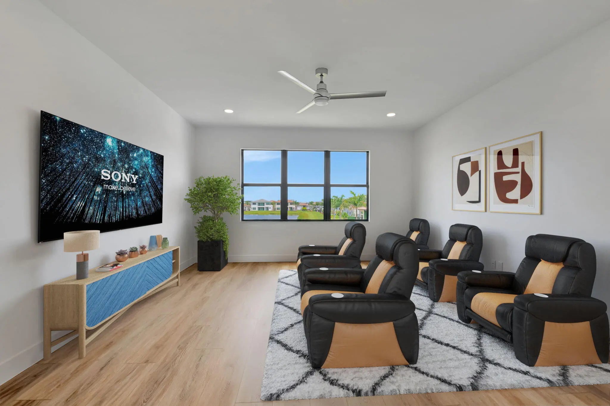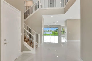Welcome to the exclusive Lotus Palm community. Experience luxury living at its finest! This is your opportunity to reside in the LAKE FRONT MALDIVES model with UNOBSTRUCTED LONG LAKE VIEW, offering 5 bedrooms, 5 full baths, 2 half baths, a Media Room, Loft, Game Room, and a 4-Car Garage. Designed with elegance in mind, the property features STUNNING UPGRADES including sleek 48x48 porcelain flooring, designer bathrooms with custom finishes, built-in closets, high-end light fixtures, and blinds. The first floor boasts an OPEN FLOOR PLAN highlighted by a GOURMET CHEF'S KITCHEN with custom cabinetry and a breakfast area flowing into a spacious family room—perfect for hosting gatherings. The main level also includes a sophisticated Dining room, Game room, Den, and a Guest br with an ensuite designer bathroom along with a modern powder room. Upstairs, you'll find 3 generous bedrooms, each with its own ensuite bathroom, along with a large loft and media room. The crowning jewel of the second floor is the STATE-OF-THE-ART MASTER SUITE featuring exquisite finishes, his-and-hers built-in closets, a private balcony, and breathtaking WATER VIEWS. The master bath offers an oversized shower and luxurious soaking tub, designed to be your private oasis. Custom finishes and meticulous attention to detail are evident throughout every inch of this stunning residence. A resort-style amenities, including a 26,000 sq. ft. clubhouse, a restaurant, a cutting-edge fitness center, a sports complex, resort-style pool, tennis and pickleball courts.