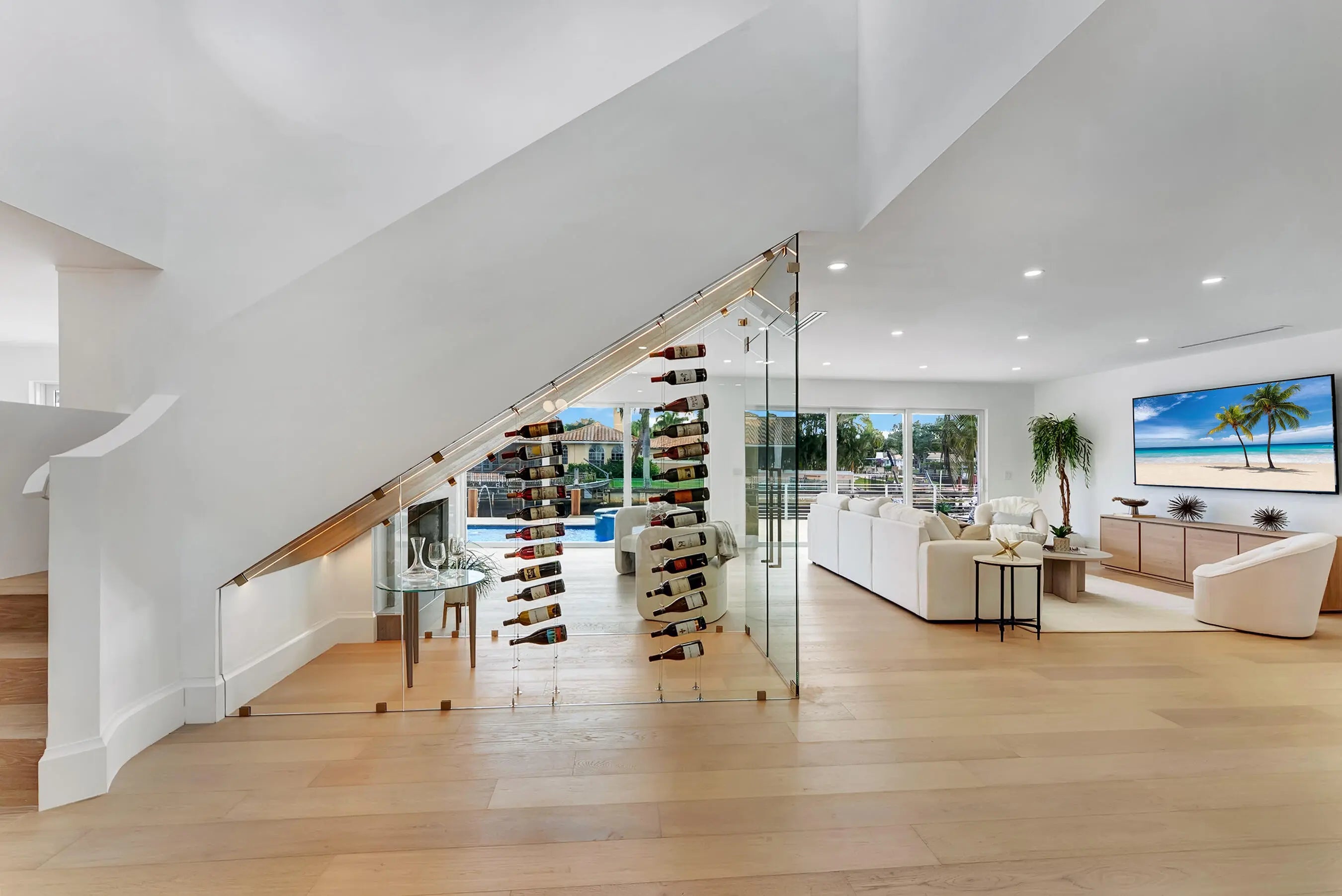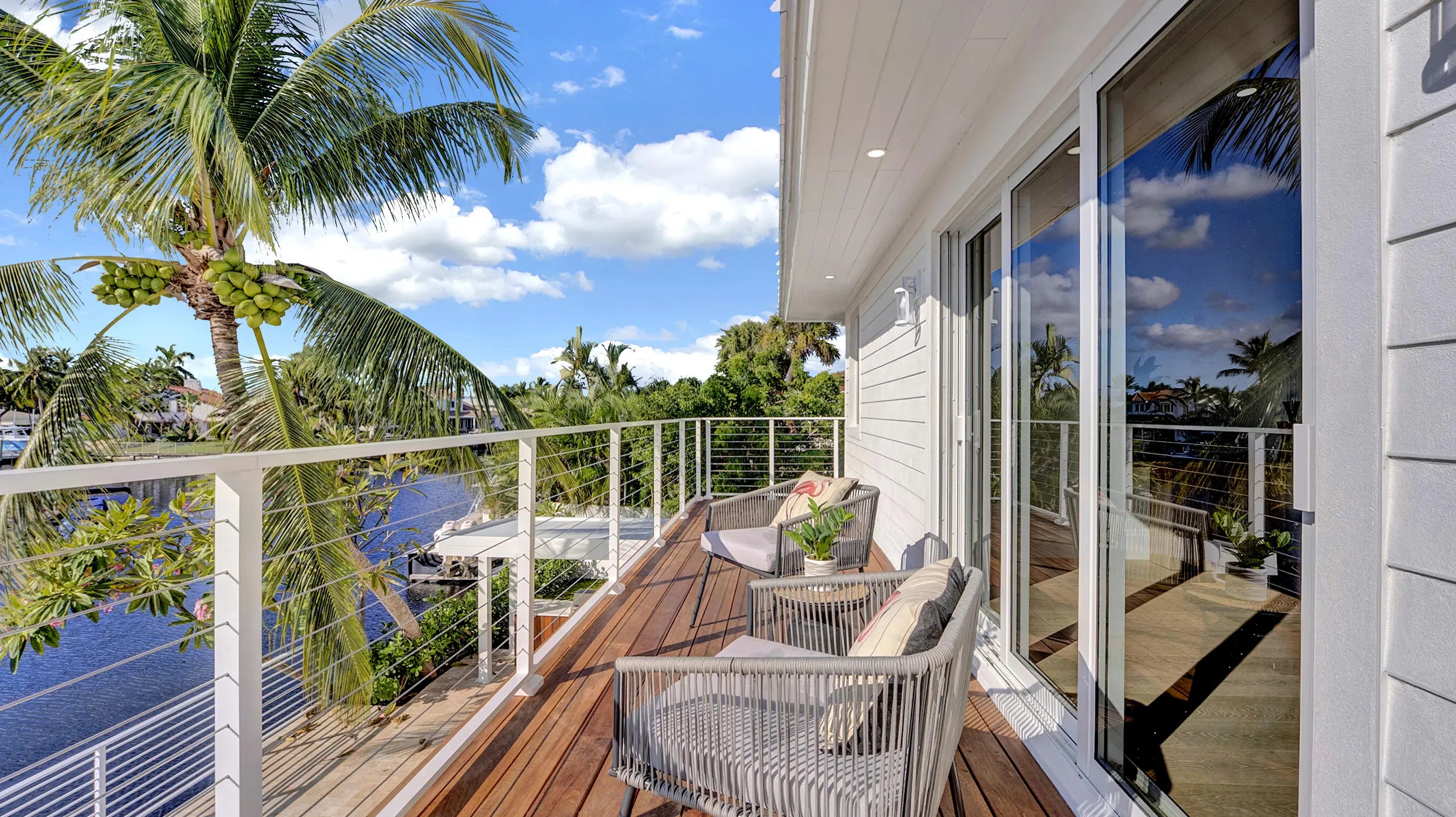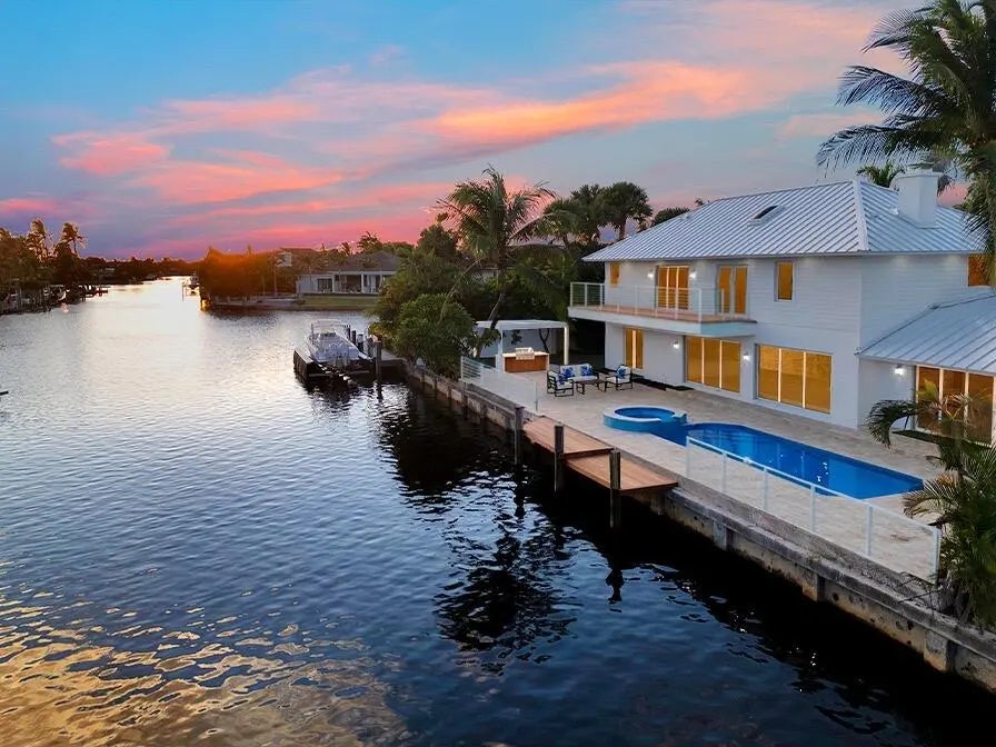 Be the first to live in this newly and fully reimagined modern contemporary estate, nearly 4,000 Sq Ft luxury retreat on a private, .23-acre cul-de-sac lot showcasing 108 feet of waterfront living and private dock. With its bright southern exposure and breathtaking views of the Intracoastal waterway, this home does not disappoint. From the moment you step inside, you'll be captivated by the open living room, overlooking the pool and waterfront patio. The grand entrance showcases a stunning glass-enclosed wine cellar. The chef's kitchen is outfitted with Thermador appliances, quartz countertops, and custom maple shaker cabinetry, setting the stage for elegant entertaining. Four lavishly appointed ensuite bedrooms offer privacy and comfort, including a main-floor guest wing and an expansive upstairs primary suite with dual vanities, his-and-hers closets, a sitting area, and a private balcony overlooking the water. Seamlessly blending indoor and outdoor living, the backyard oasis features a resort-style pool with integrated jacuzzi, a BBQ area, and large open spaces for entertaining. Completely reimagined and rebuilt in 2025, this home features all-new interiors and systems, including Metal roof, impact-rated windows and doors, updated plumbing and electrical, 3-zone A/C, a climate-controlled garage, electric-car charger, new irrigation system, lush landscaping, and countless additional upgrades throughout. Every detail of this residence has been thoughtfully designed, offering an exceptional combination of sophistication, comfort, and coastal serenity. Perfectly situated just 5 minutes from Downtown Boca Raton, this estate offers an exceptional lifestyle close to Mizner Park, Royal Palm Place, The Boca Raton Club & Resort, fine dining, and pristine beaches.
